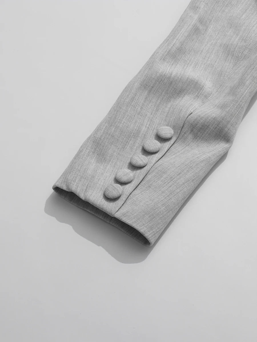 Luxurious avant-garde blazer with a deconstructed, single-breasted front.