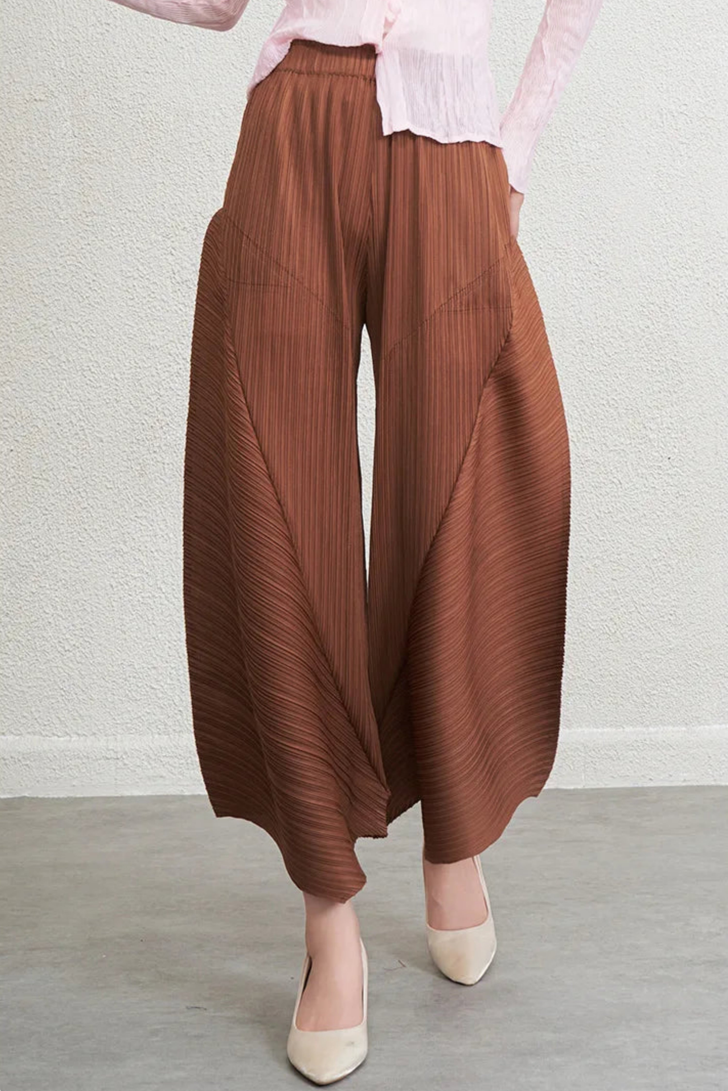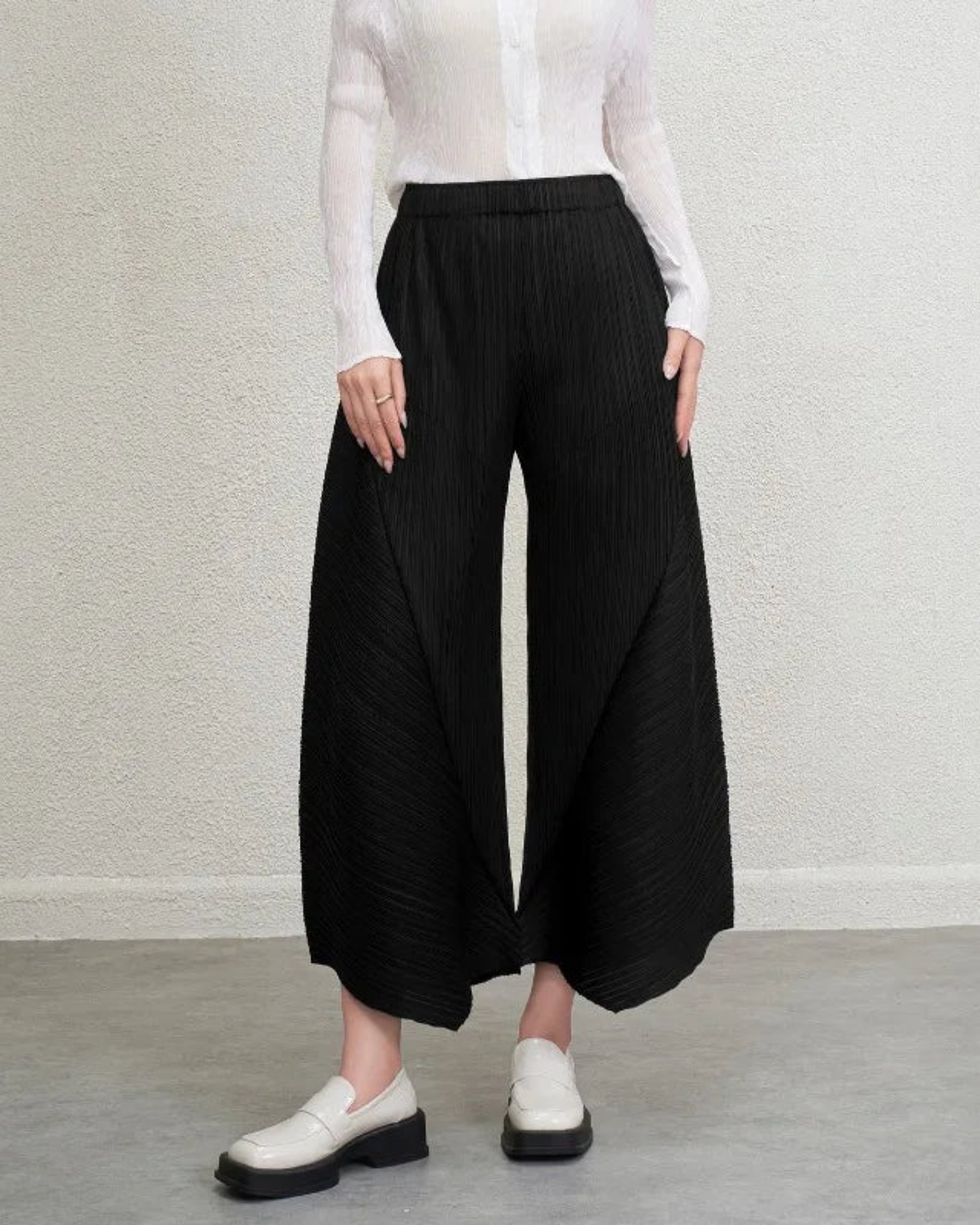 These pleated outfits are perfect for daily wear. The cut and fabric feel high-end.