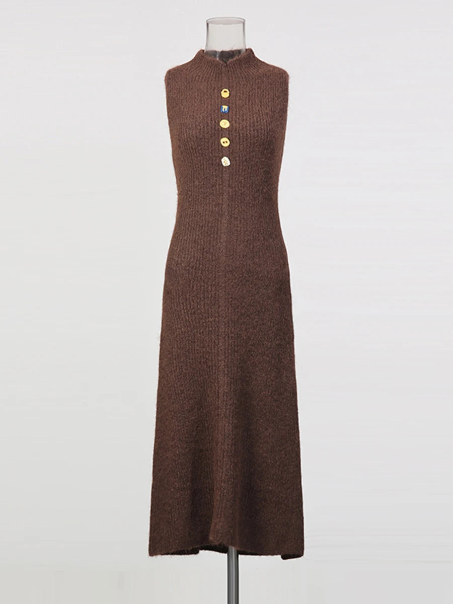 This elegant 2-piece set features a sleeveless high-neck midi dress and a matching longline open-front cardigan.