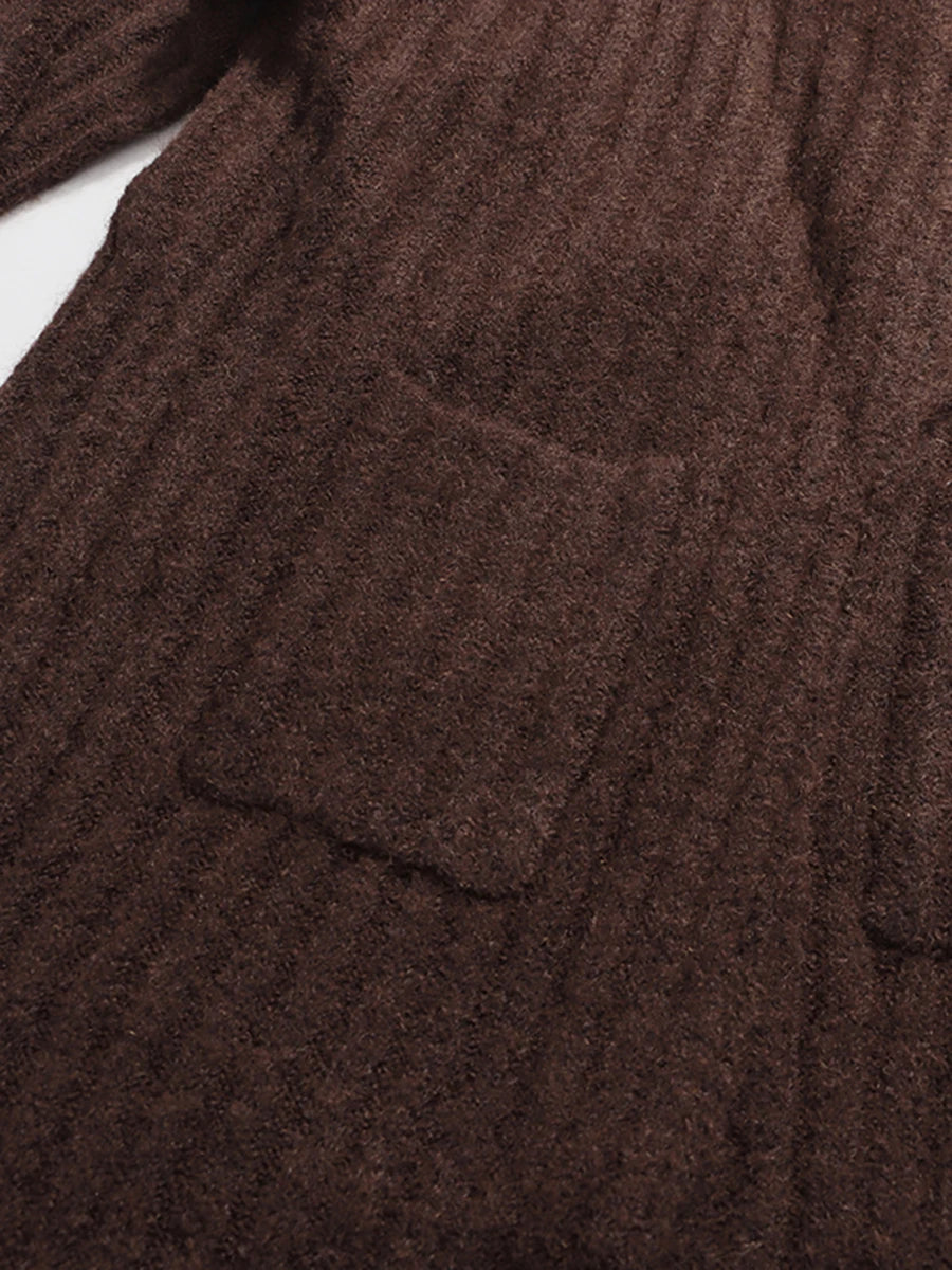 The oversized cardigan and midi-length dress offer a relaxed, sophisticated silhouette in premium wool-blend, warm and comfortable for travel, work, or formal occasions.