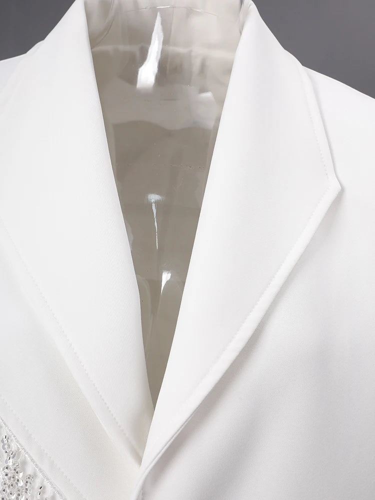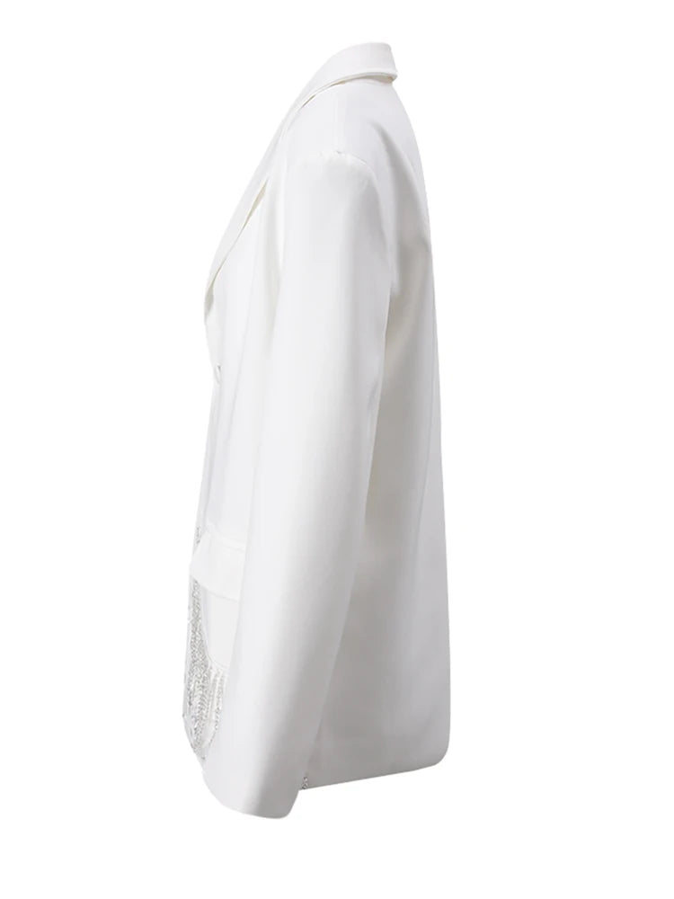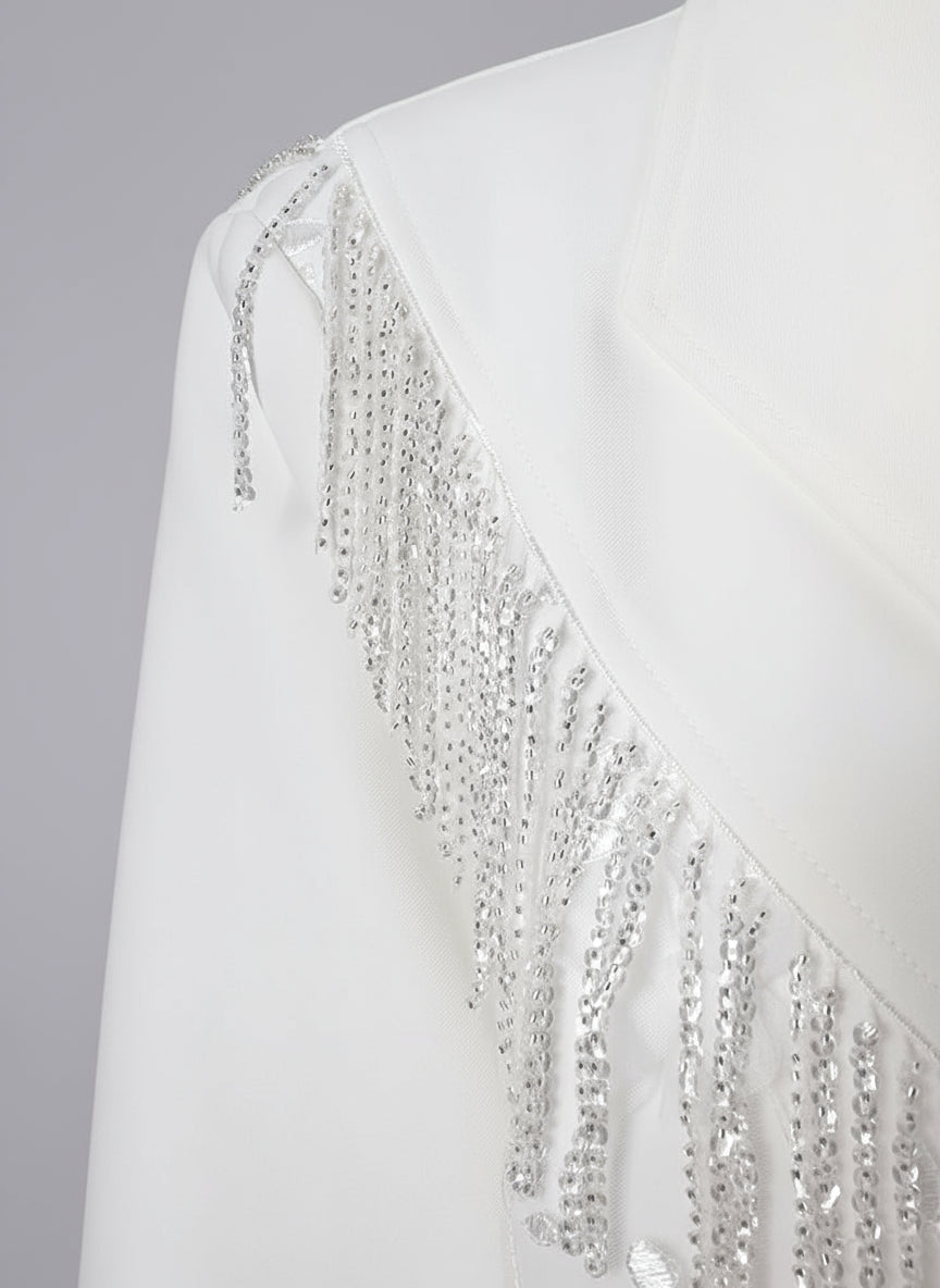 The asymmetrical sparkle detail adds visual interest, suitable for formal events, office, business, or everyday luxury wear. It pairs beautifully with tailored trousers, skirts, or jeans for a high-fashion look.