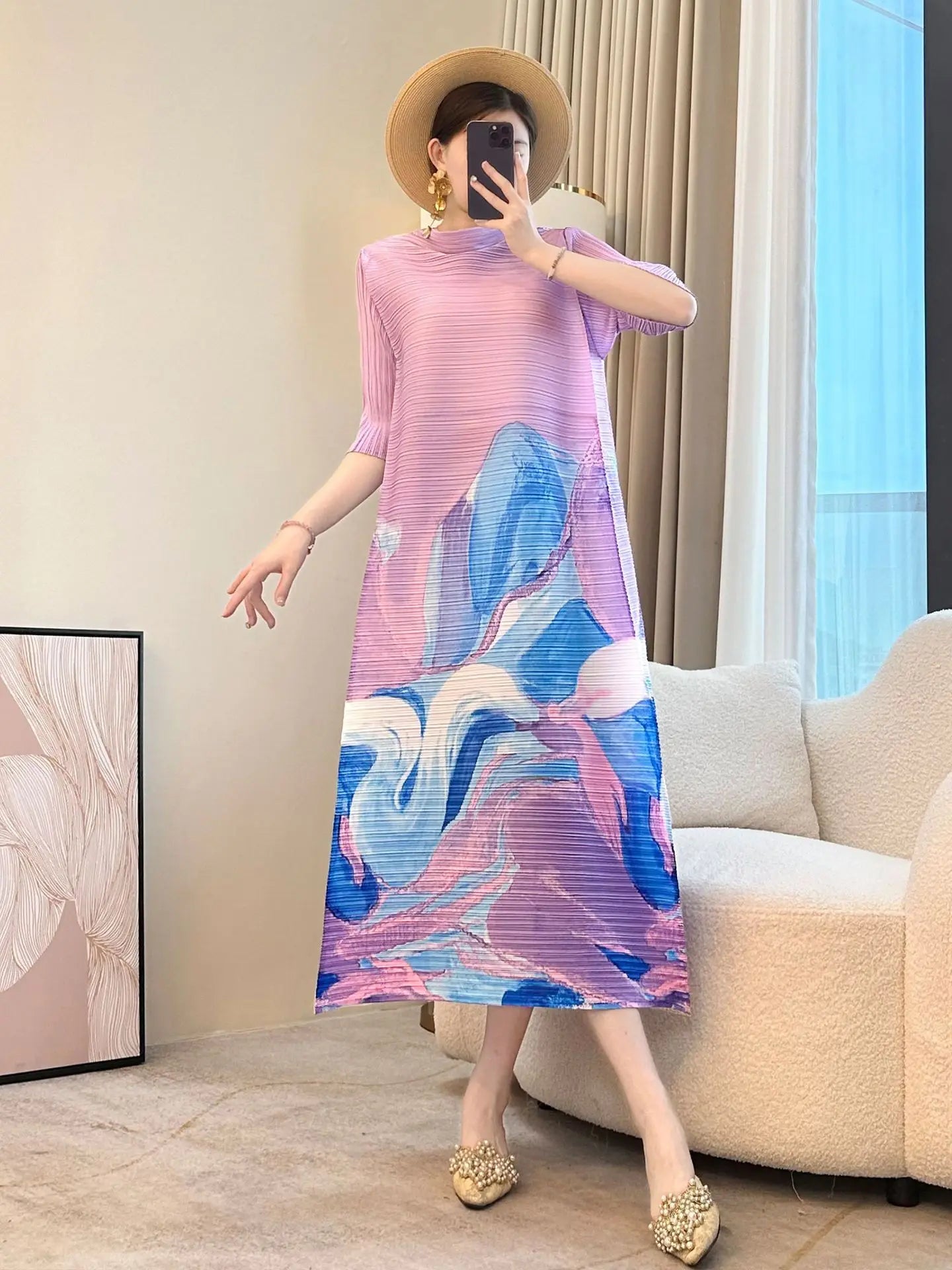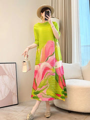 This floral midi dress combines elegance with modern sophistication. Made from premium pleated fabric, it offers a breathable, stretchy fit that moves with you. Japanese pleats and a flattering silhouette make it the perfect choice for any occasion.