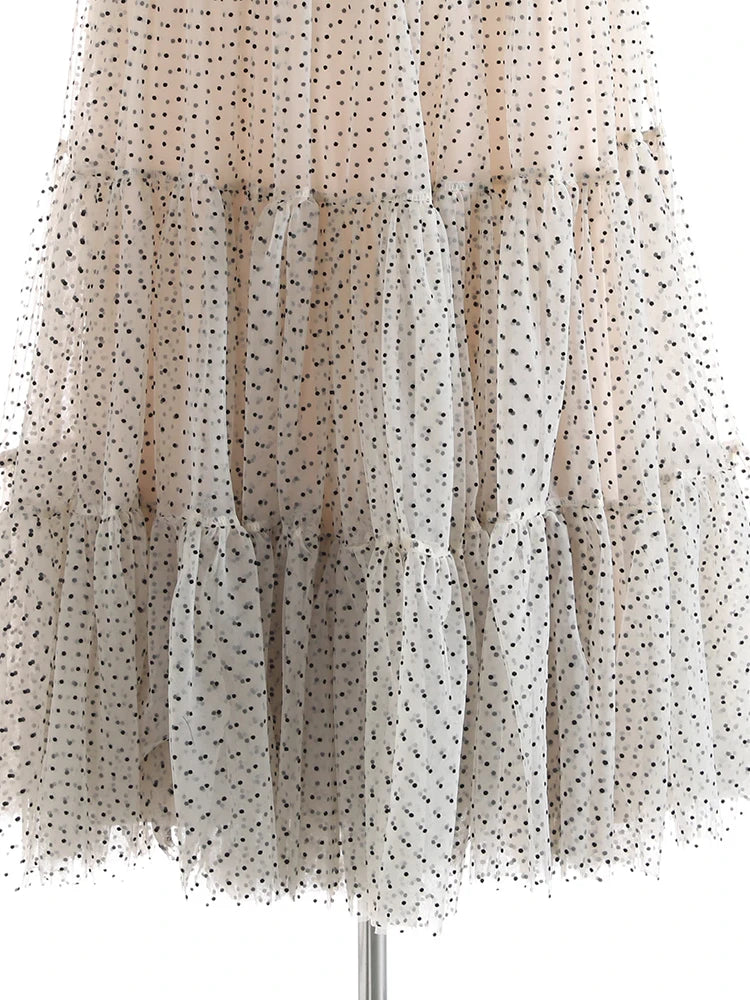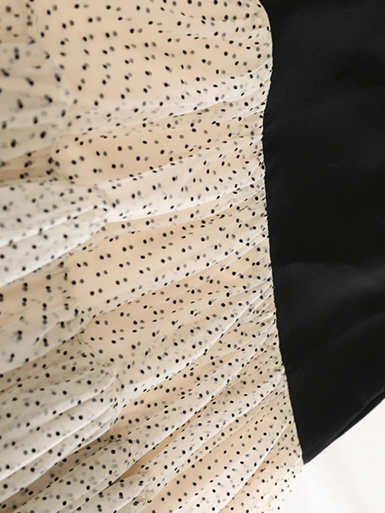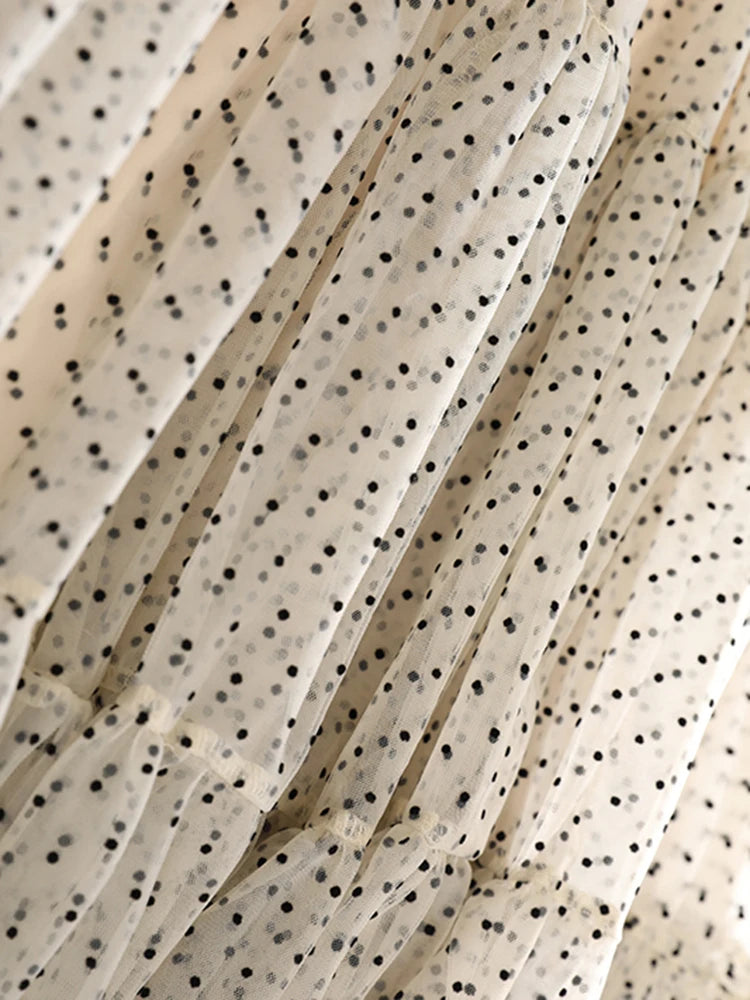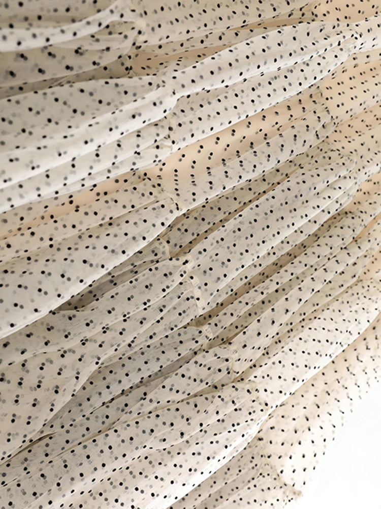 Adorned with delicate micro-dot texture, it creates voluminous movement while maintaining a feminine and elegant couture design. Concealed back zipper ensures a seamless fit, perfect for formal events, upscale evenings, and travel.
