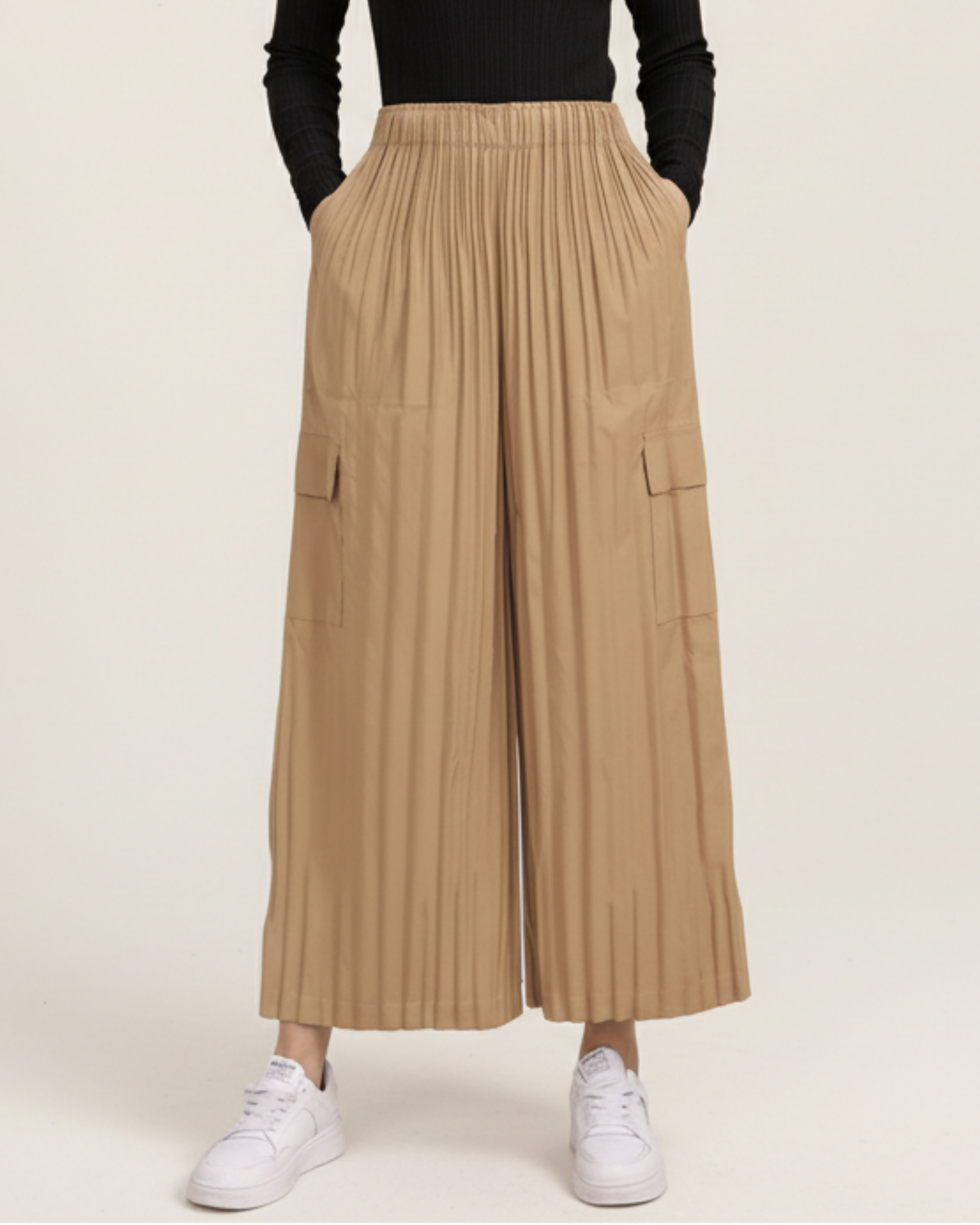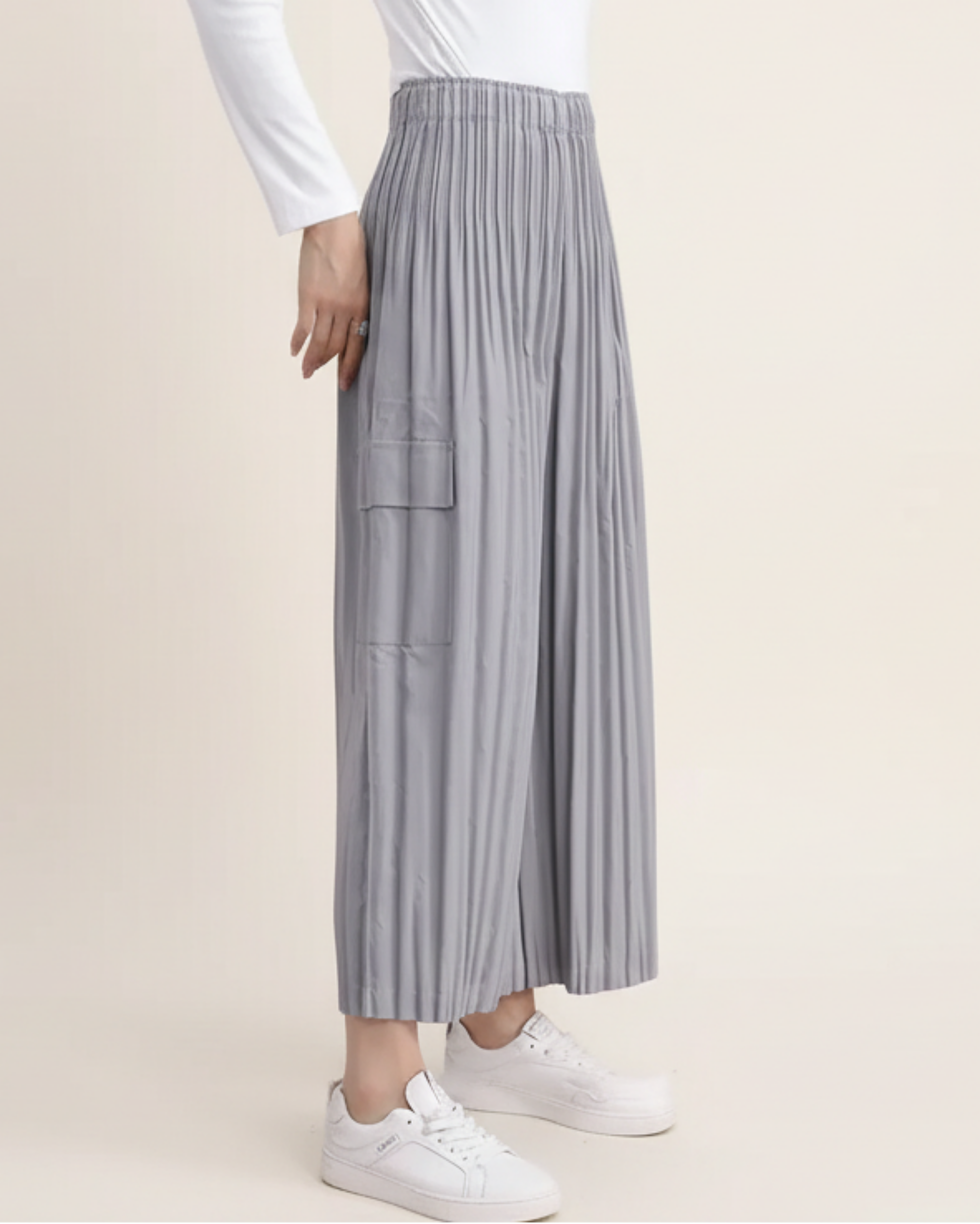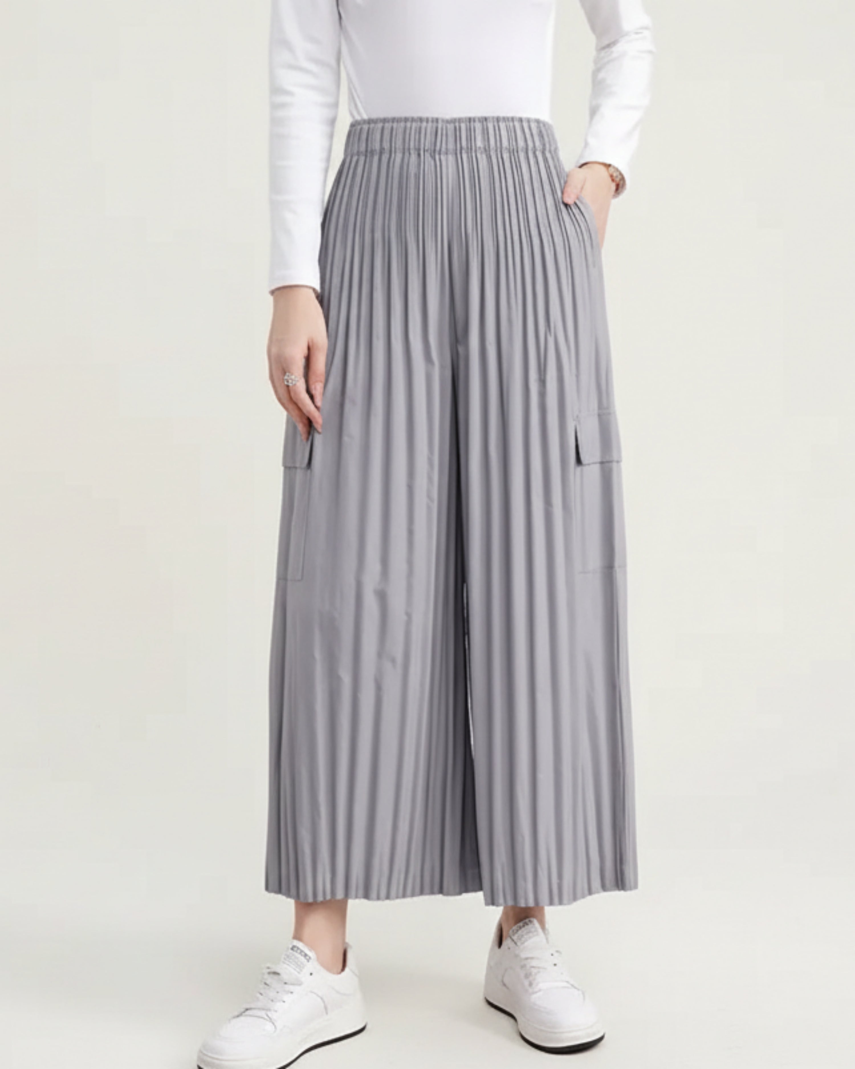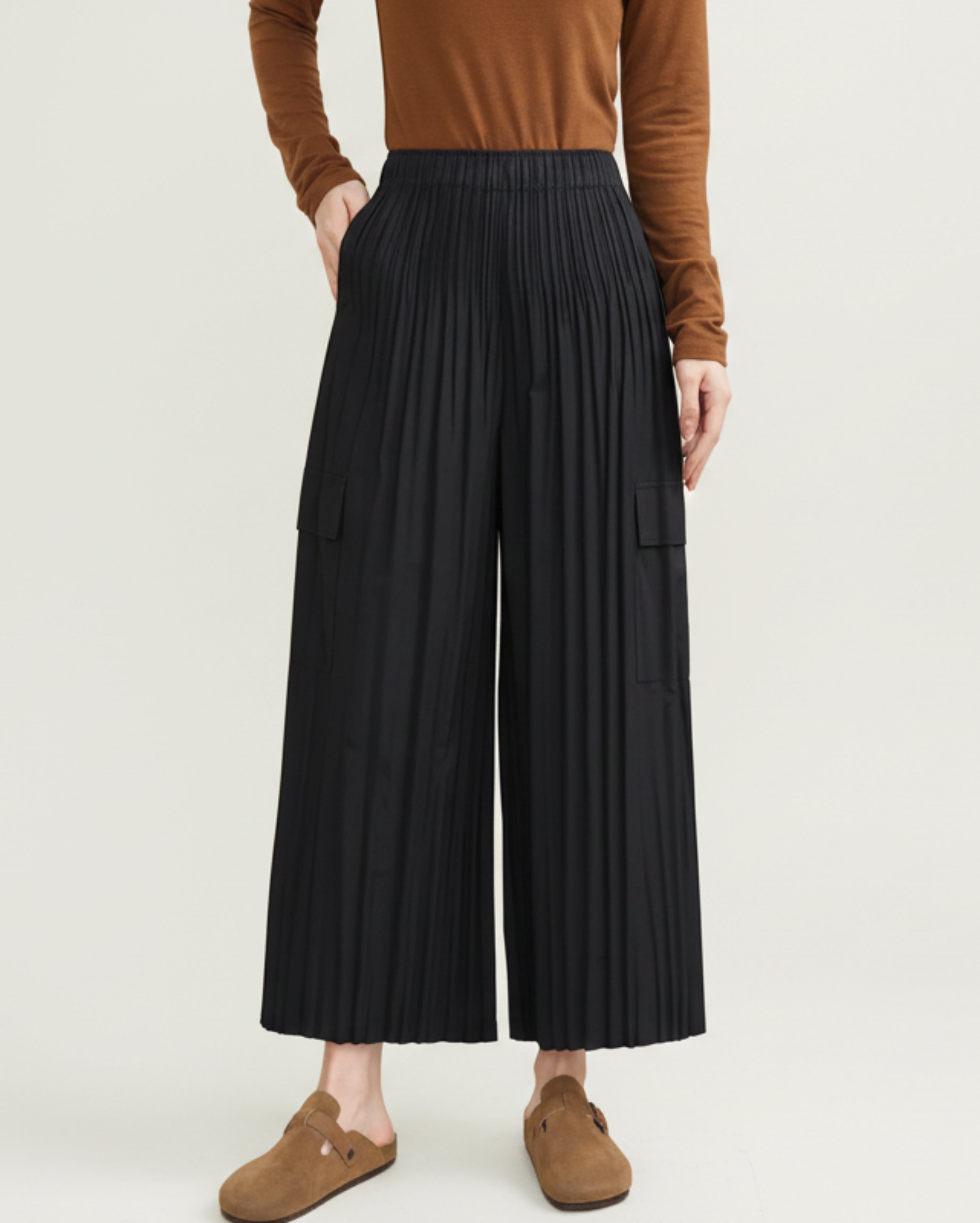Contemporary wide-leg trousers in premium Japanese pleats with a relaxed, flowy fit.