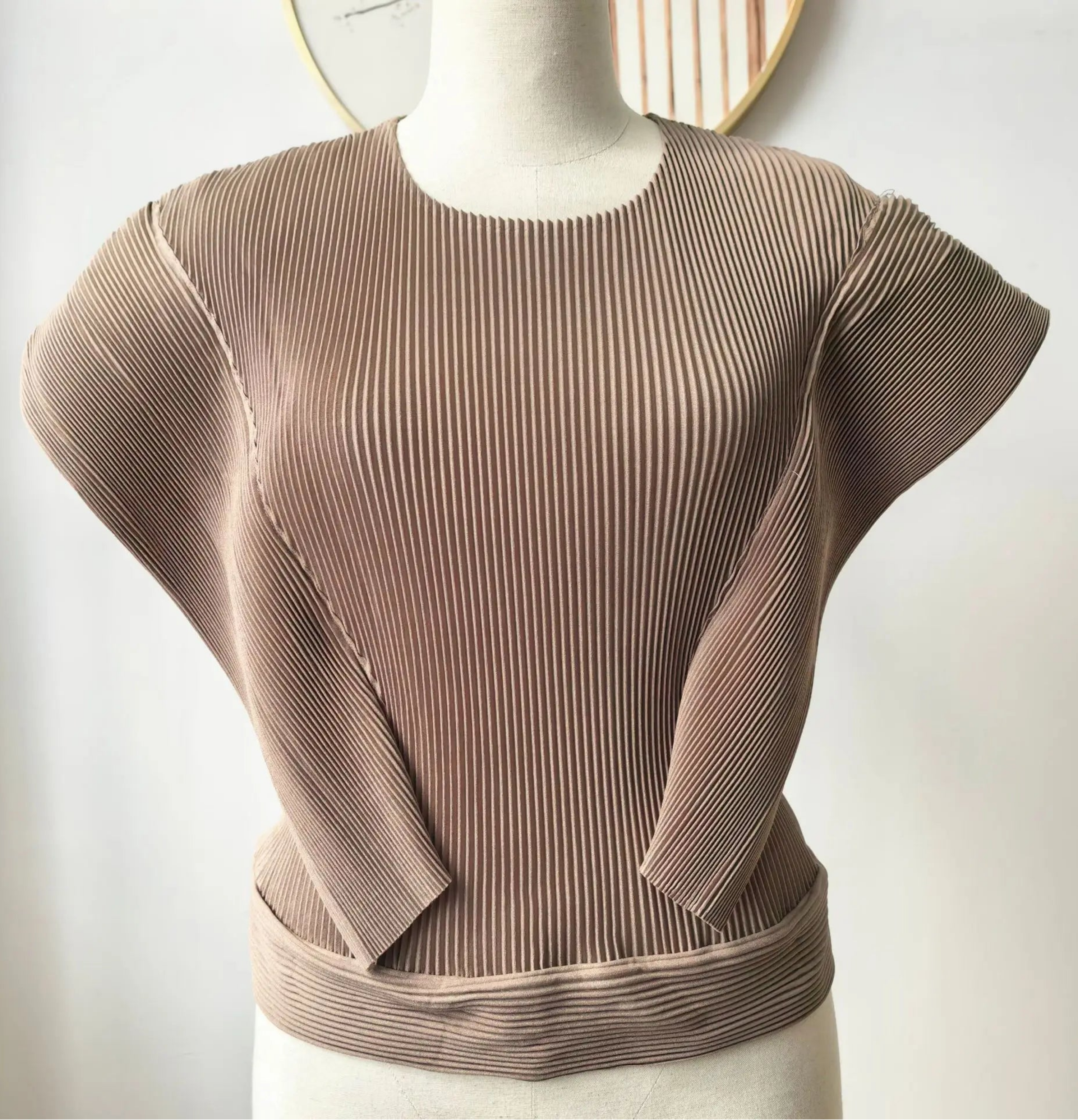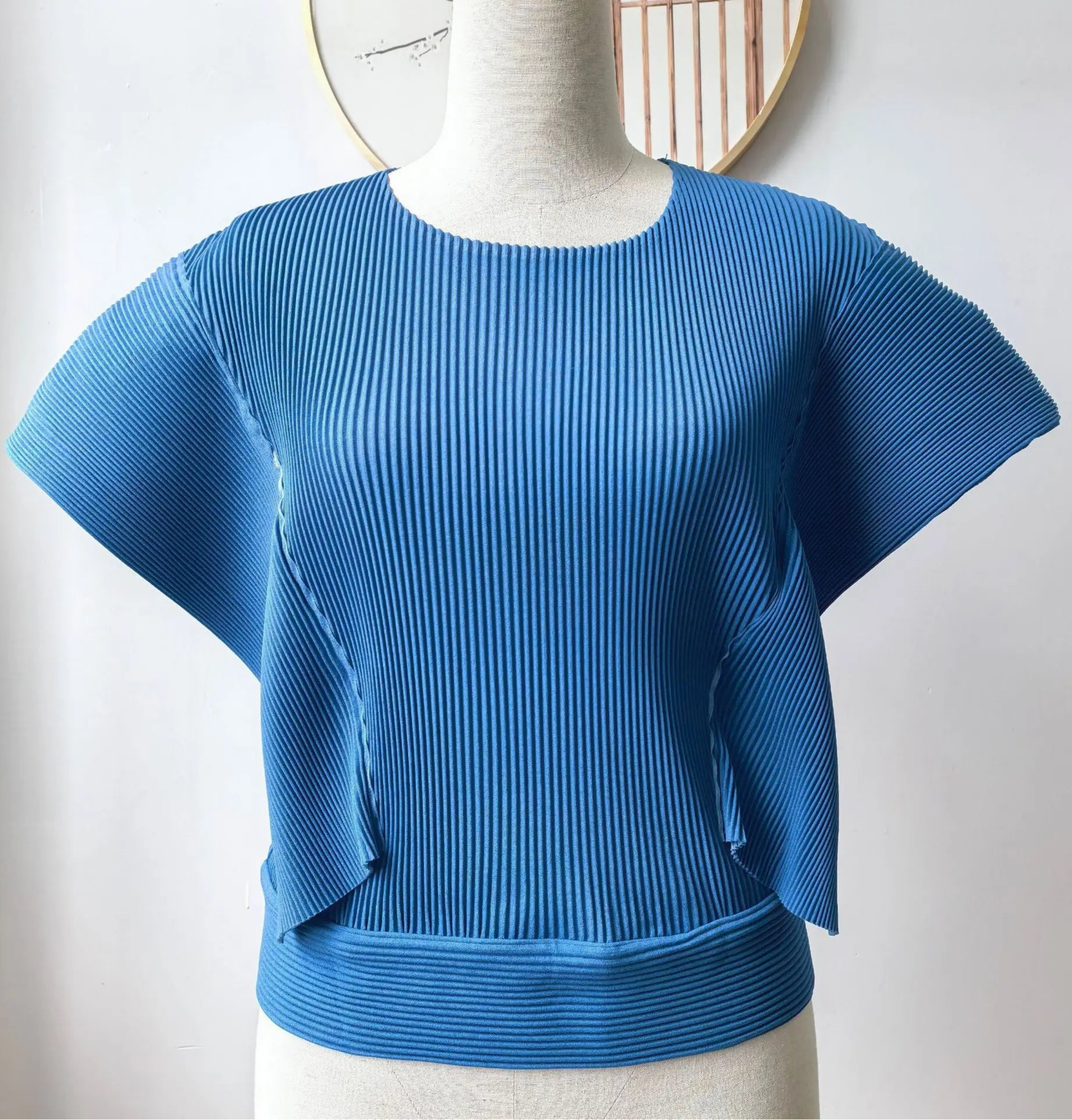 Japanese Plissé Pleated Peplum Top with Cape Sleeves