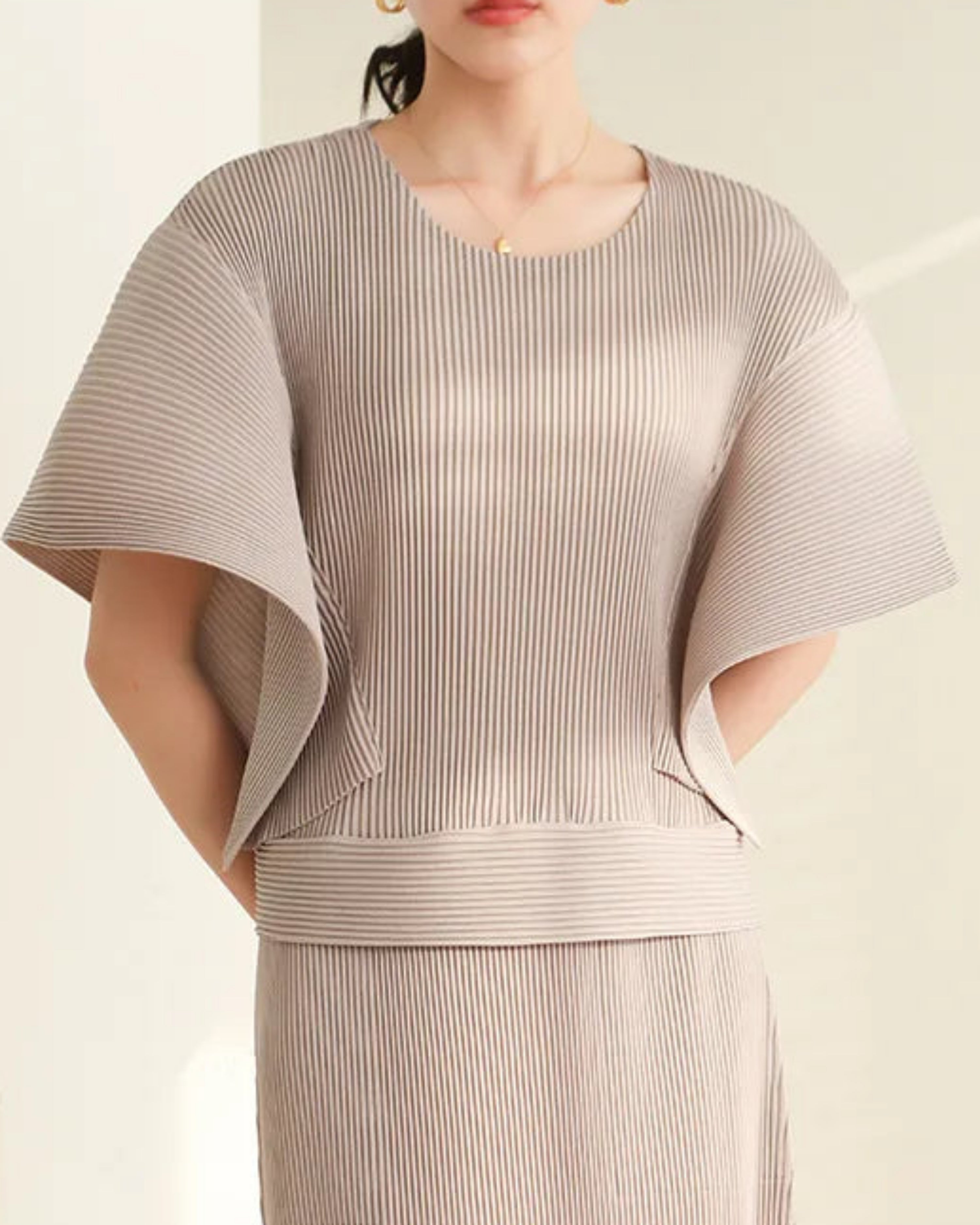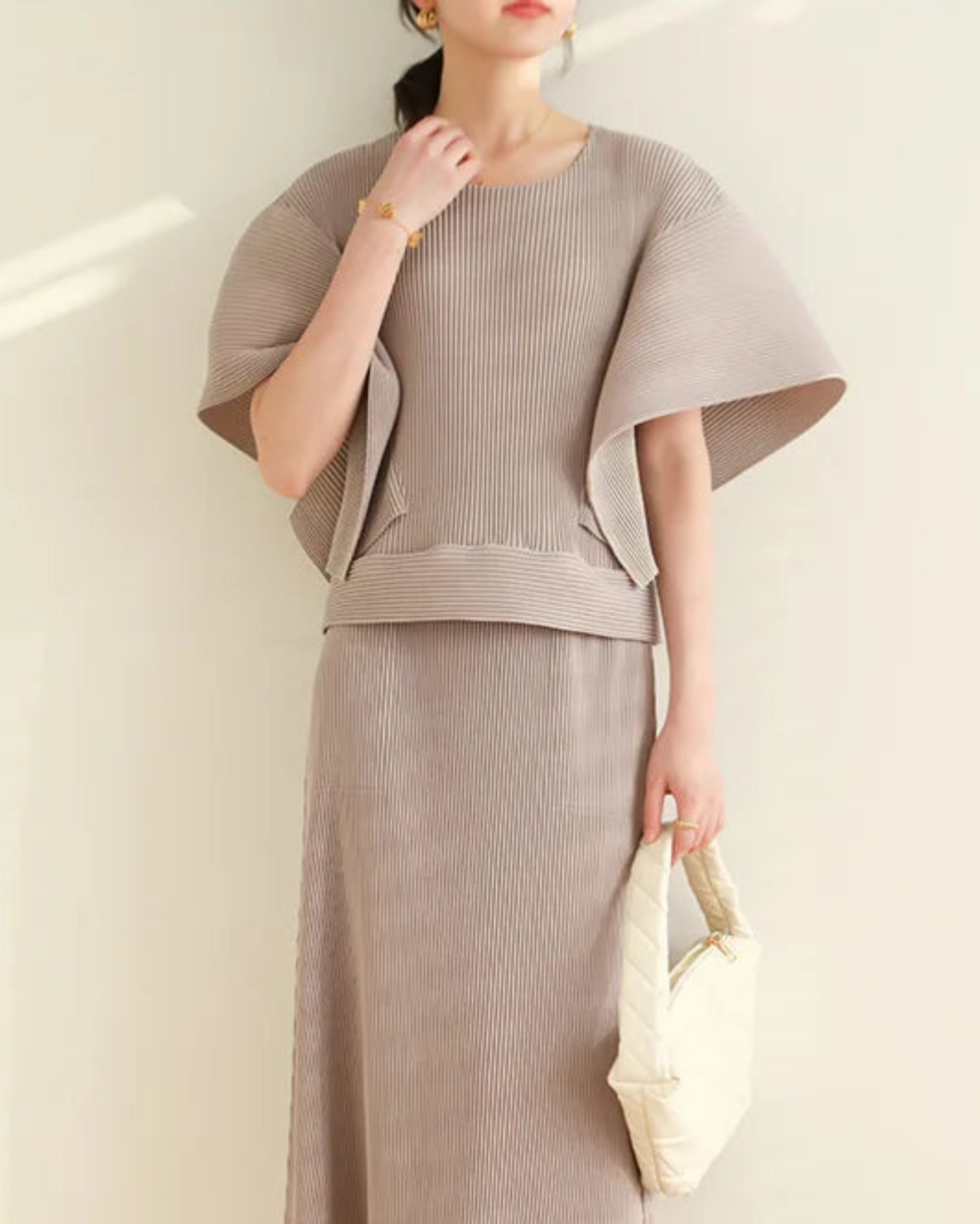 These pleated outfits are perfect for daily wear. The cut and fabric feel high-end.