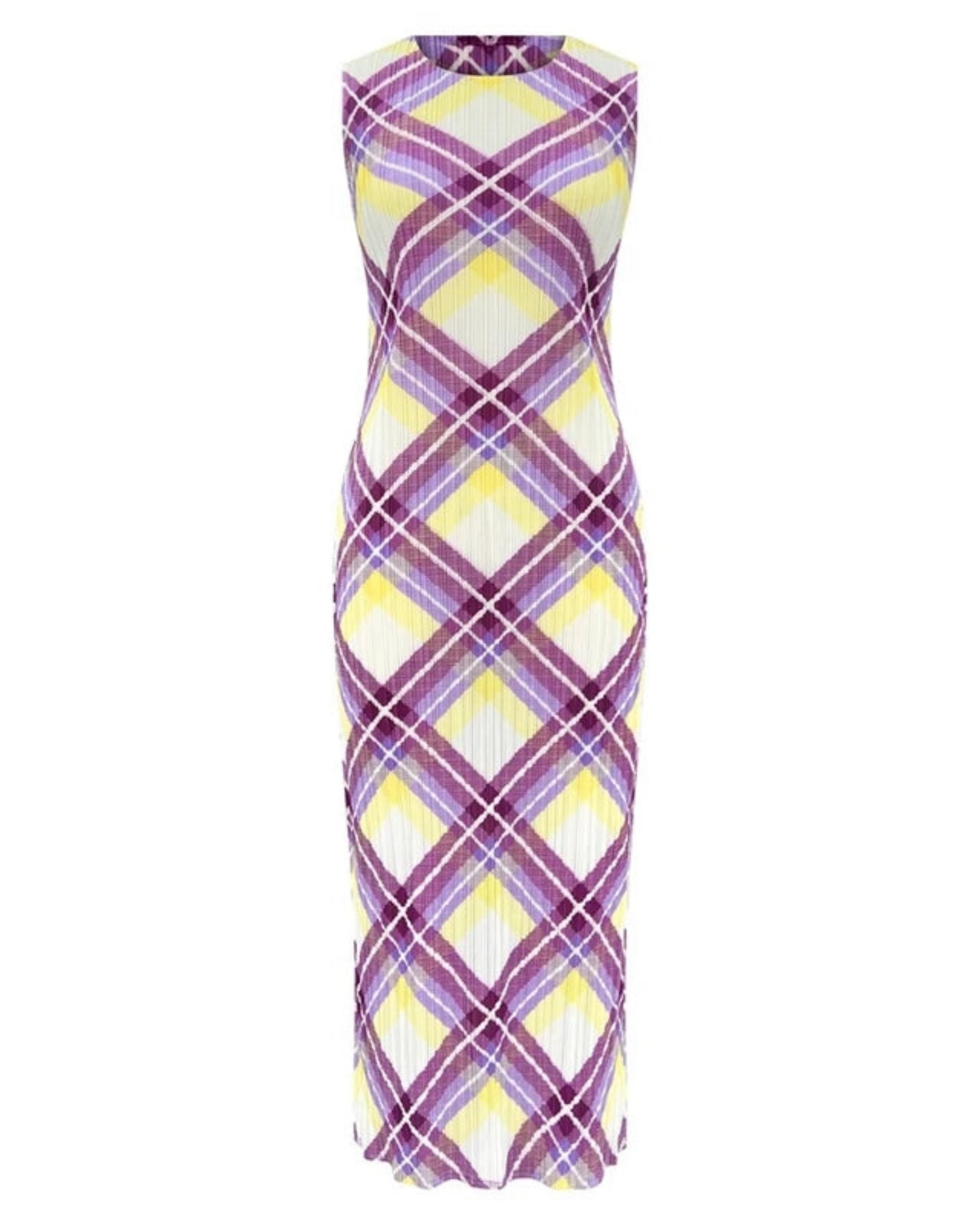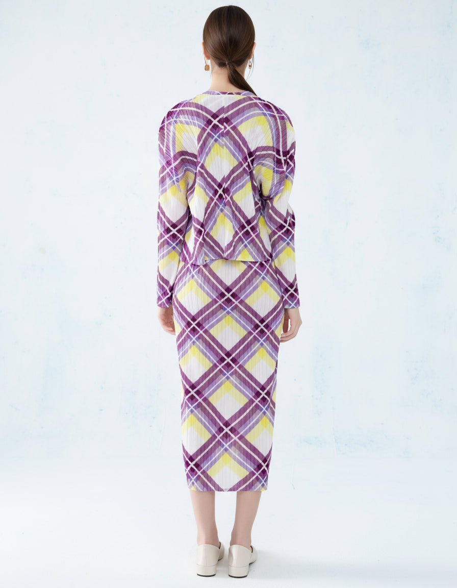 A 2-piece matching set with a sleeveless midi dress and coordinating open-front cardigan in premium Japanese plissé.