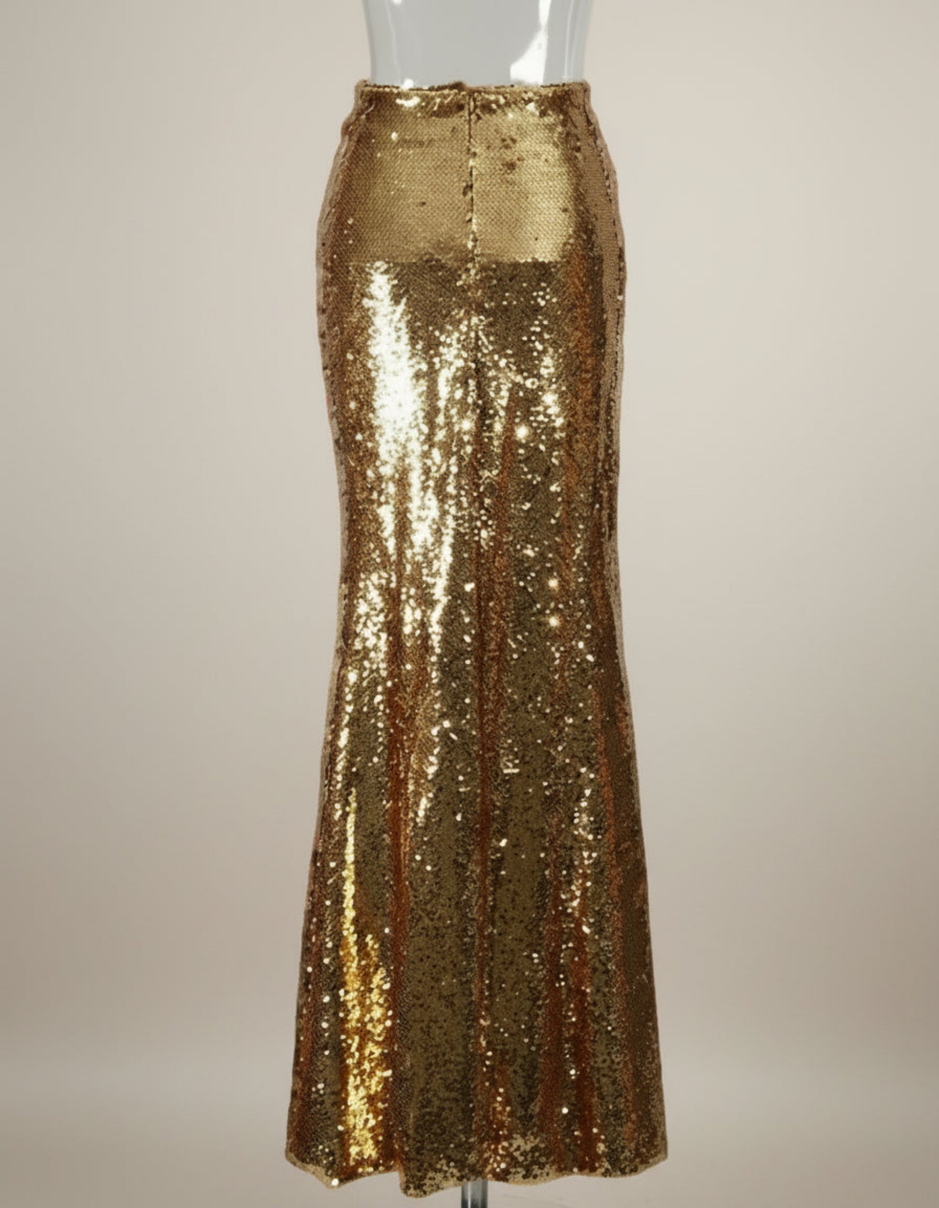 Perfect for galas, evening events, and formal occasions, this haute couture sequin maxi skirt creates a dramatic, luminous silhouette.