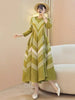 Luxury Japanese Pleated Midi Dress – Long Sleeve A-Line Silhouette