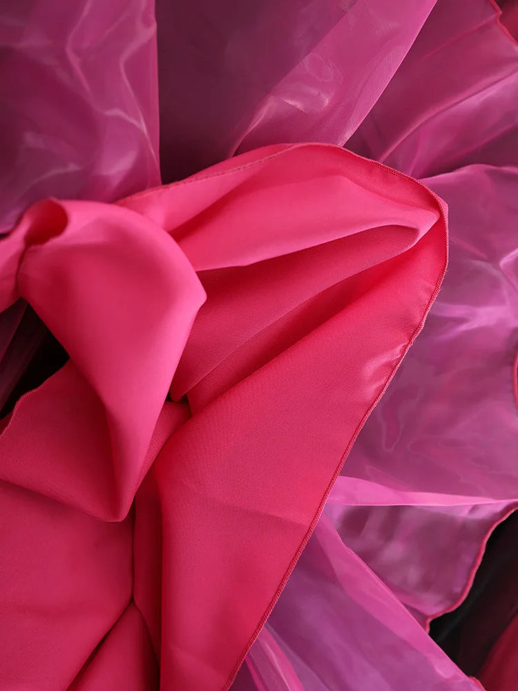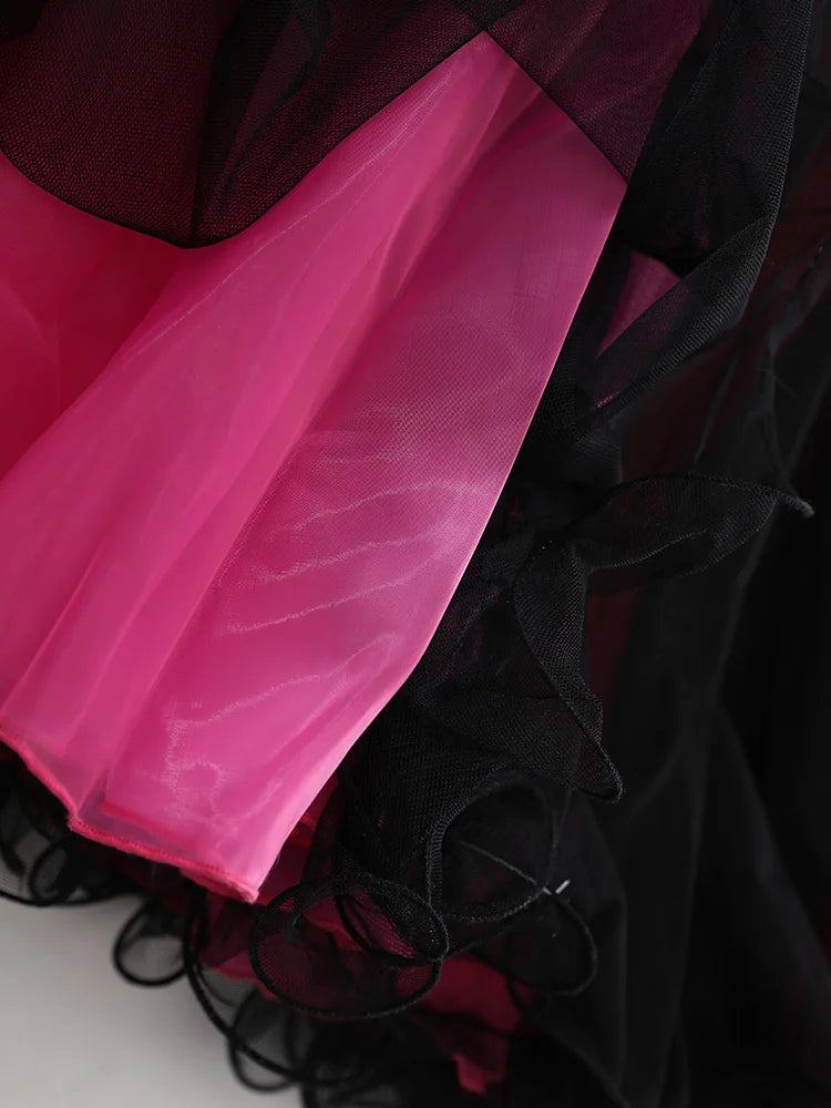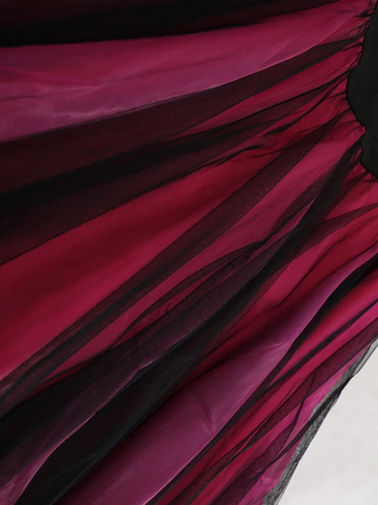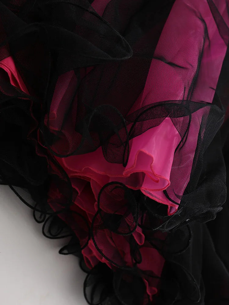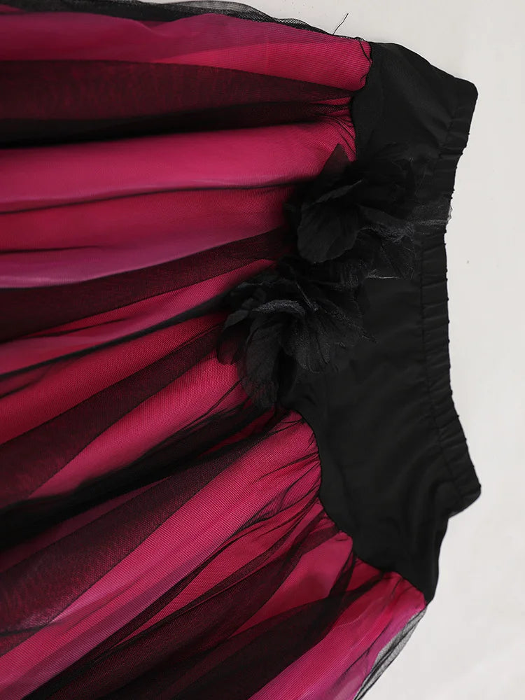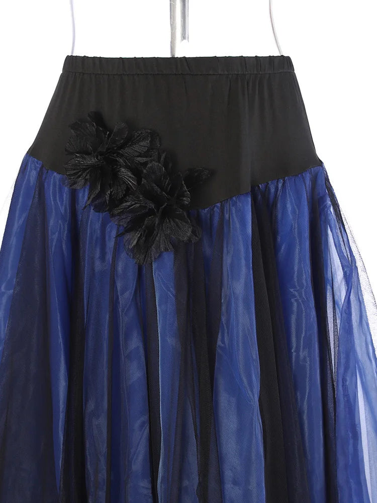 This luxury mesh midi skirt features a smooth elastic stretchy waistband, a fitted upper panel, and a voluminous multi-layered mesh tulle bottom that creates dramatic movement.