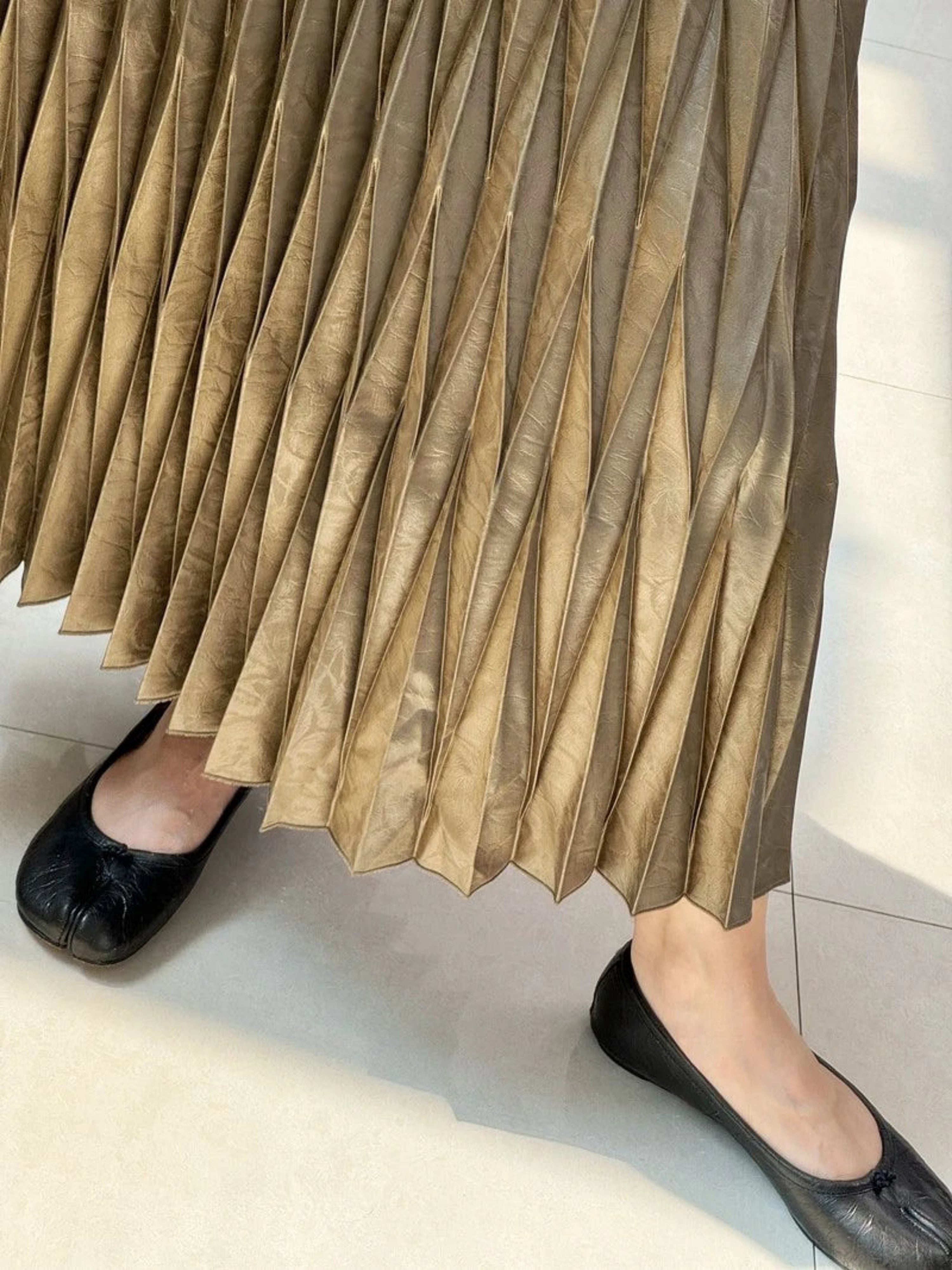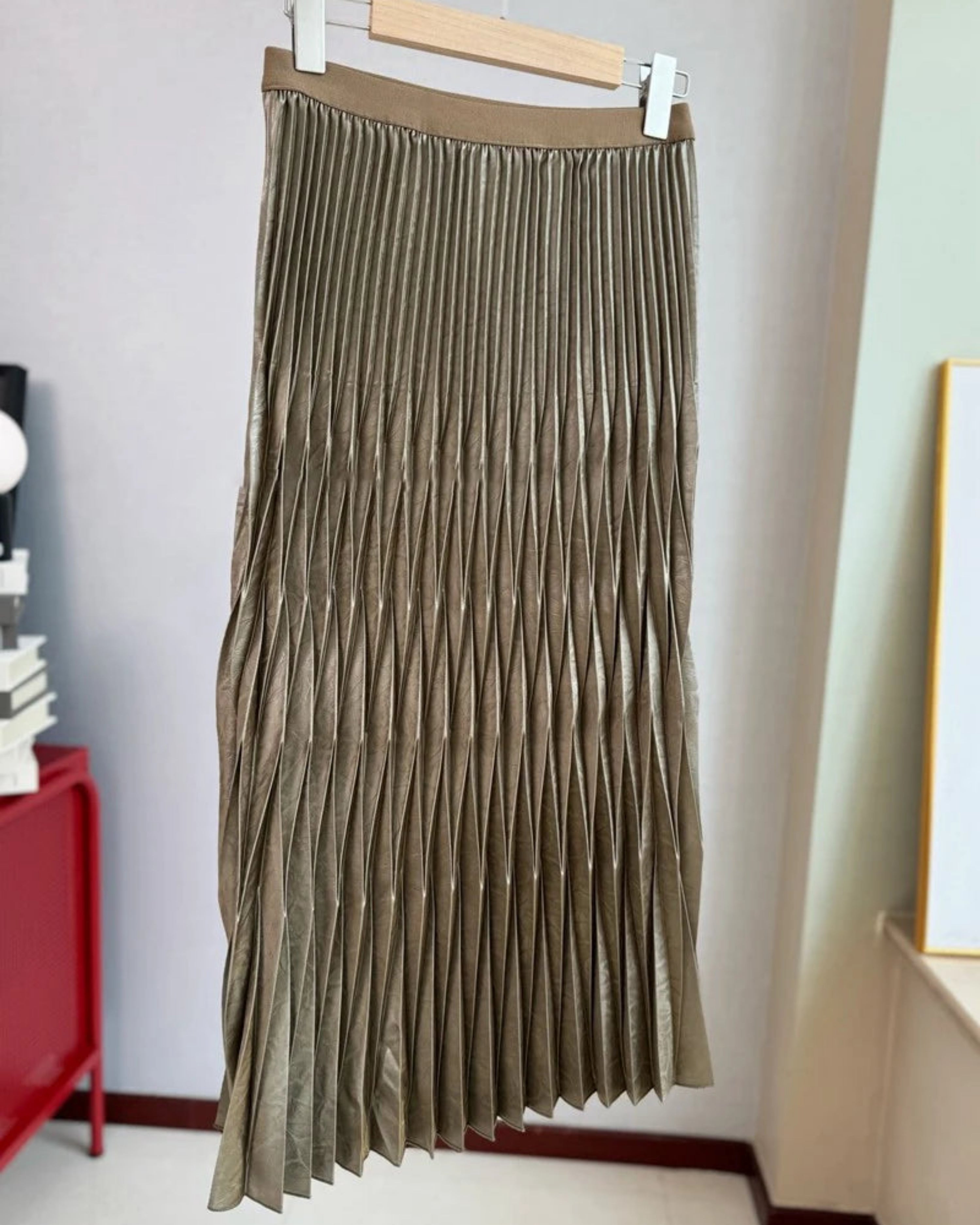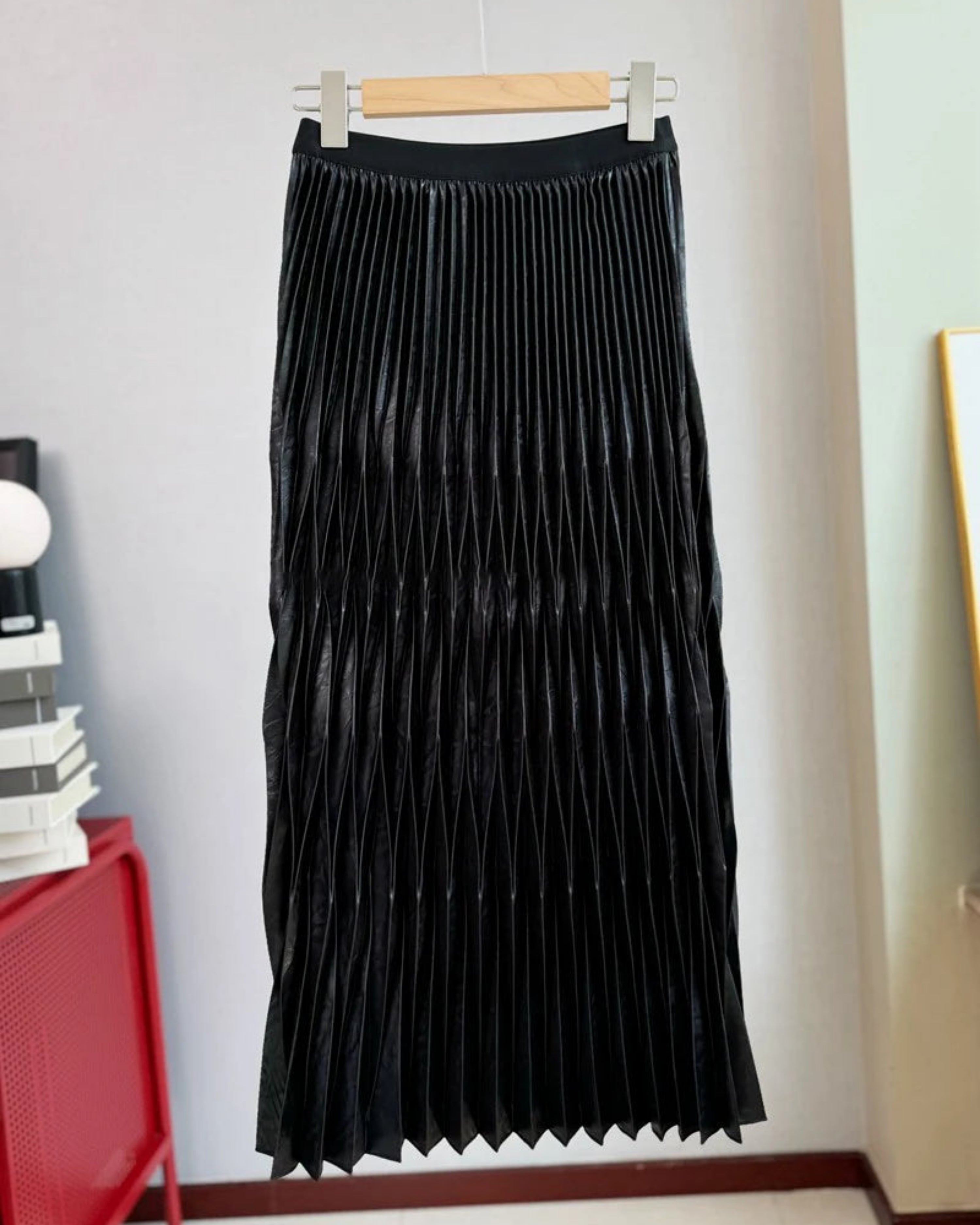 This luxurious pleated midi skirt features a Japanese folded design with an elastic waistband for a feminine, stylish, and comfortable fit.