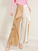Asymmetrical color-block panels with subtle ruffle create a flowing, dynamic silhouette. Stretchy, wrinkle-resistant fabric moves gracefully and keeps shape — comfortable, elegant, and perfect for day-to-night wear.