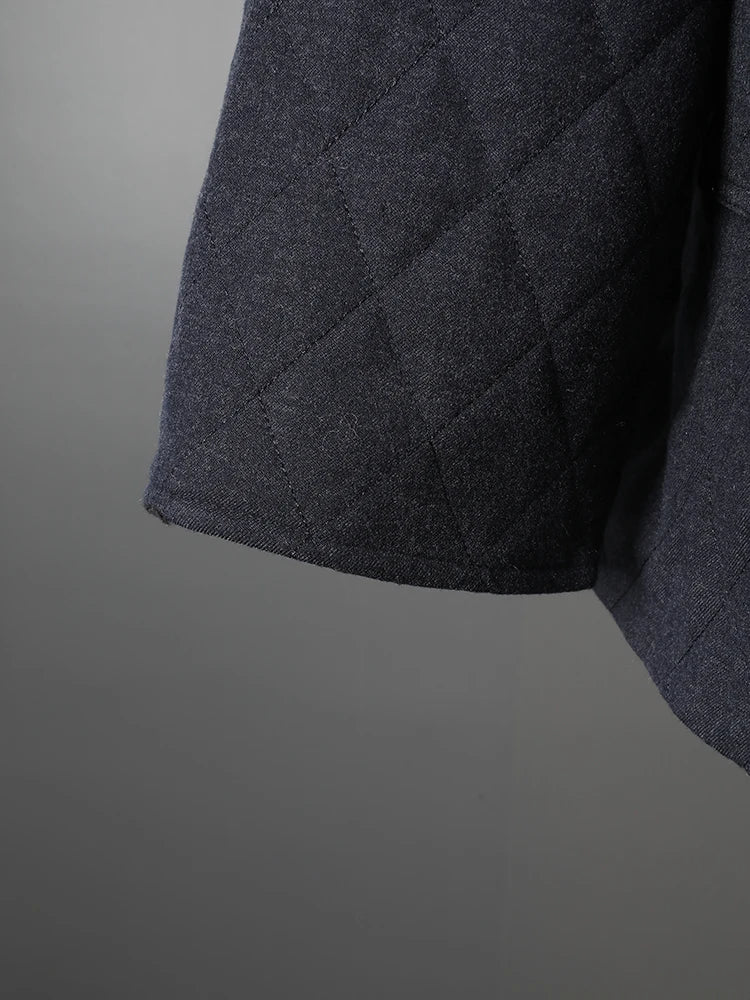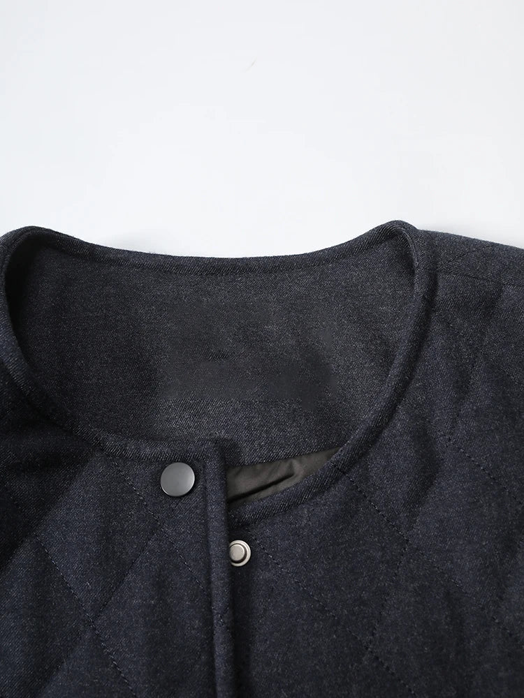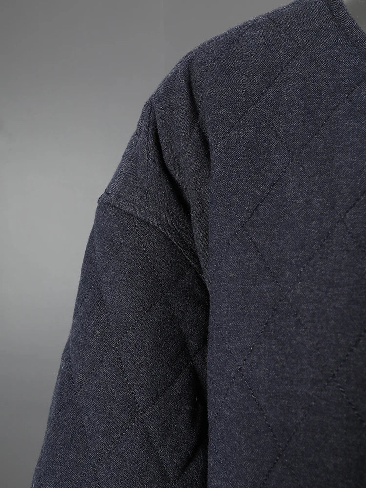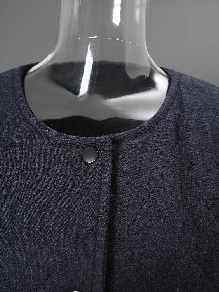 Warm, cozy, and elegant, it combines quilted insulation with a loose, comfortable fit for stylish layering in cooler weather.