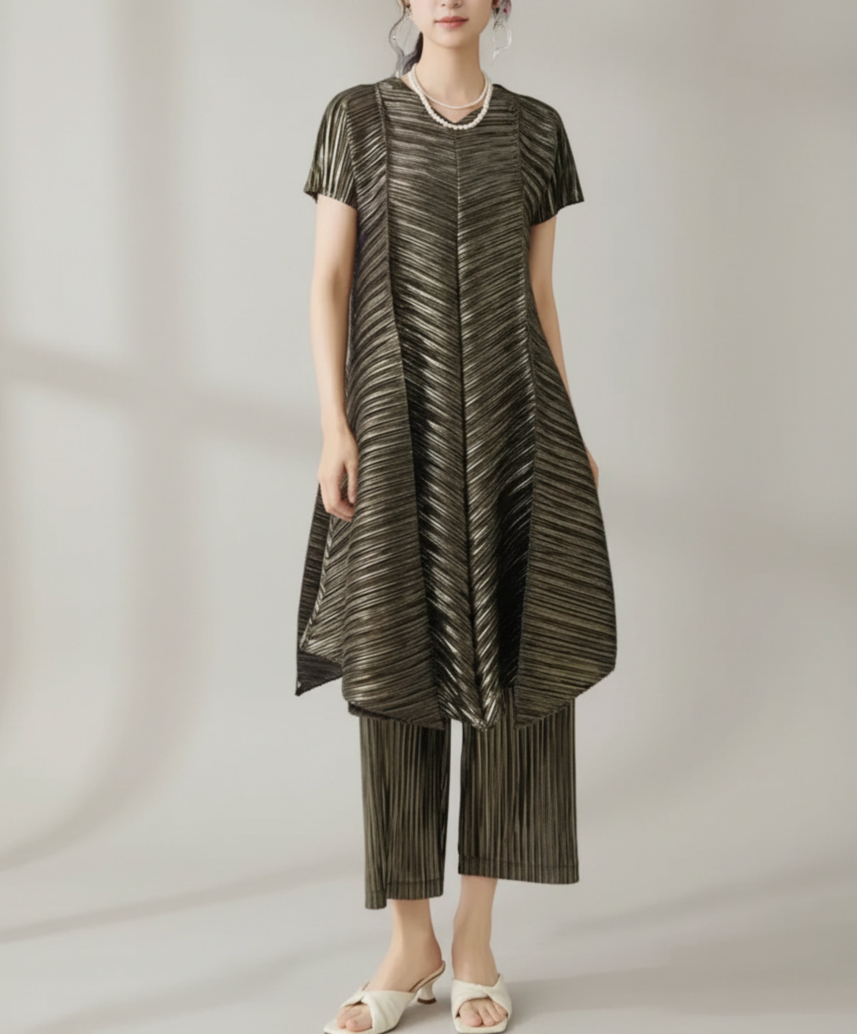 Luxury Travel Japanese Plissé Pleated Co-Ord