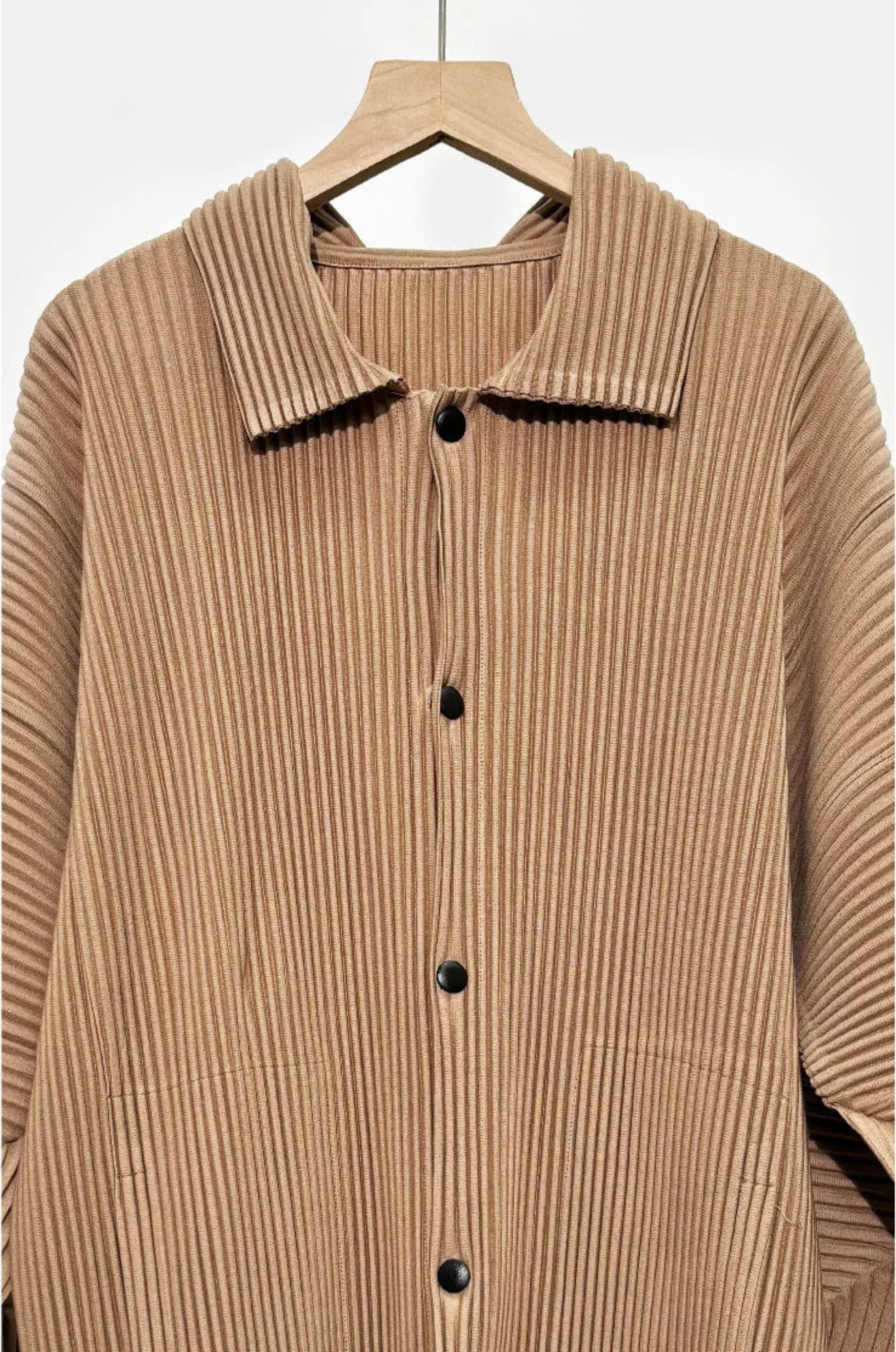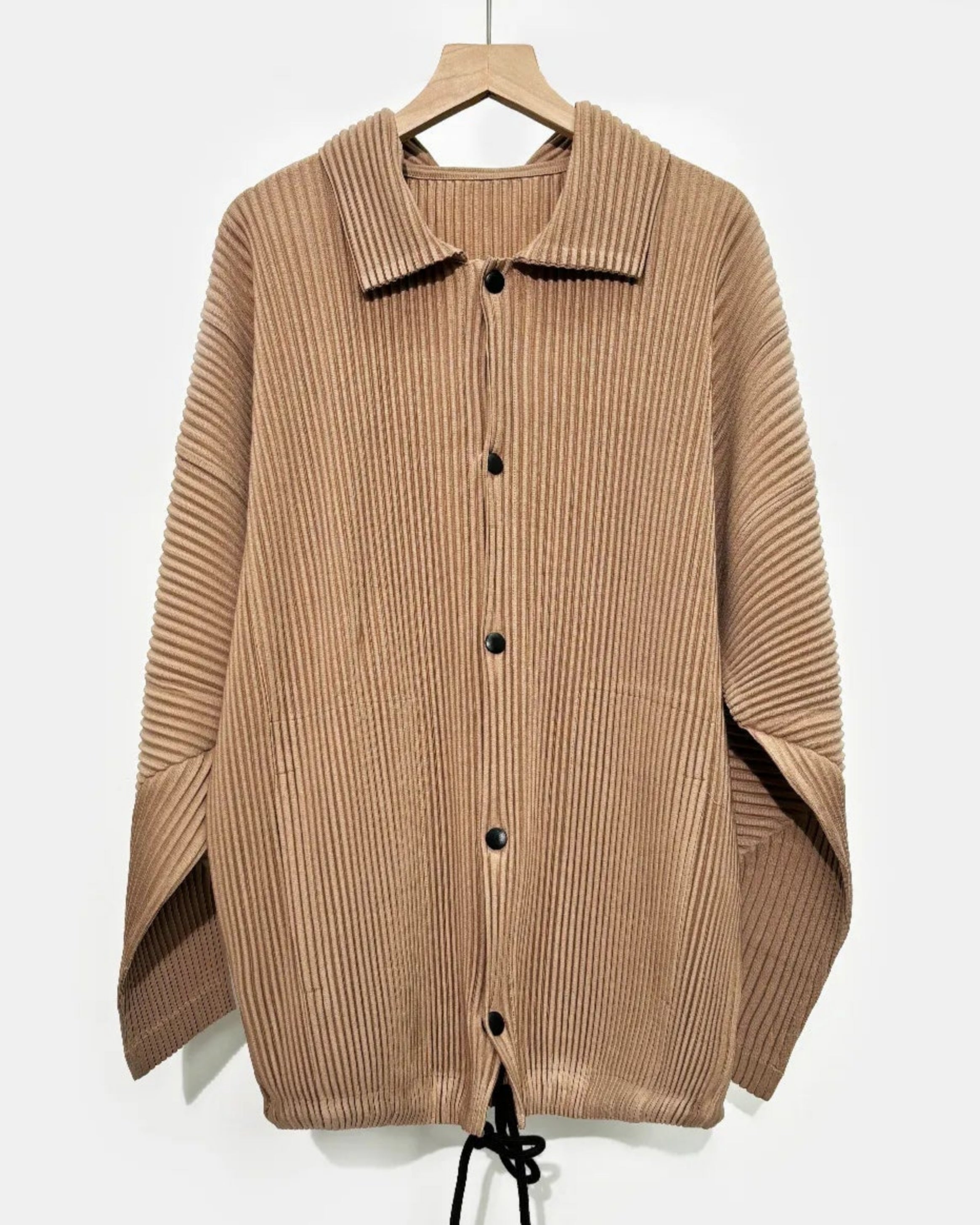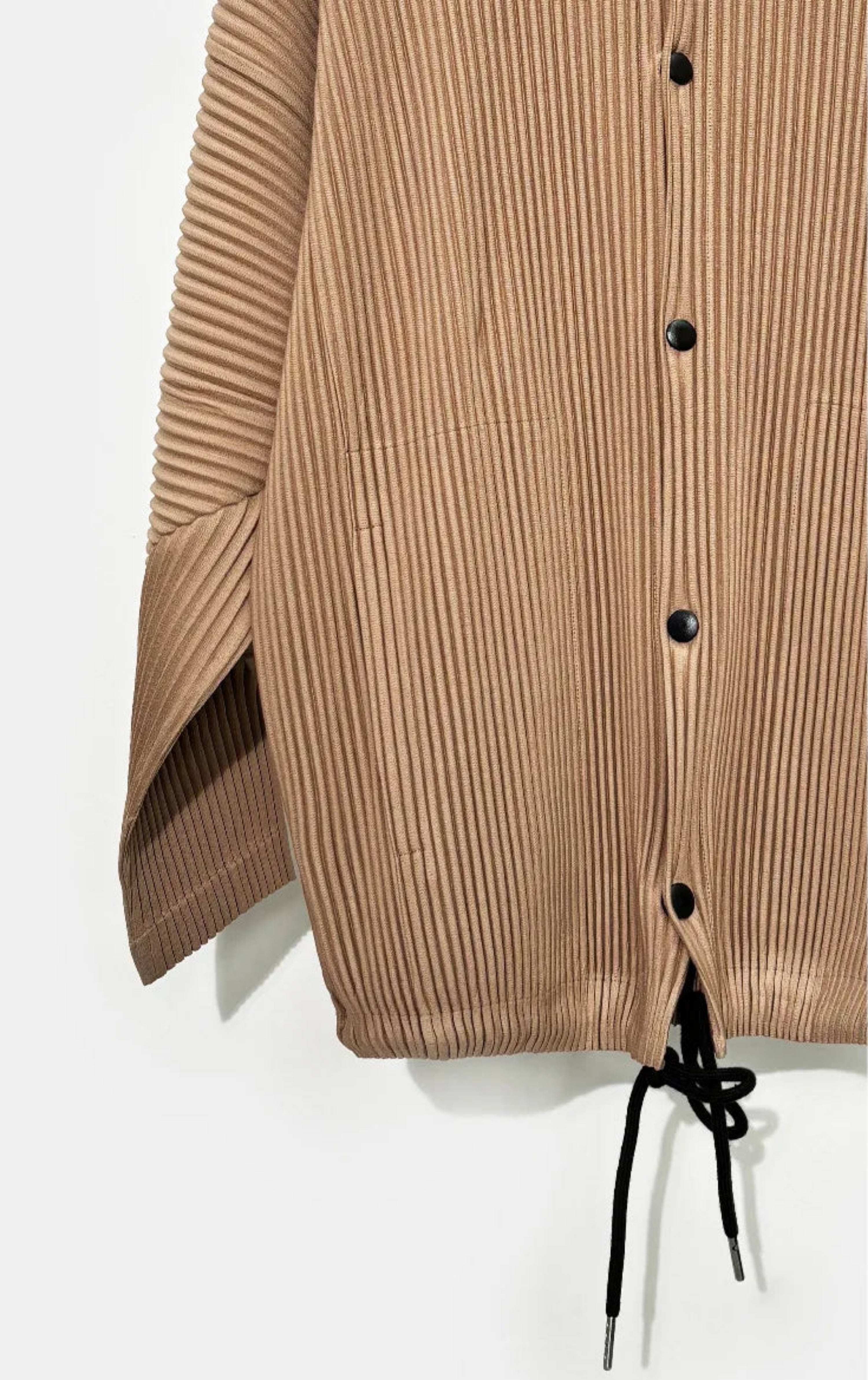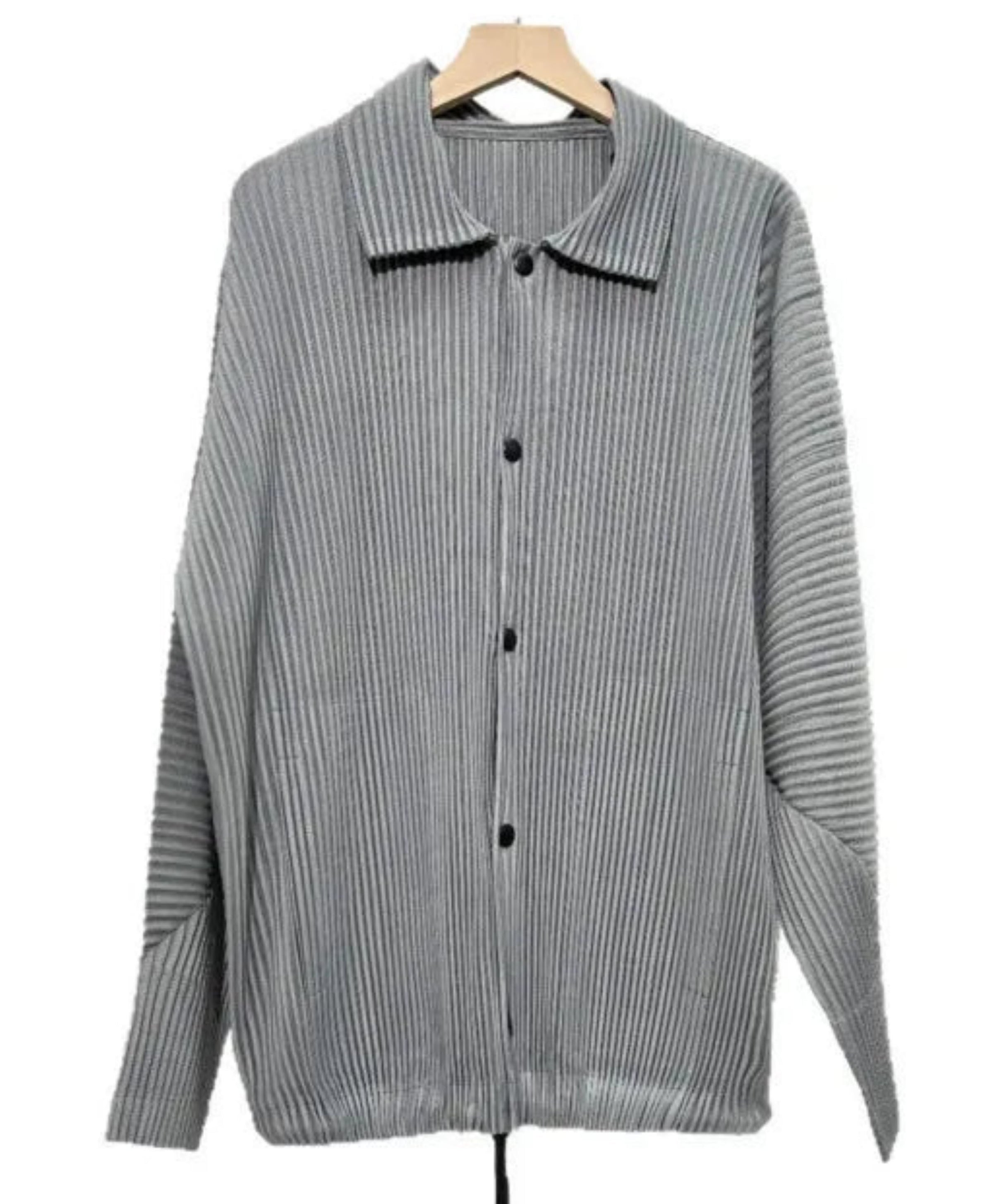 This luxury Japanese plissé jacket features an oversized fit with distinctive pleats.
