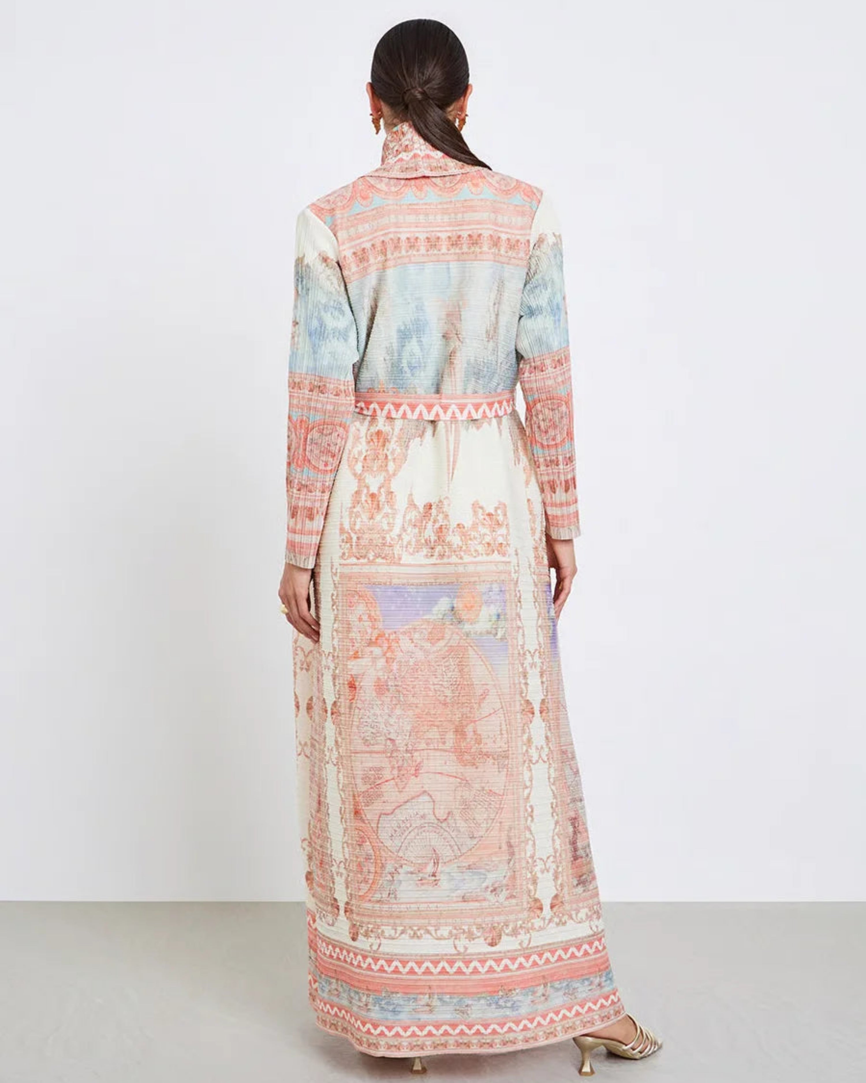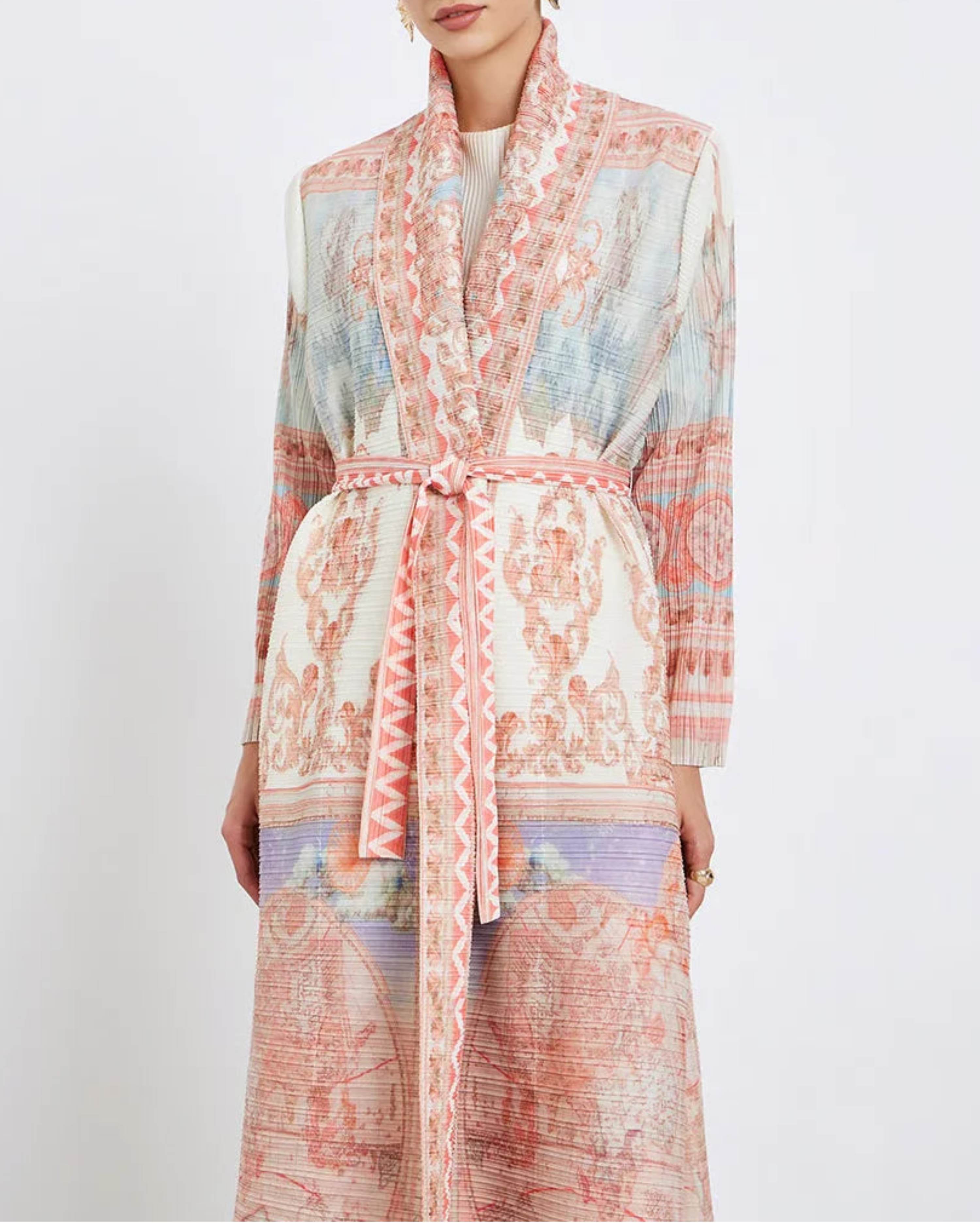A gorgeous maxi trench coat robe made from premium Japanese pleated fabric with stretch and comfort.