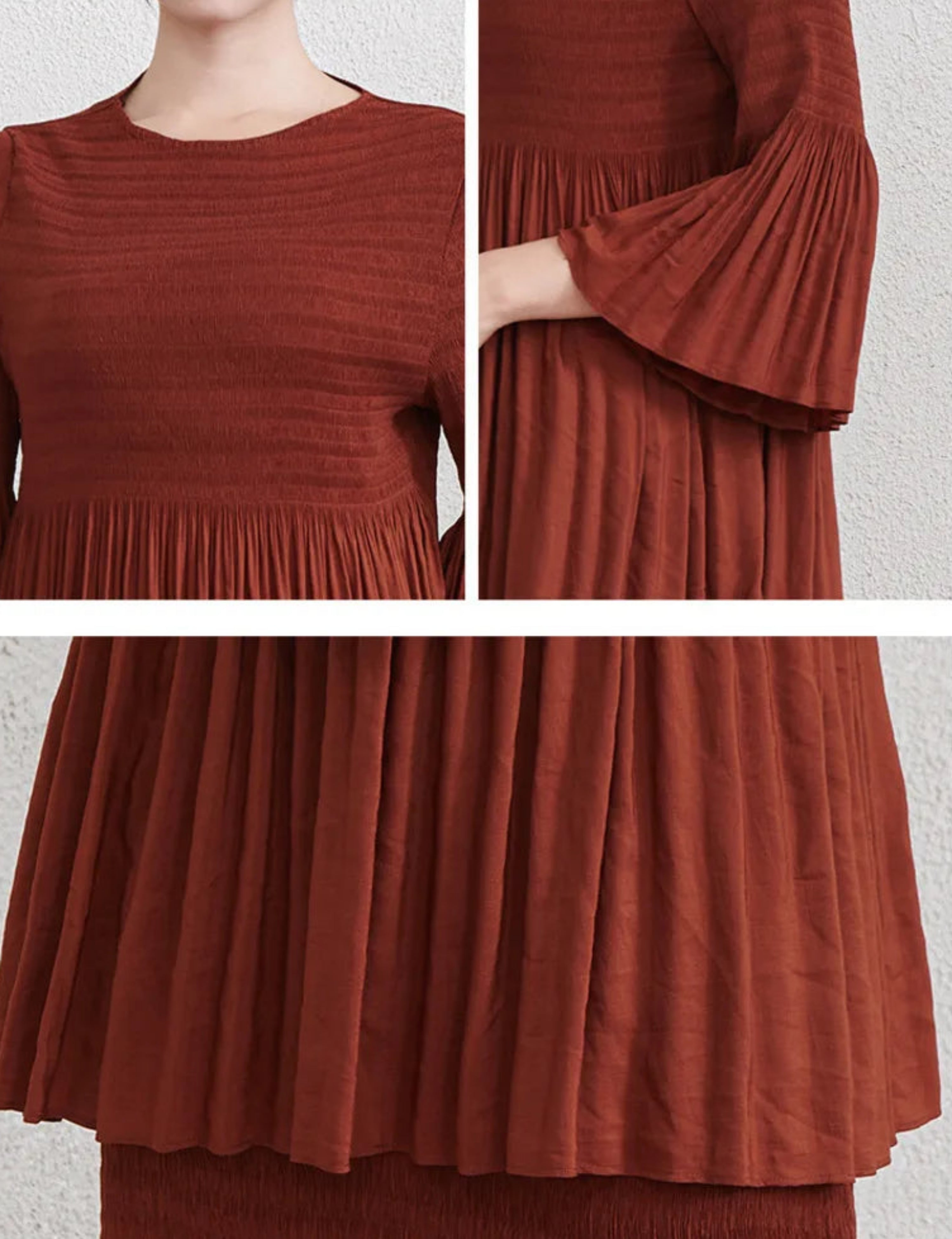 These pleated outfits are perfect for daily wear. The cut and fabric feel high-end.