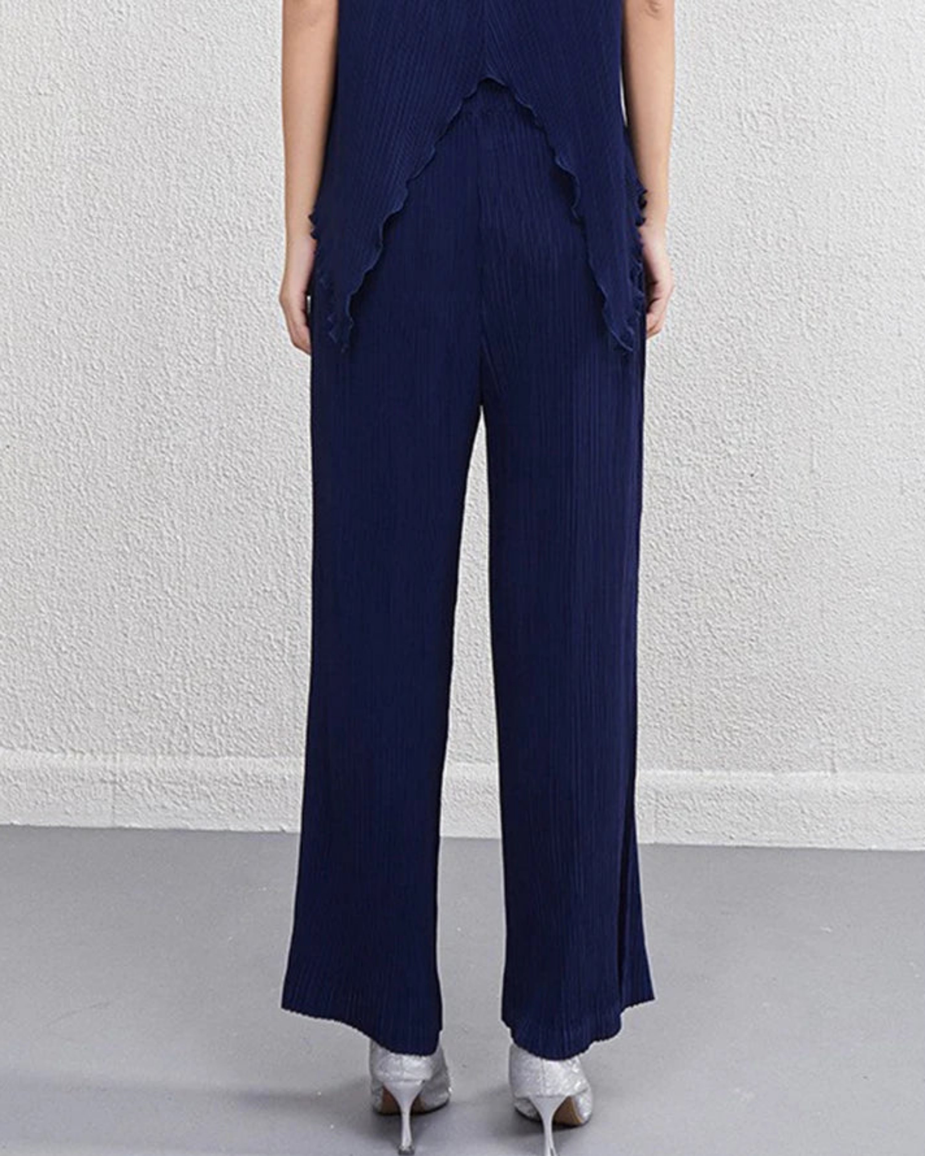 This elegant wide-leg trouser features premium Japanese pleats that create a smooth line from waist to hem.