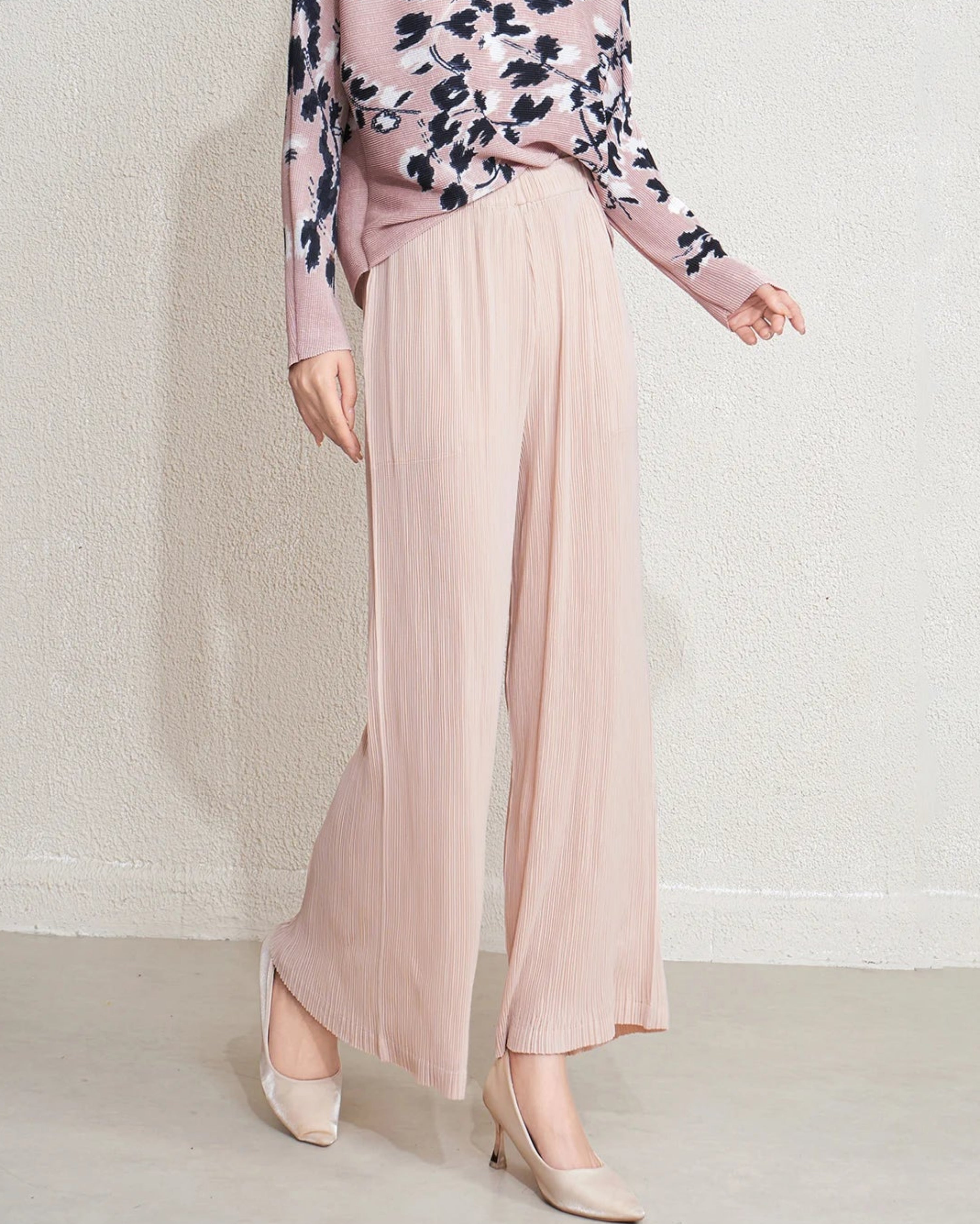The stretchy, wrinkle-resistant fabric keeps its shape, making it ideal for travel, work, or formal occasions. The elastic waistband adds comfort, while the relaxed silhouette offers a modern, graceful look.