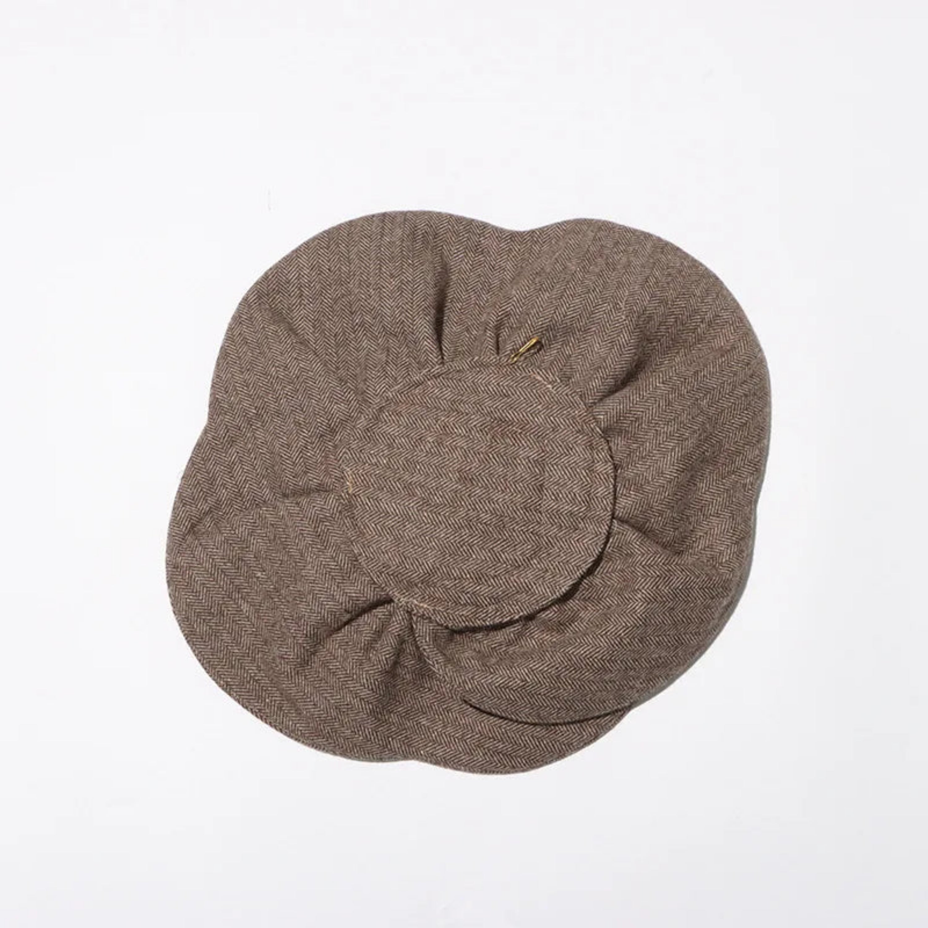 This tailored herringbone blazer features an oversized 3D floral applique that is fully detachable, offering a versatile and luxurious look.