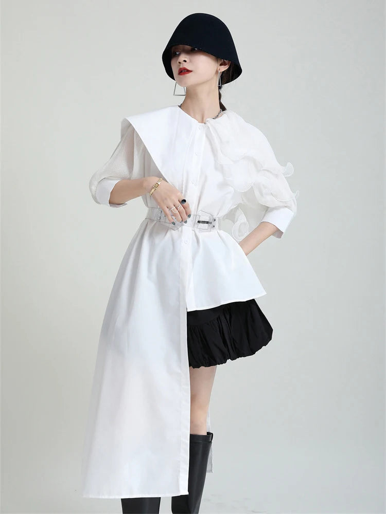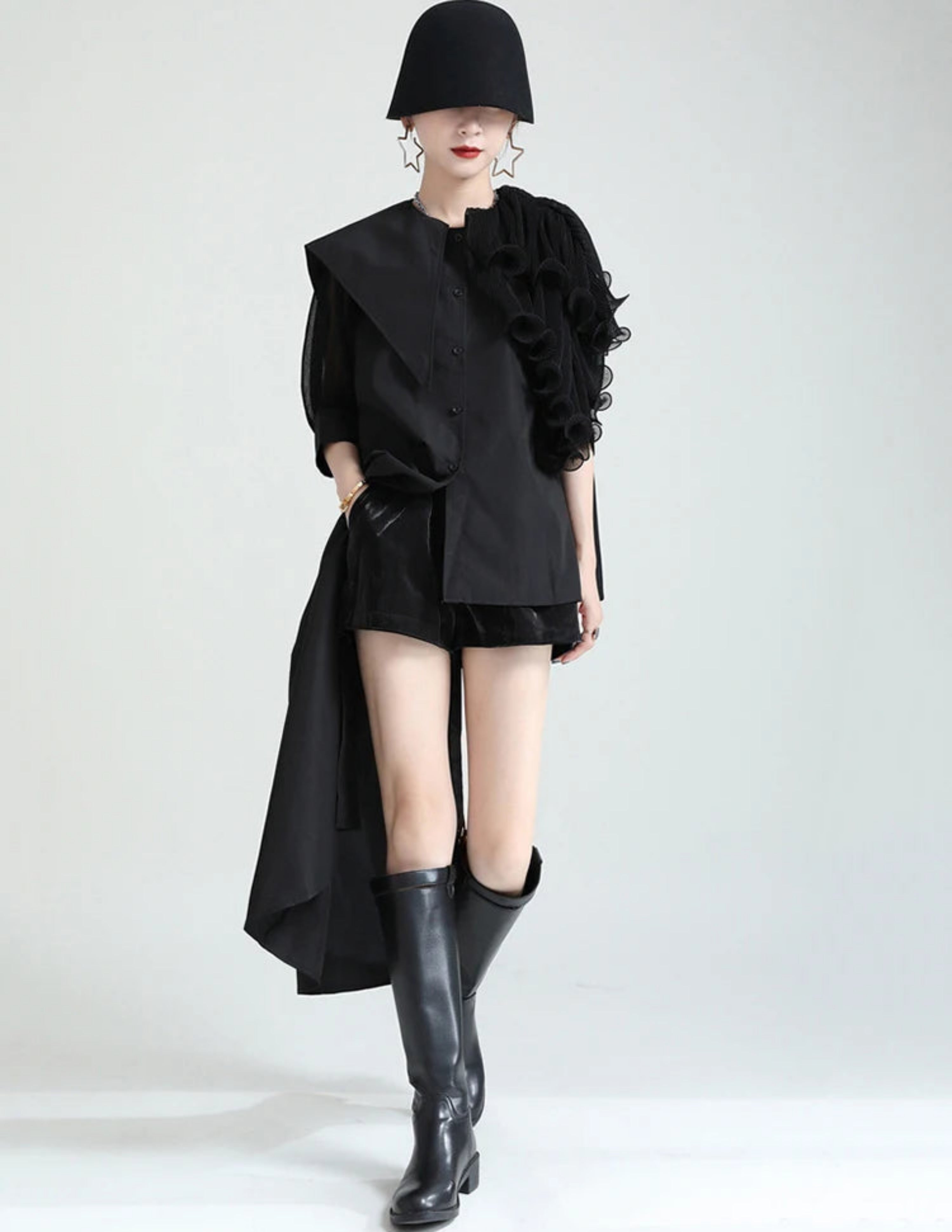 Avant-Garde Pleated Asymmetrical Blouse – Designer Couture