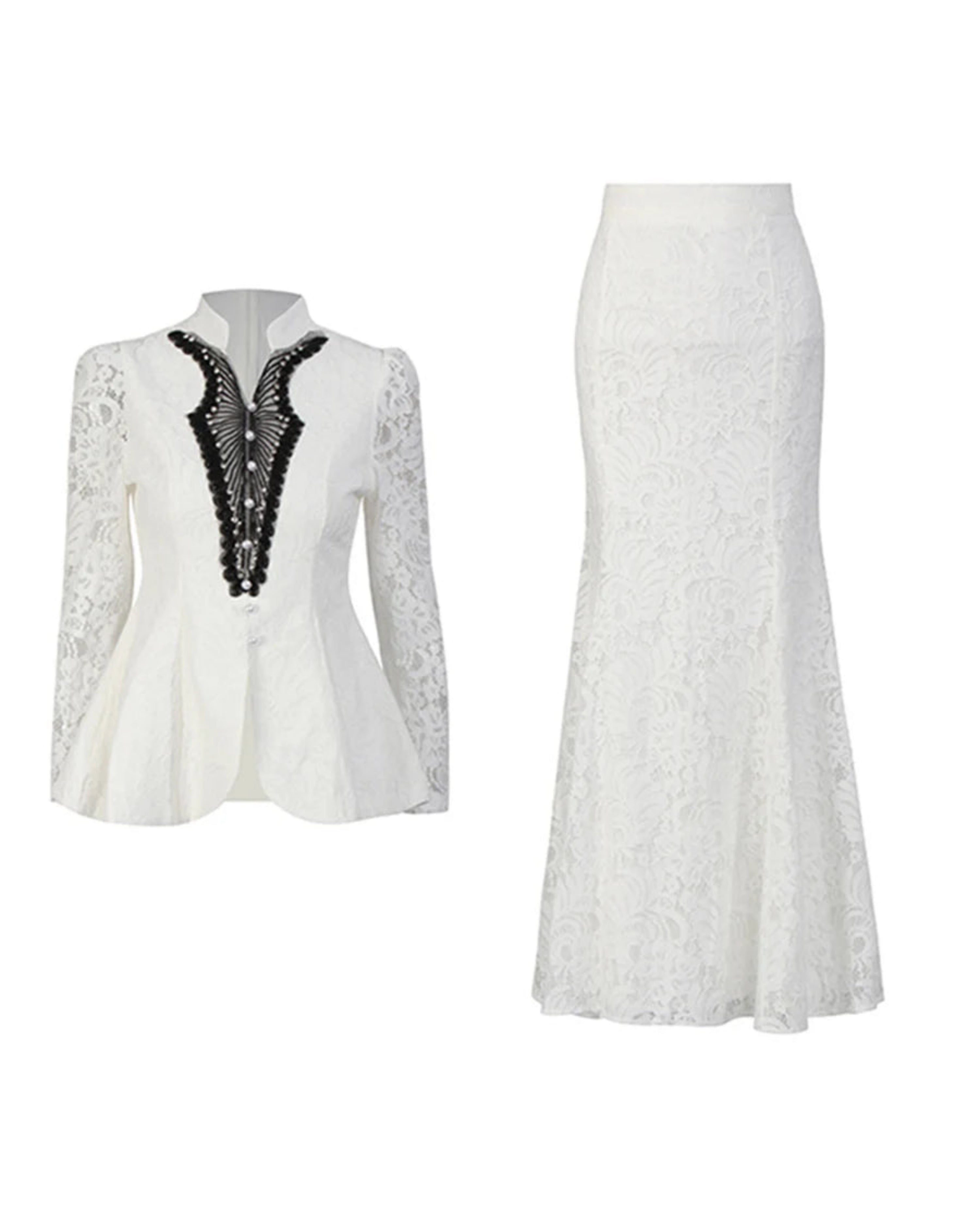 Couture Lace Skirt Set with Beaded Peplum Jacket