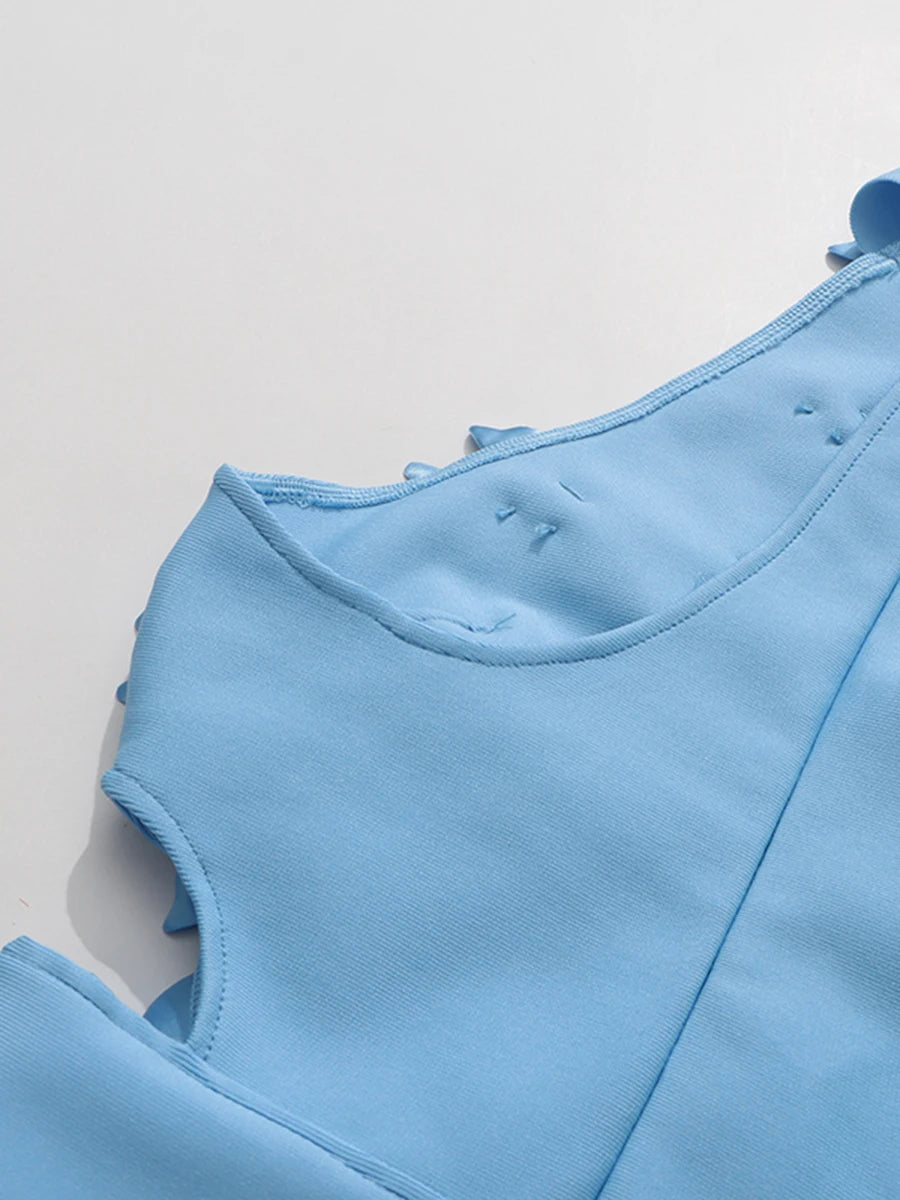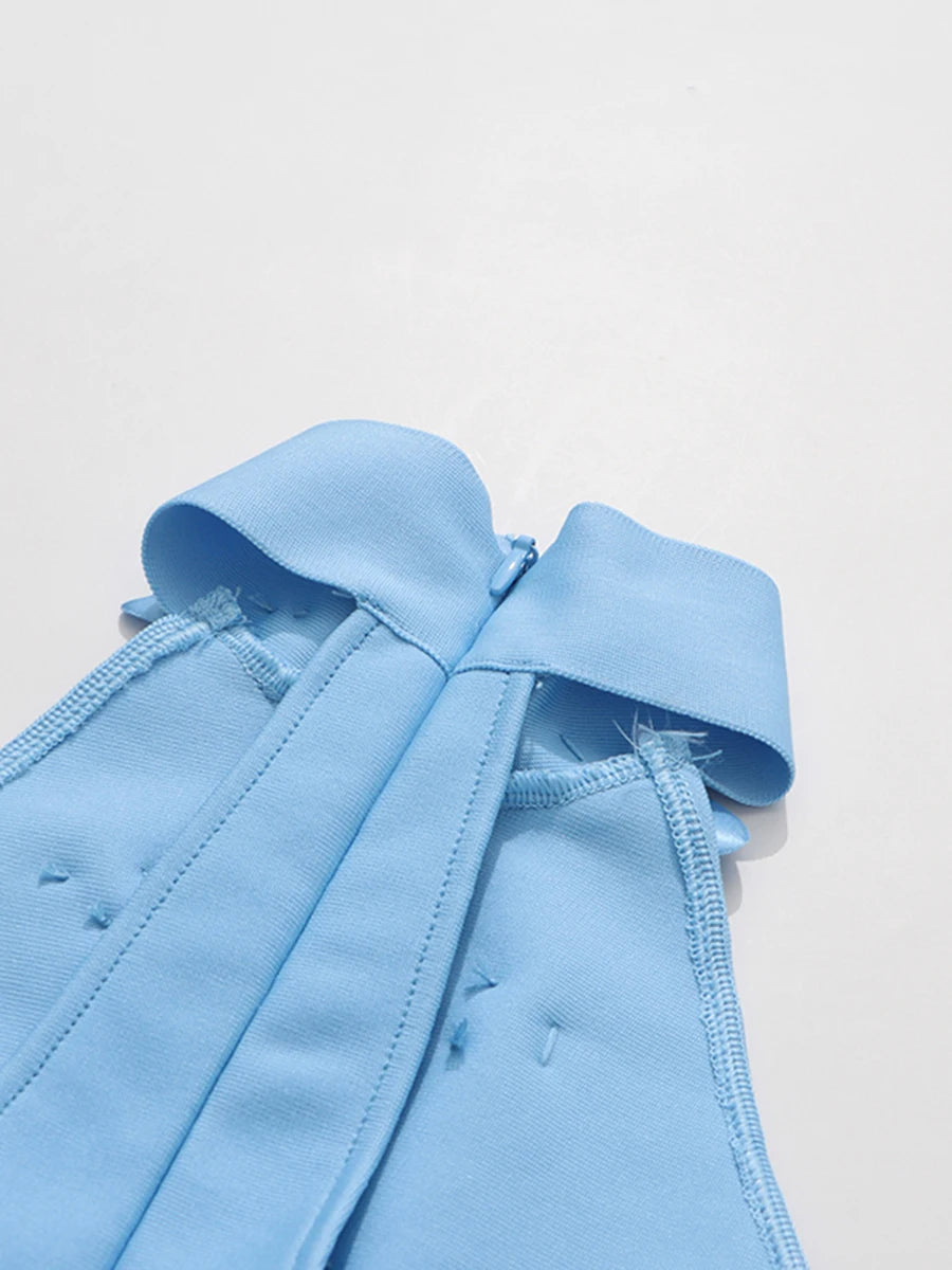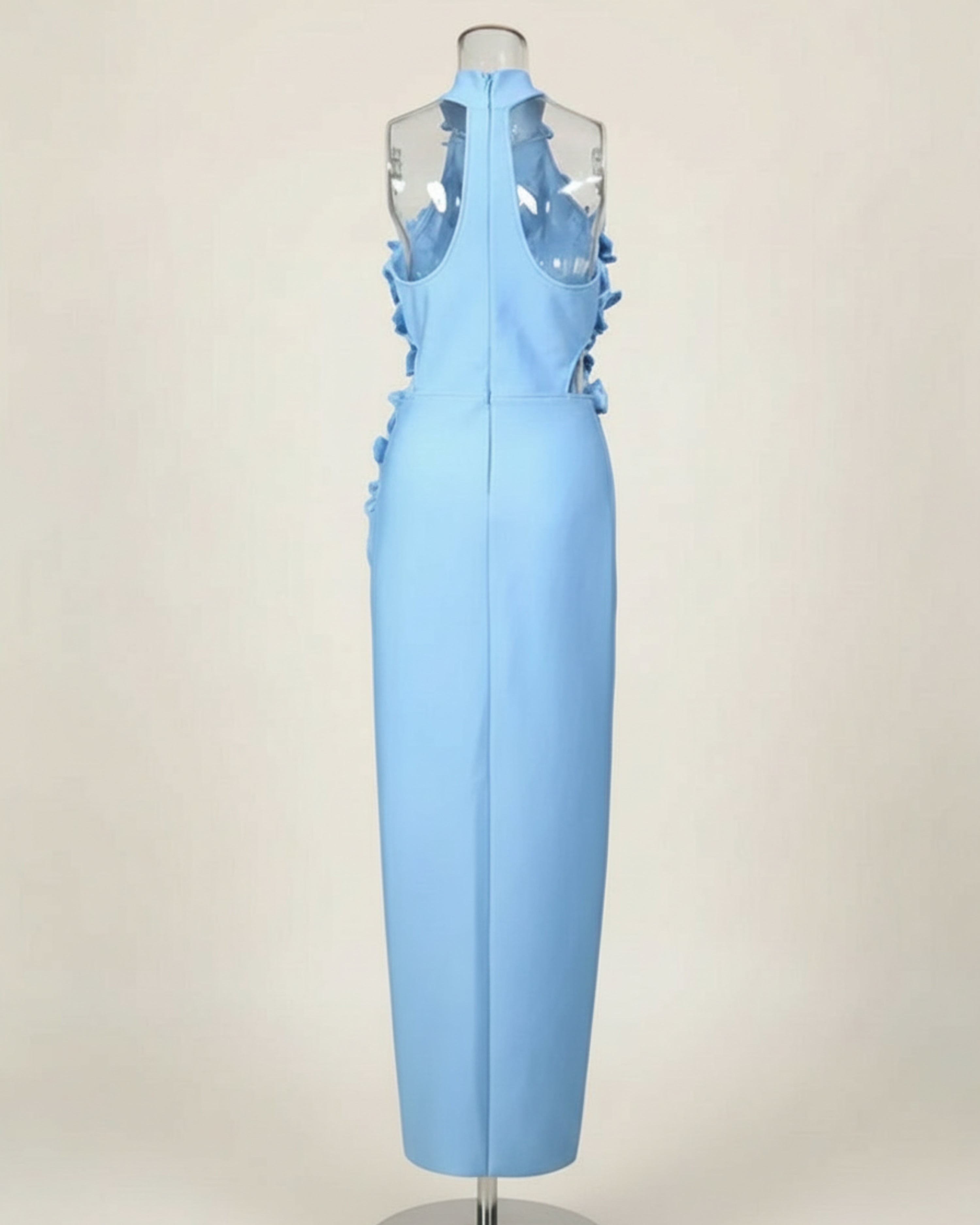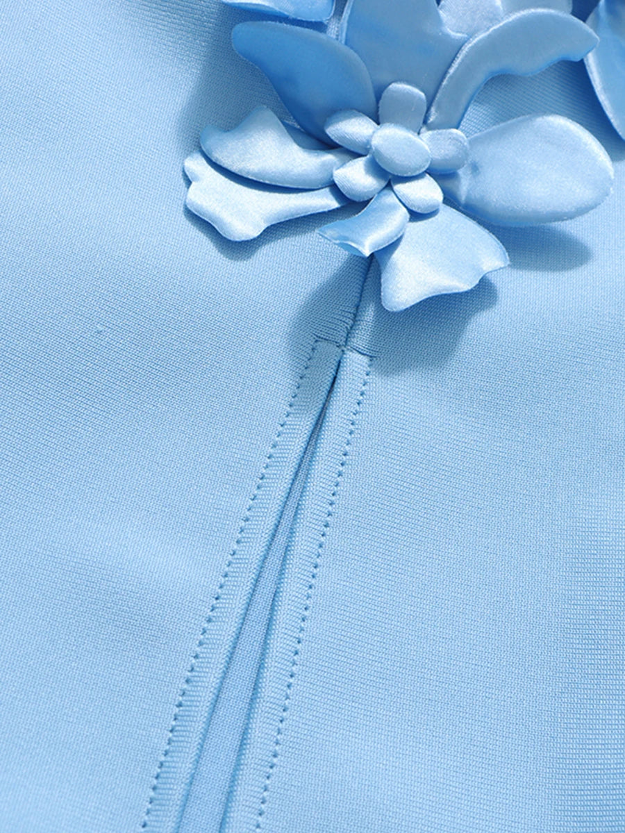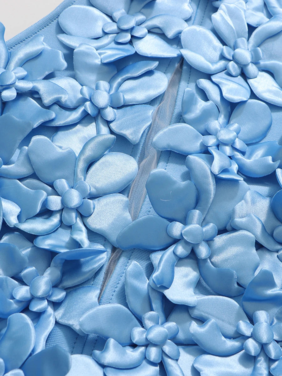 Elegant 3D Floral Halter-Neck Dress