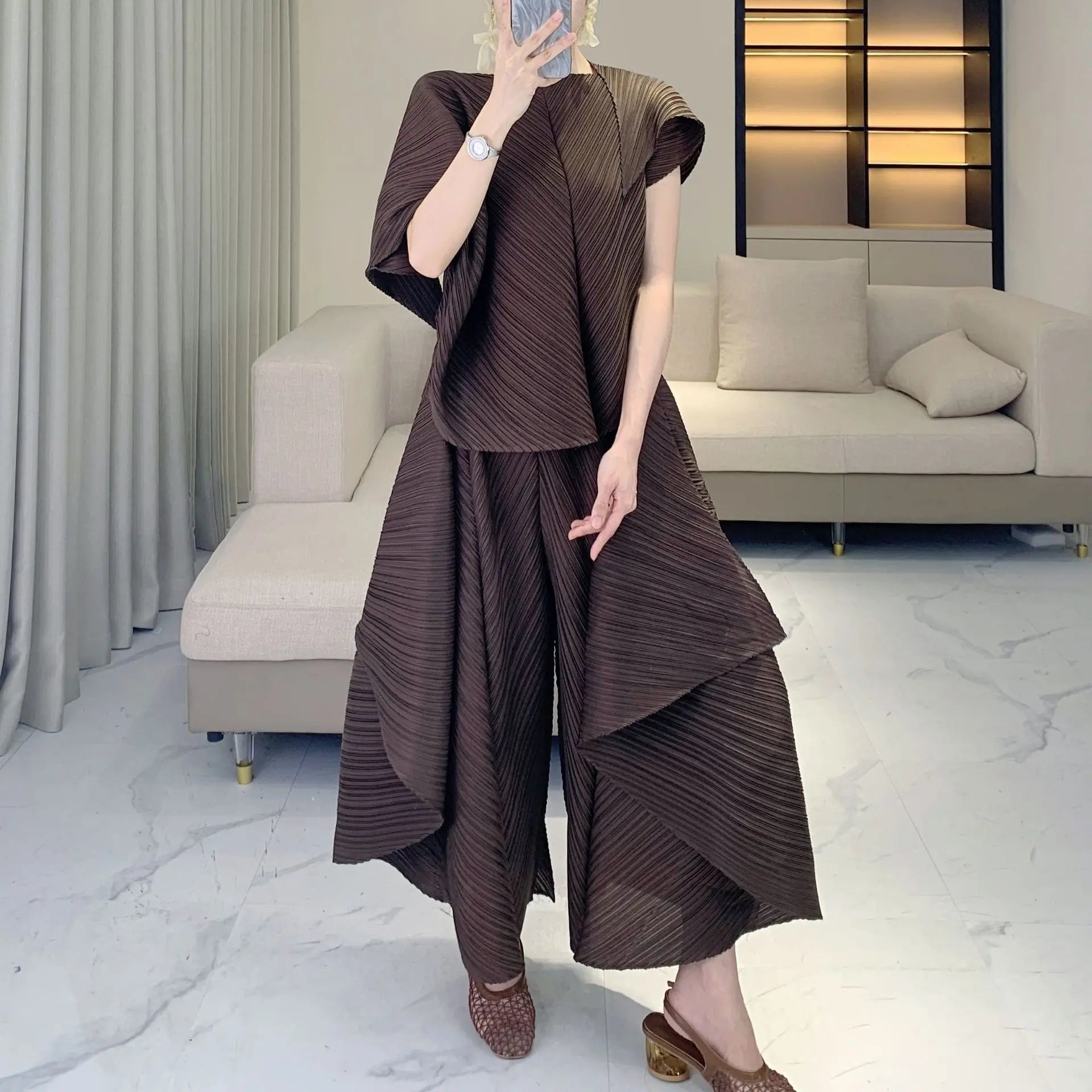 This 2-piece set combines Japanese pleats with a loose, asymmetric silhouette for comfort and style.