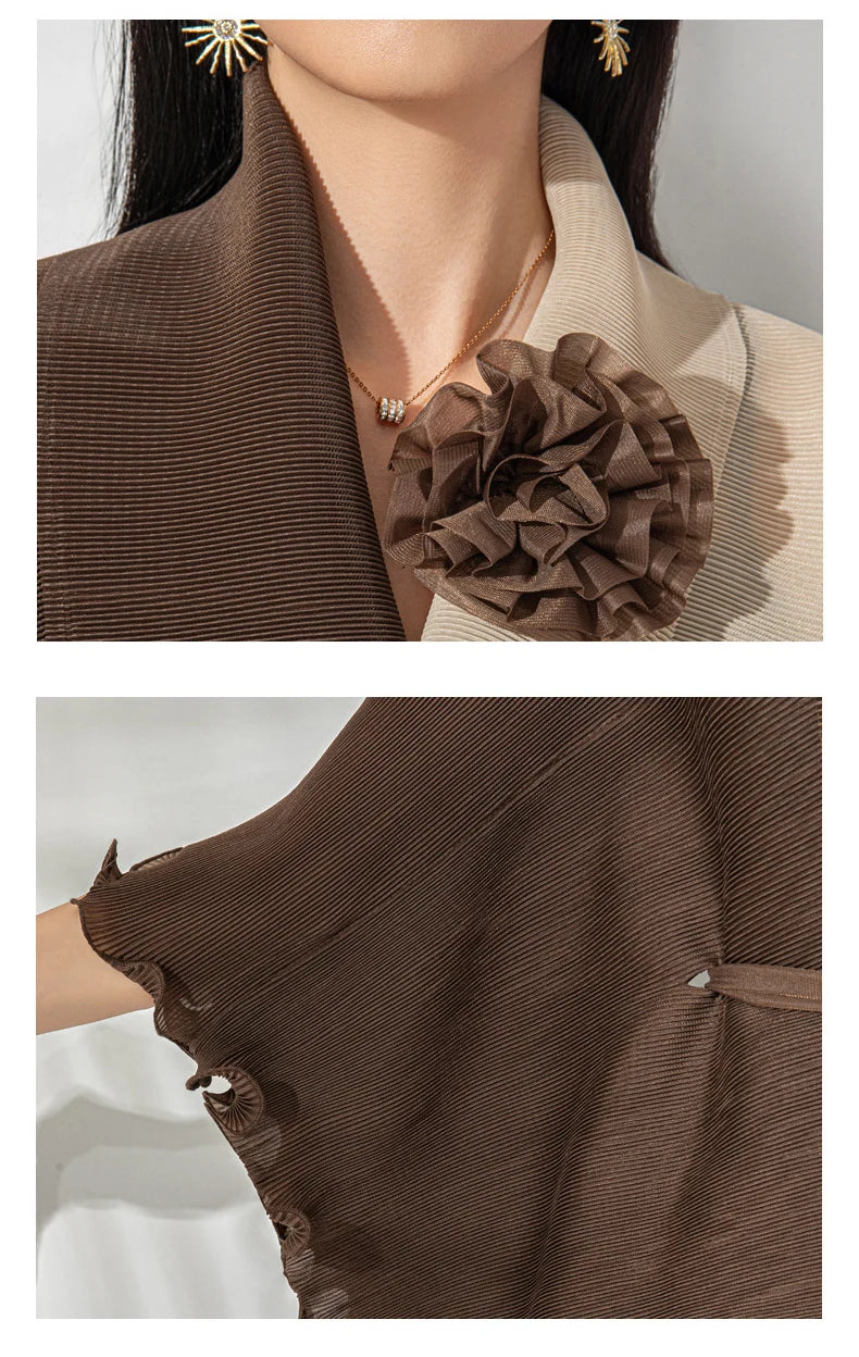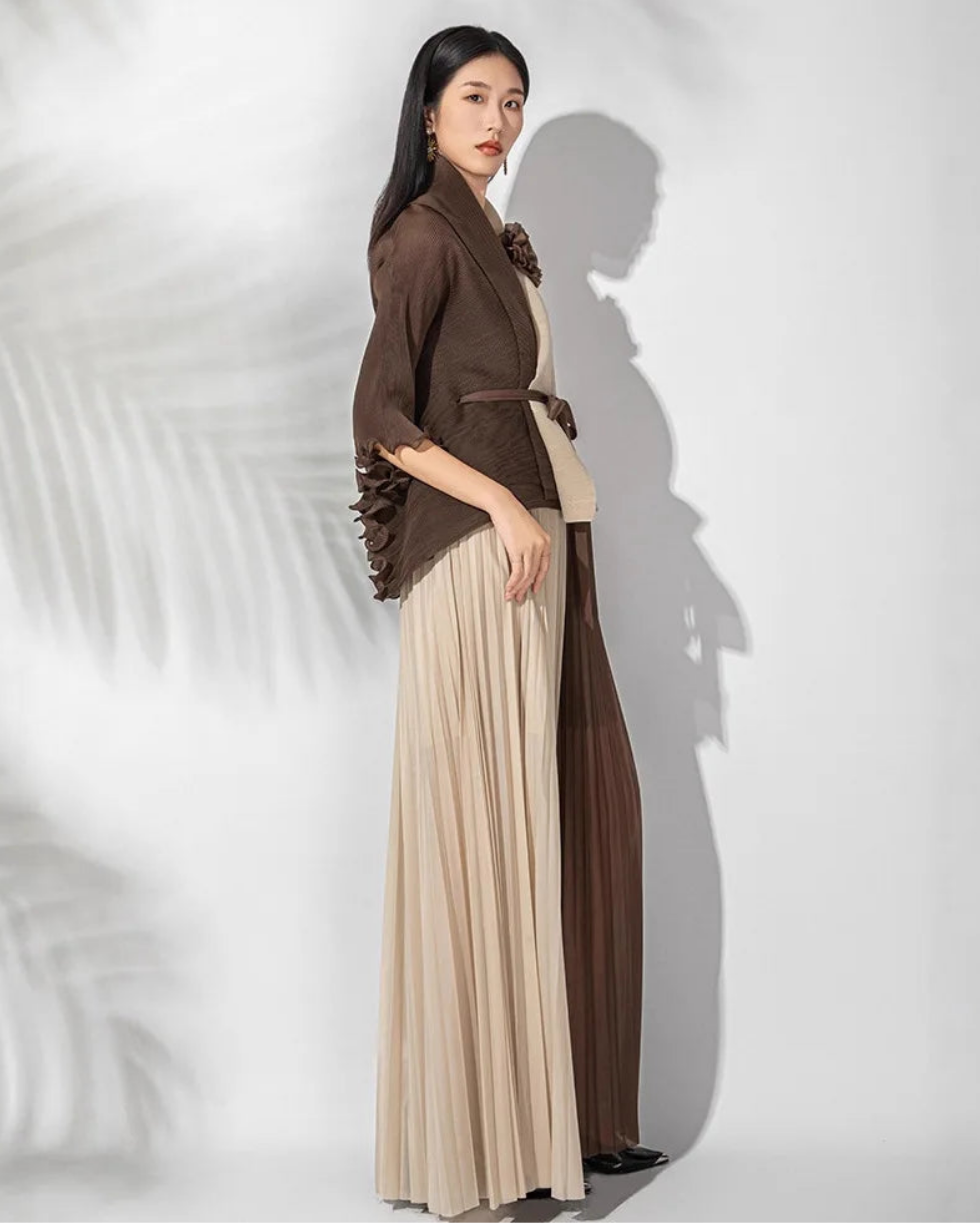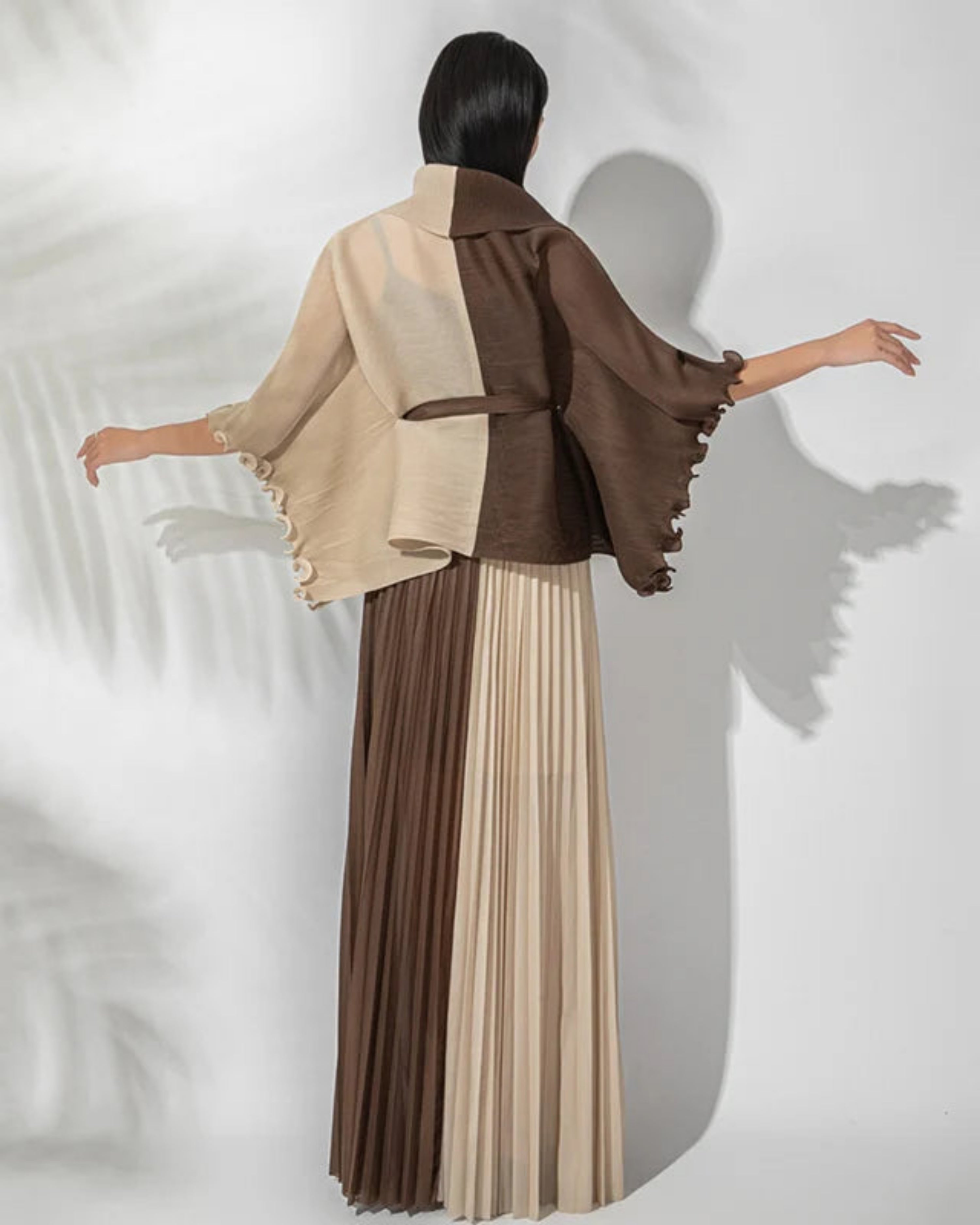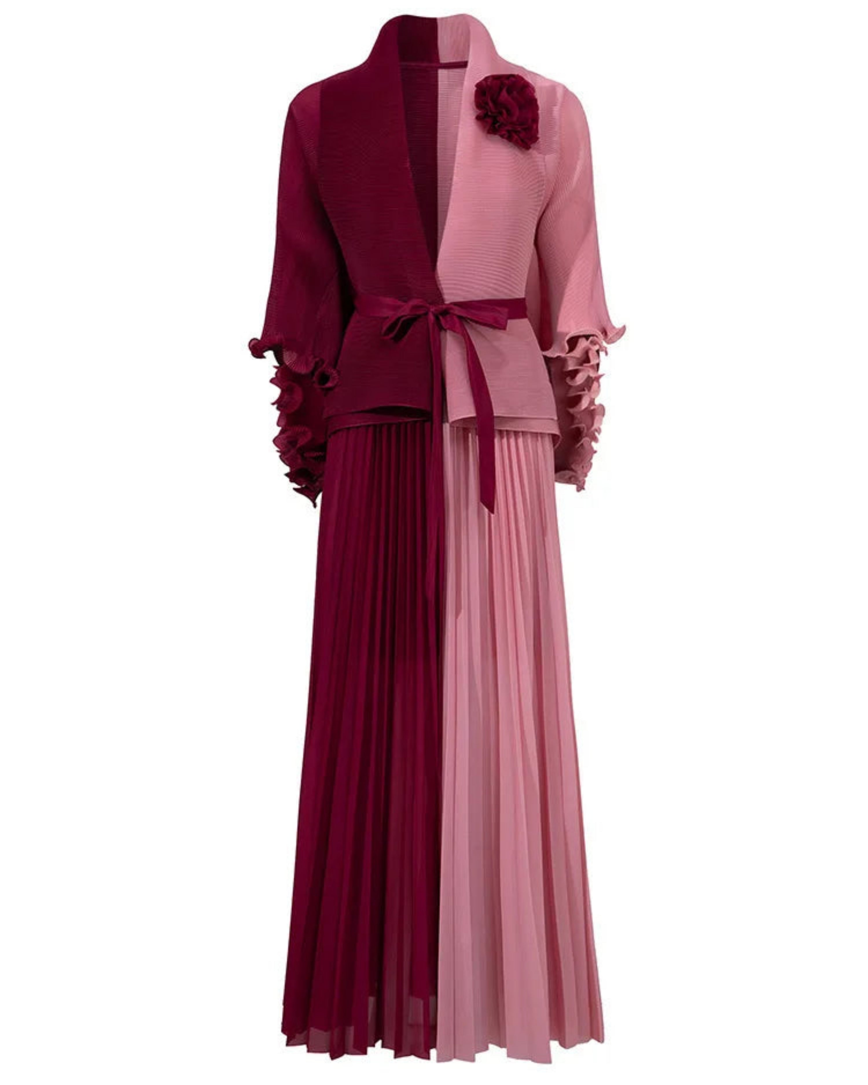 Designer Formal Japanese Micro-Pleated Two Piece Skirt And Top Set