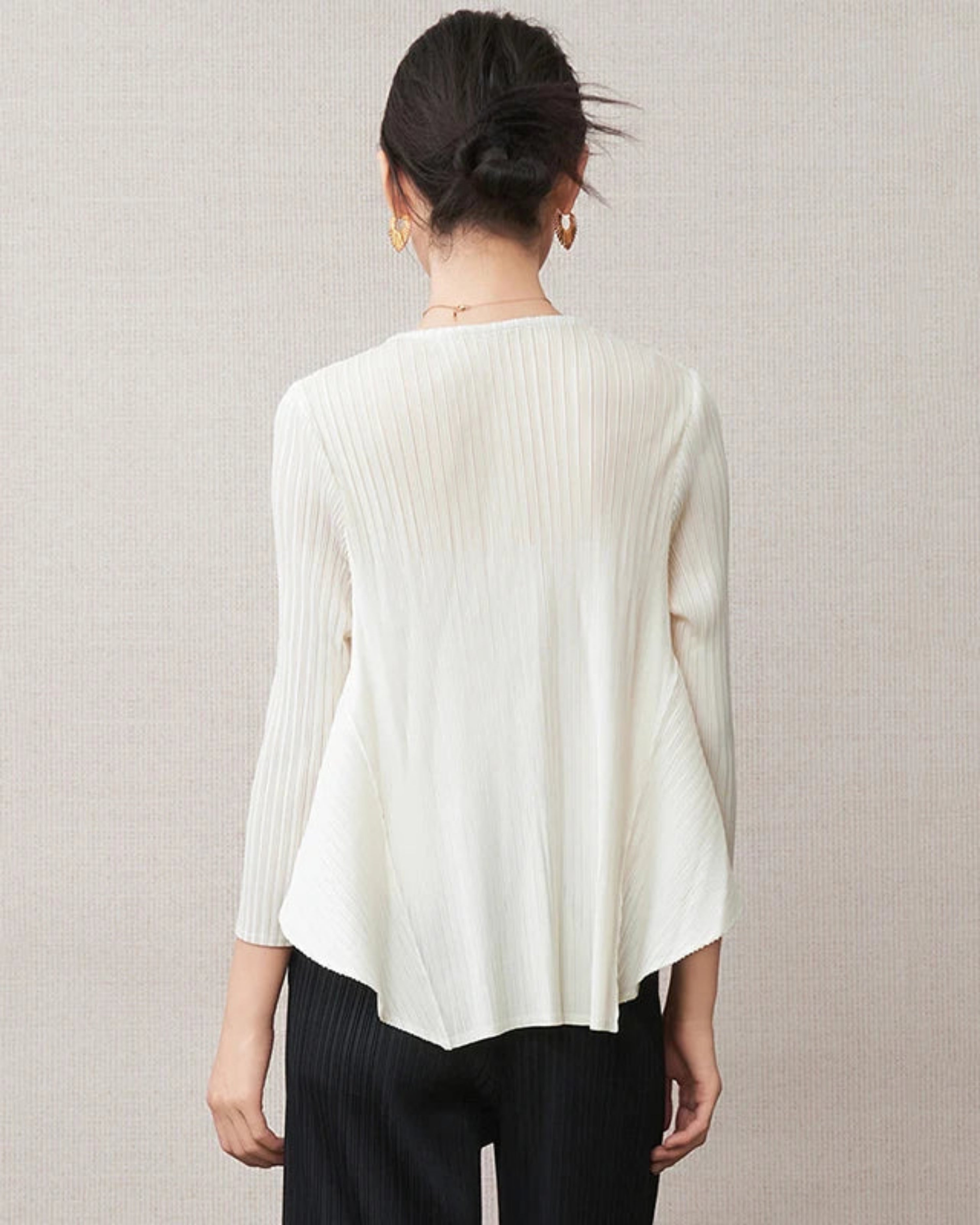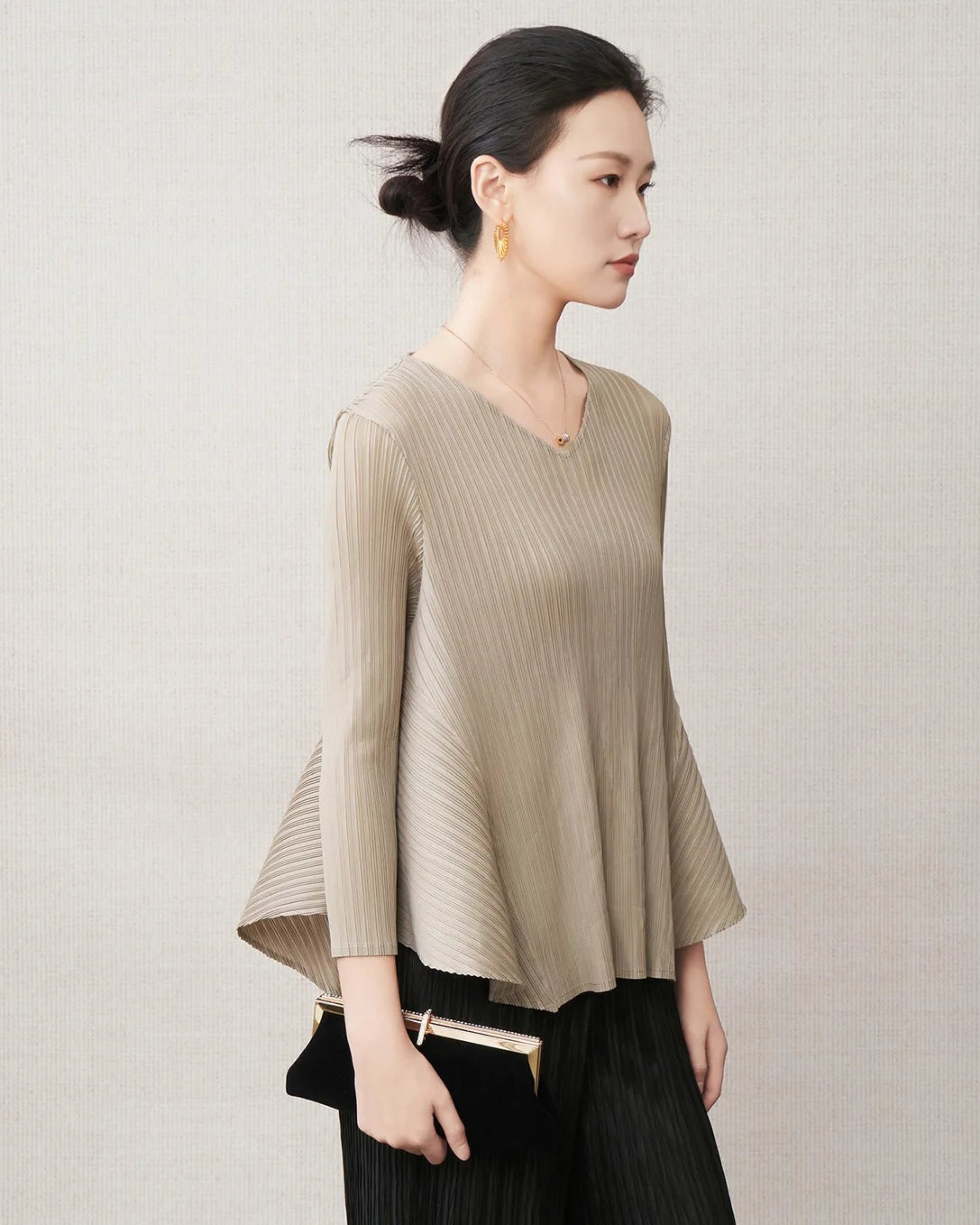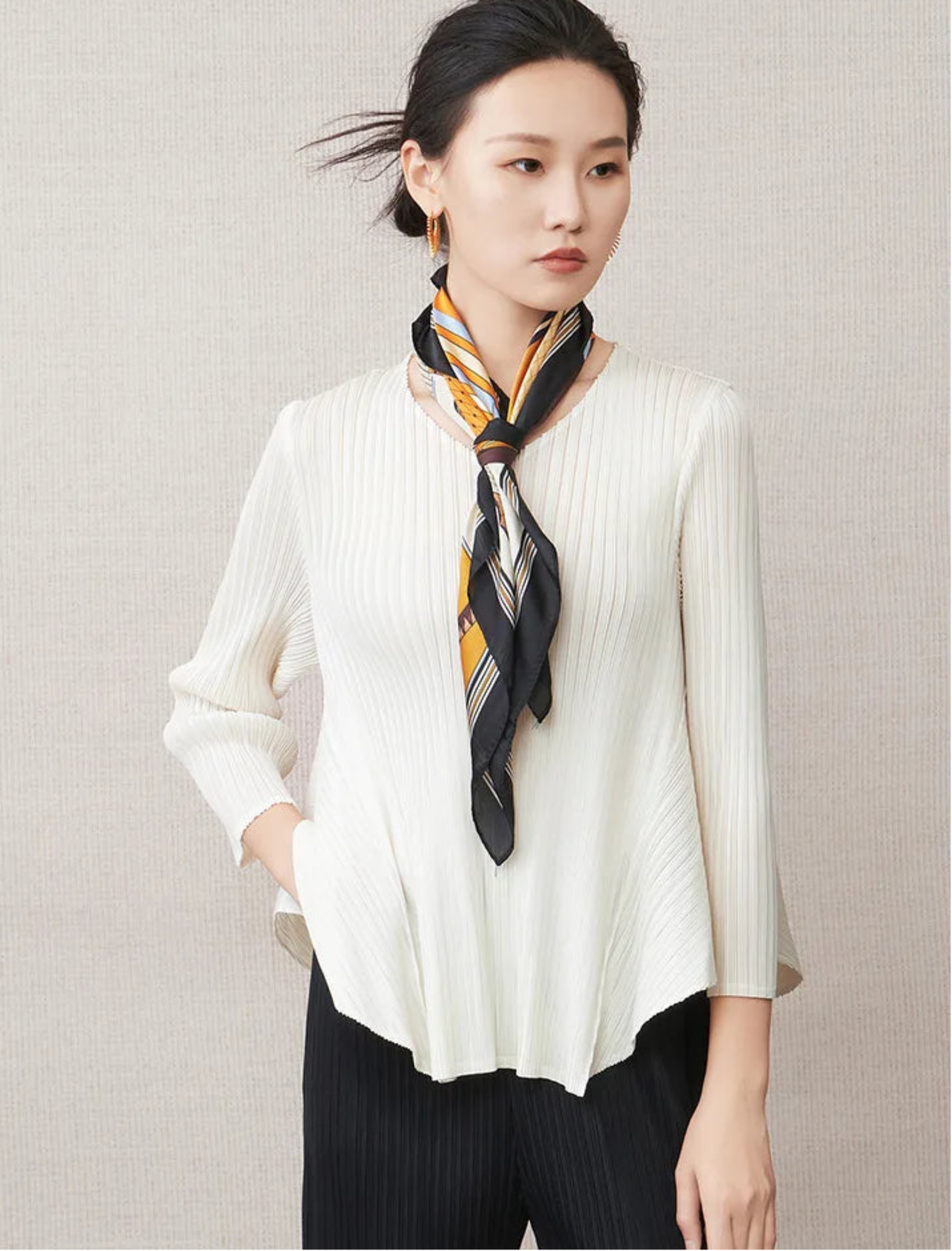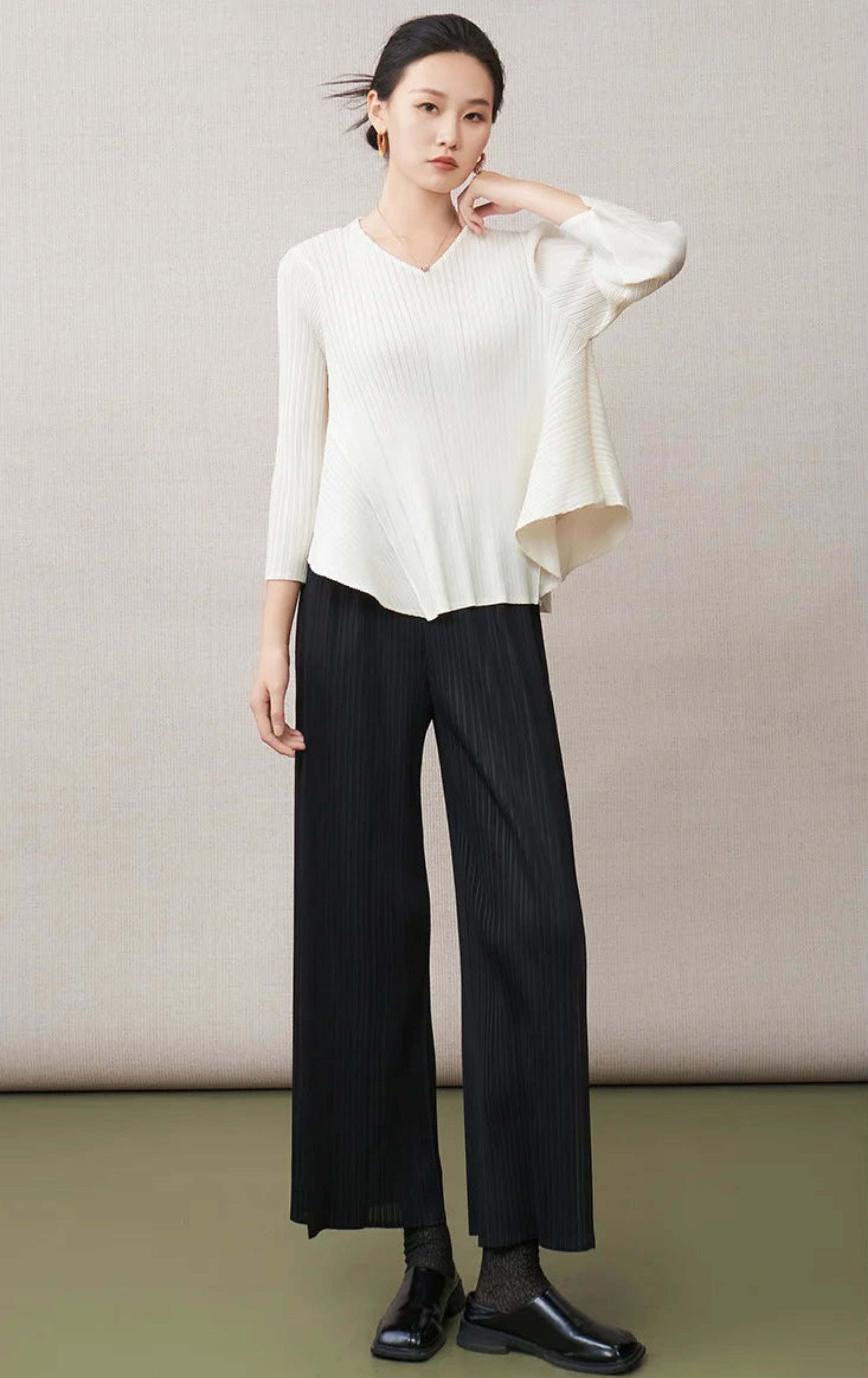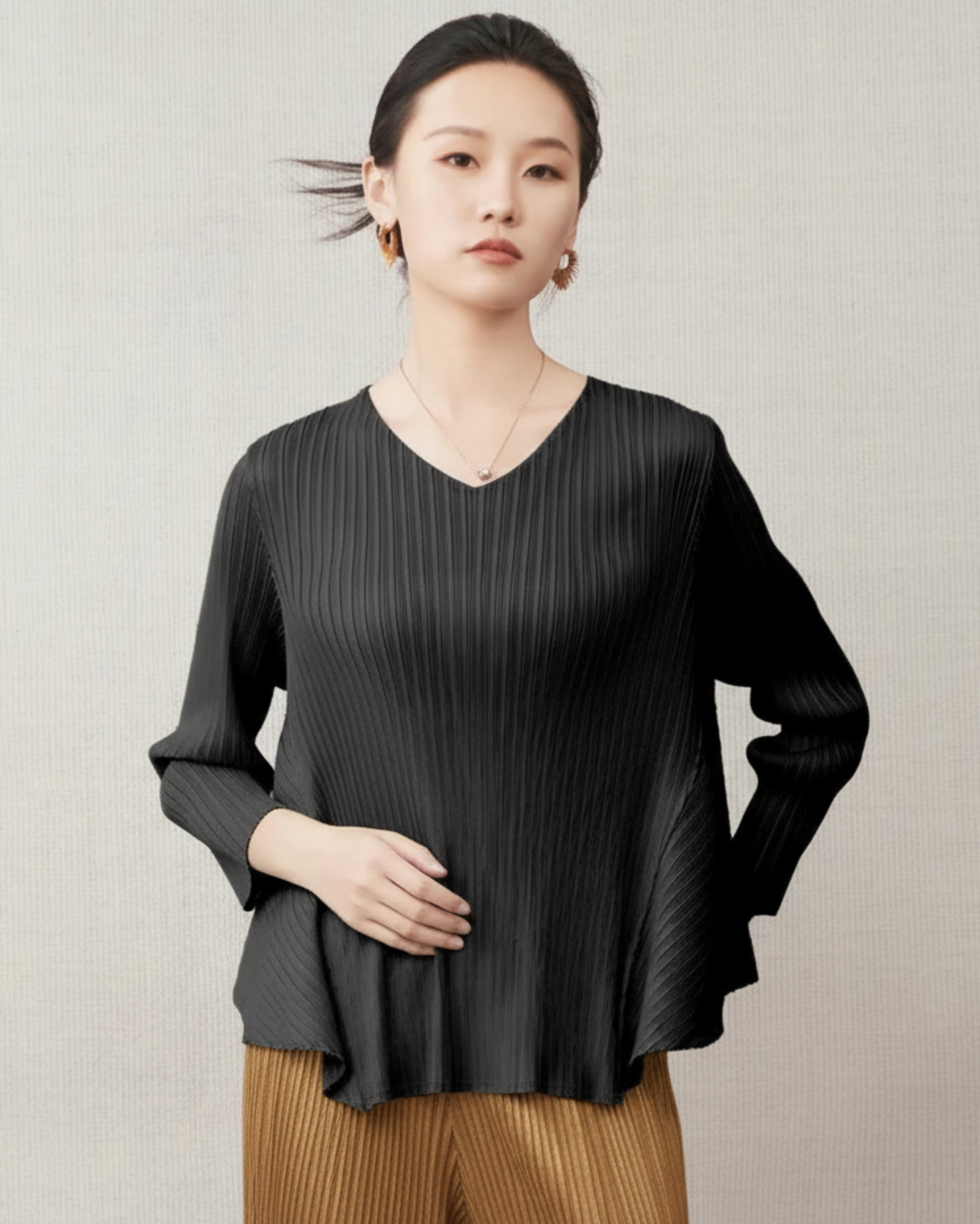 Designer Japanese Micro-Pleated V-Neck Asymmetrical Top