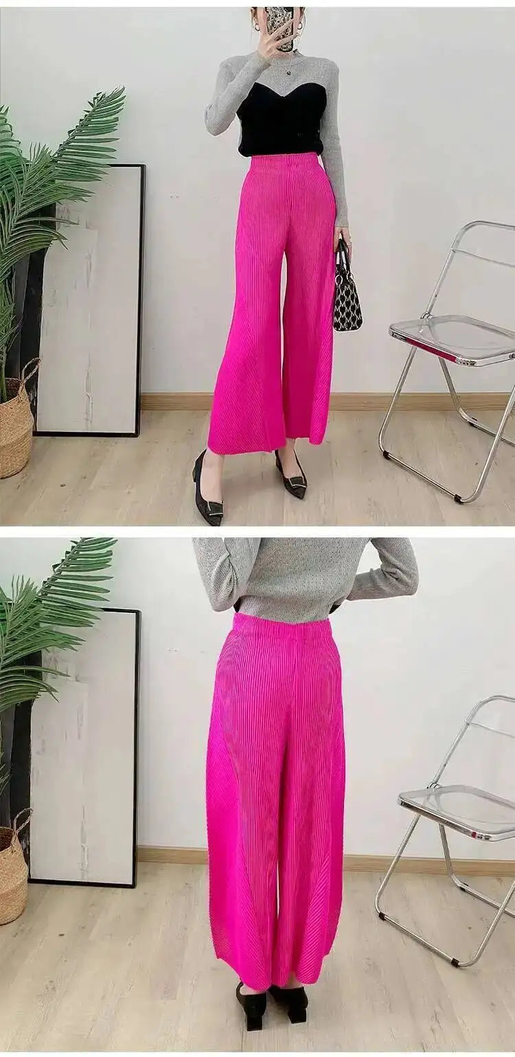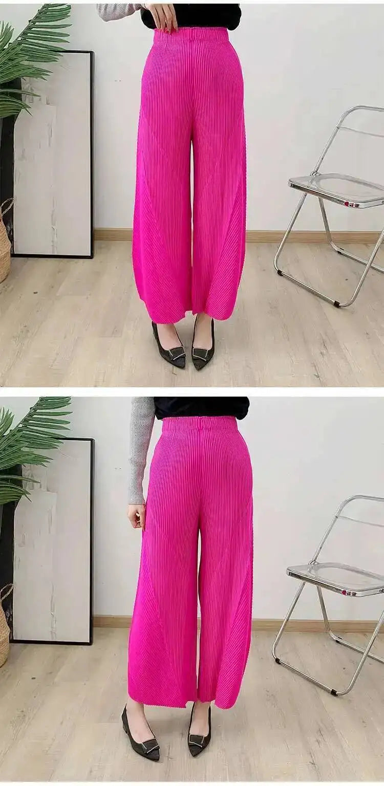 High-waisted palazzo pants featuring signature Japanese pleats for a modern, elegant silhouette. Stretchy, wrinkle-resistant fabric moves with ease and requires no ironing.