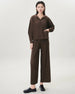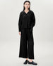 Luxury 2-piece ensemble featuring a hooded long-sleeve top and wide-leg pull-on pants with an elastic waistband for comfort.