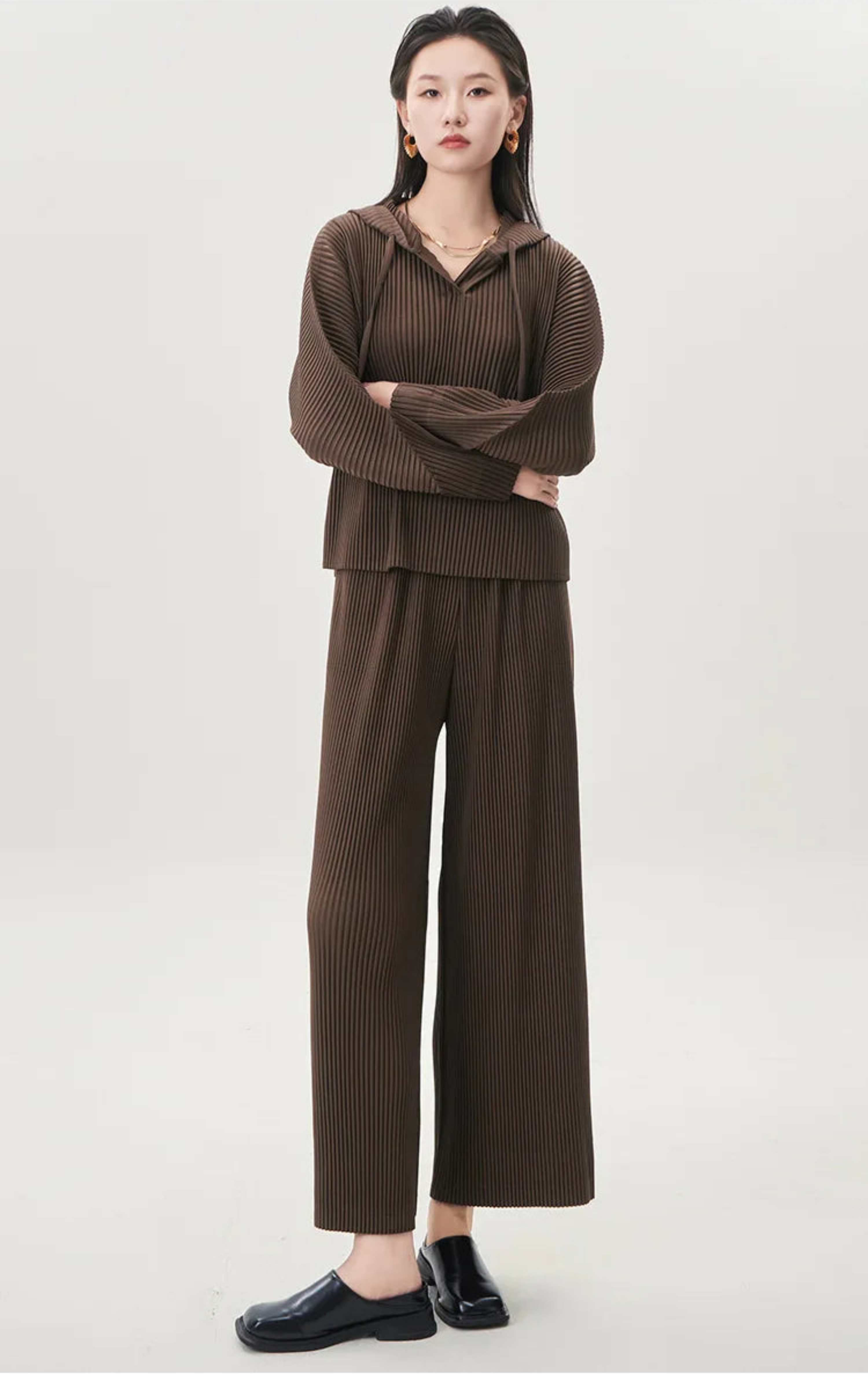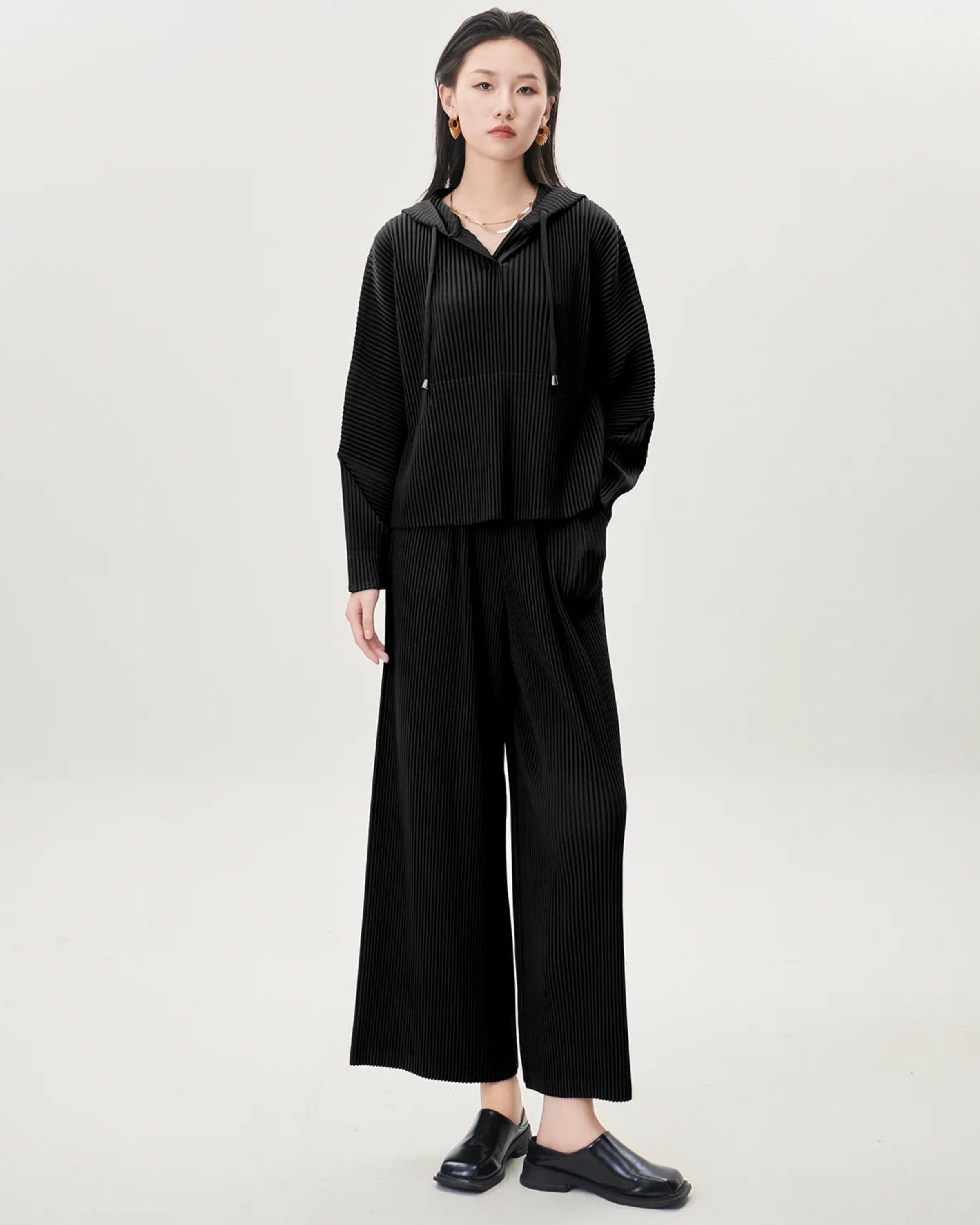 These pleated outfits are perfect for daily wear. The cut and fabric feel high-end.