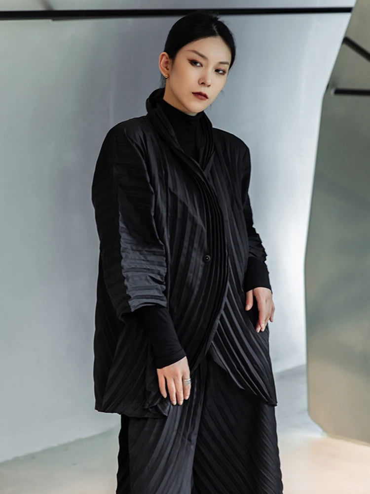 Designer Japanese Plissé Jacket and Pant Set – Luxury Pleated Two-Piece for Women