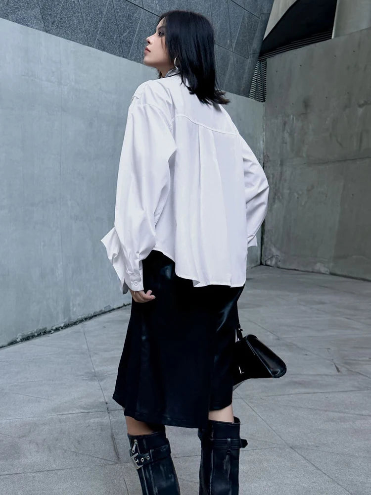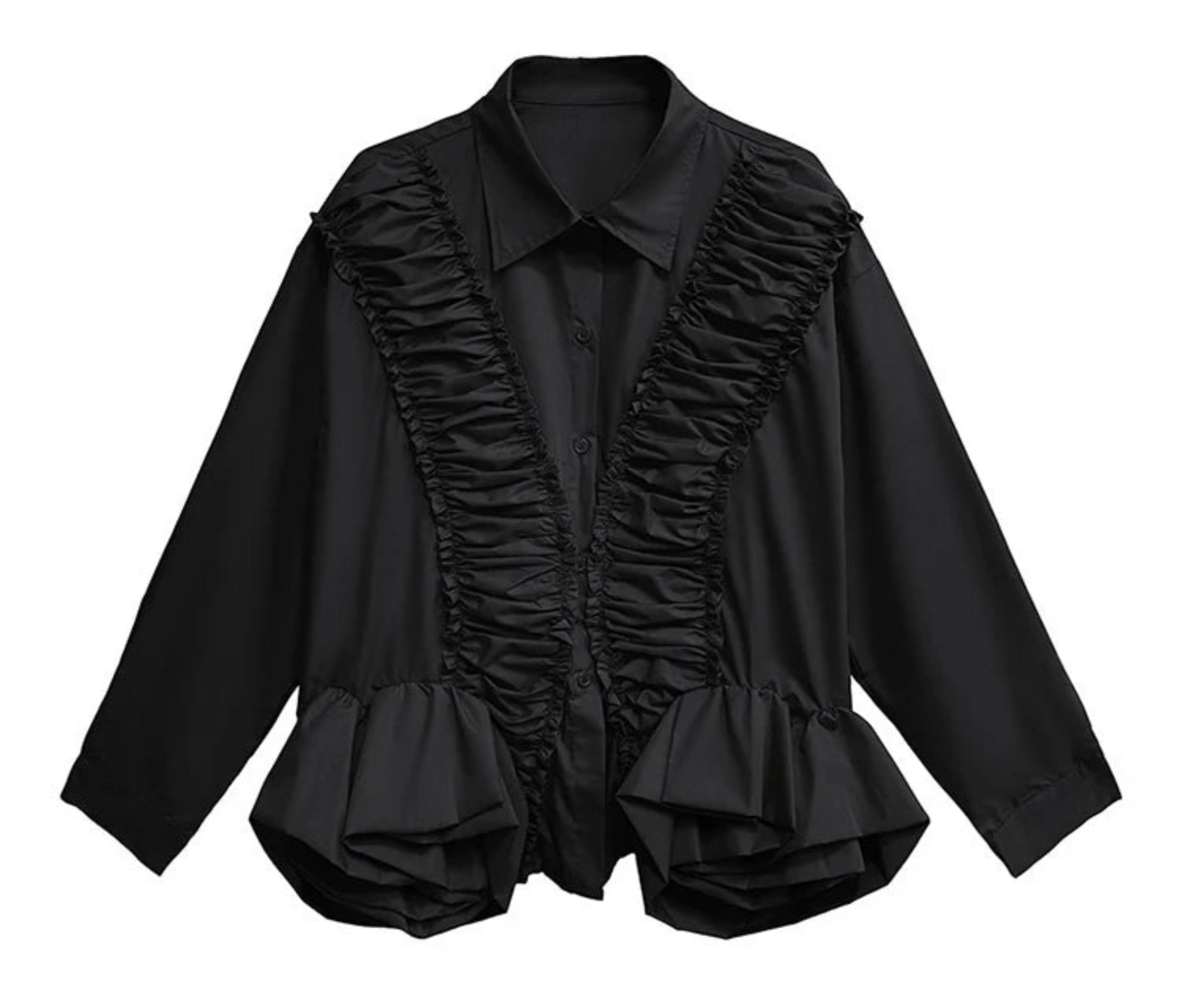 The asymmetrical peplum hem adds shape and movement, while the loose fit keeps it elegant and comfortable — perfect for formal or statement wear.