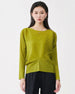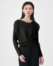 This sophisticated pleated knit blouse features an asymmetric neckline and a softly fitted waist that enhances the silhouette.