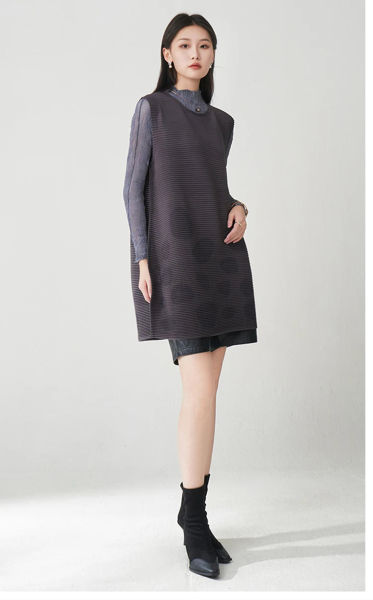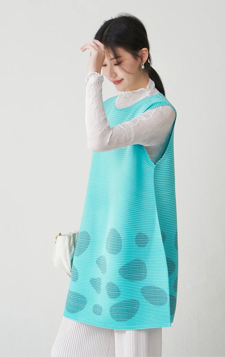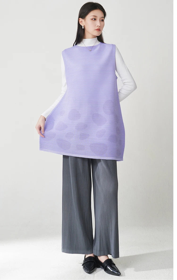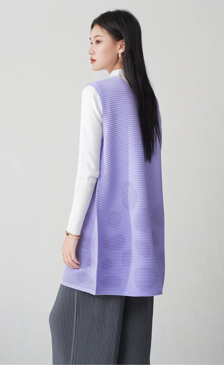 Luxurious and sophisticated, this loose-fit plissé vest enhances any outfit with its flowing silhouette.