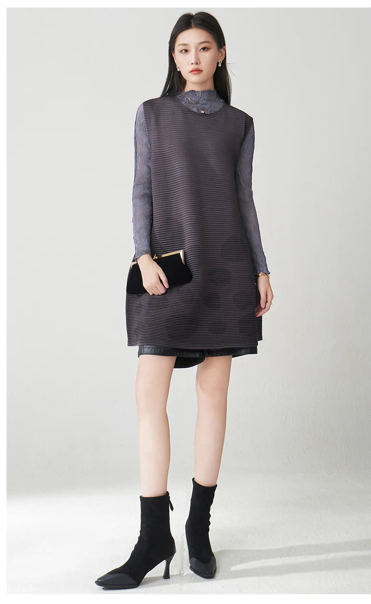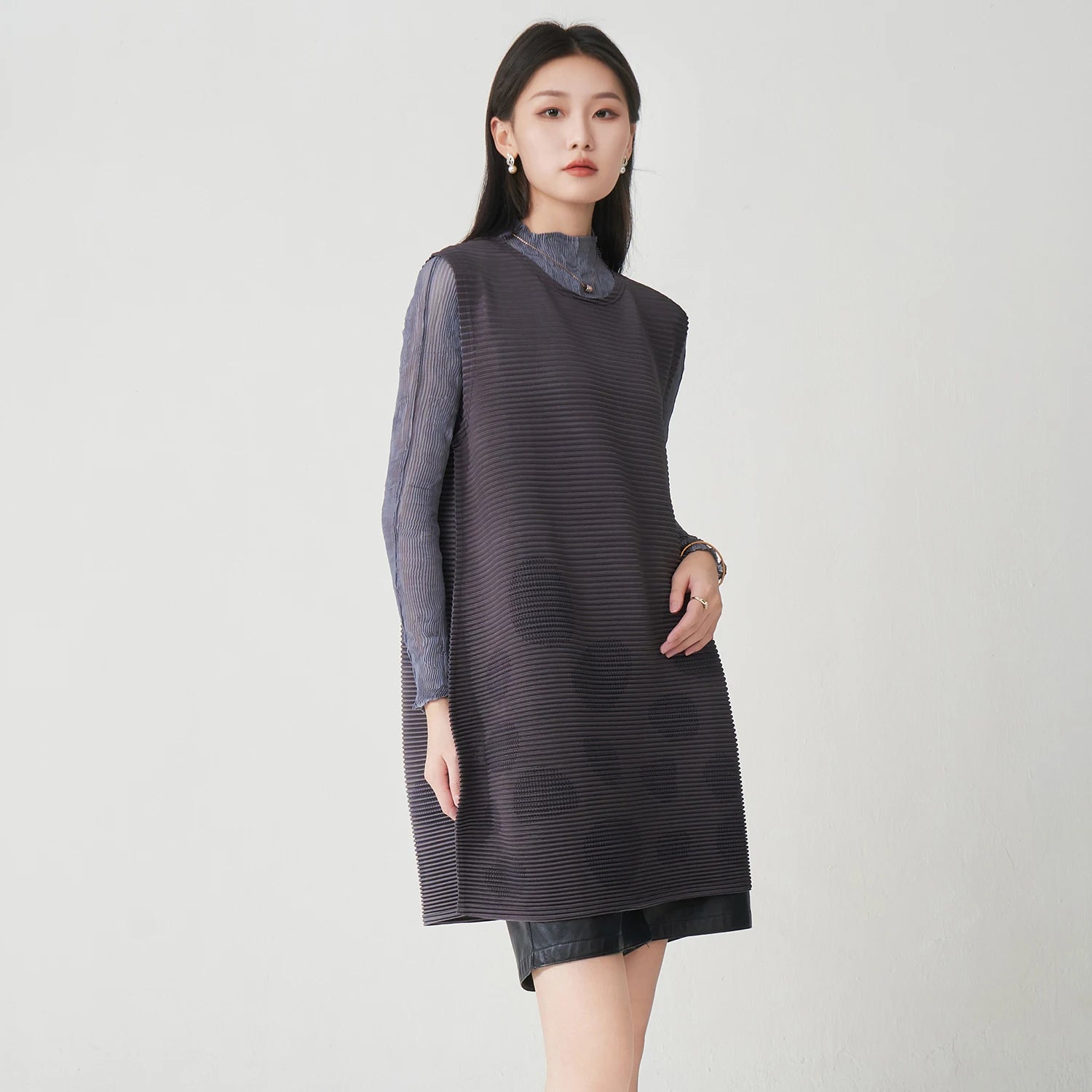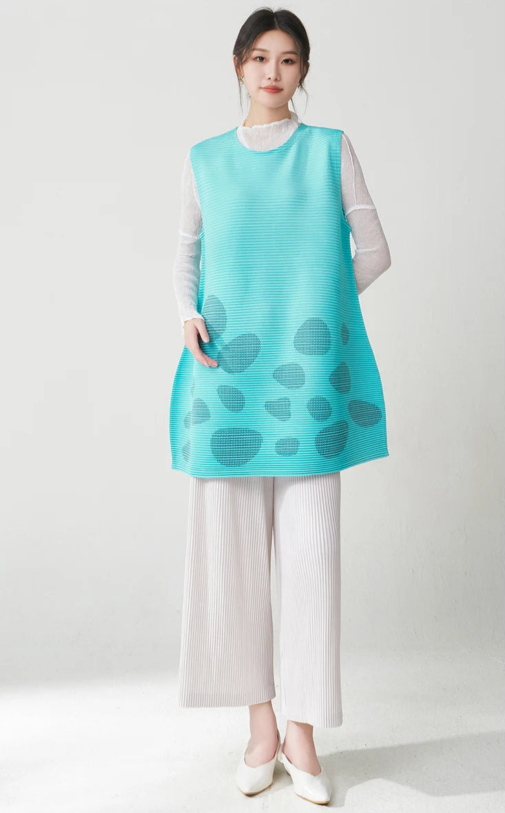 Luxurious and sophisticated, this loose-fit plissé vest enhances any outfit with its flowing silhouette.