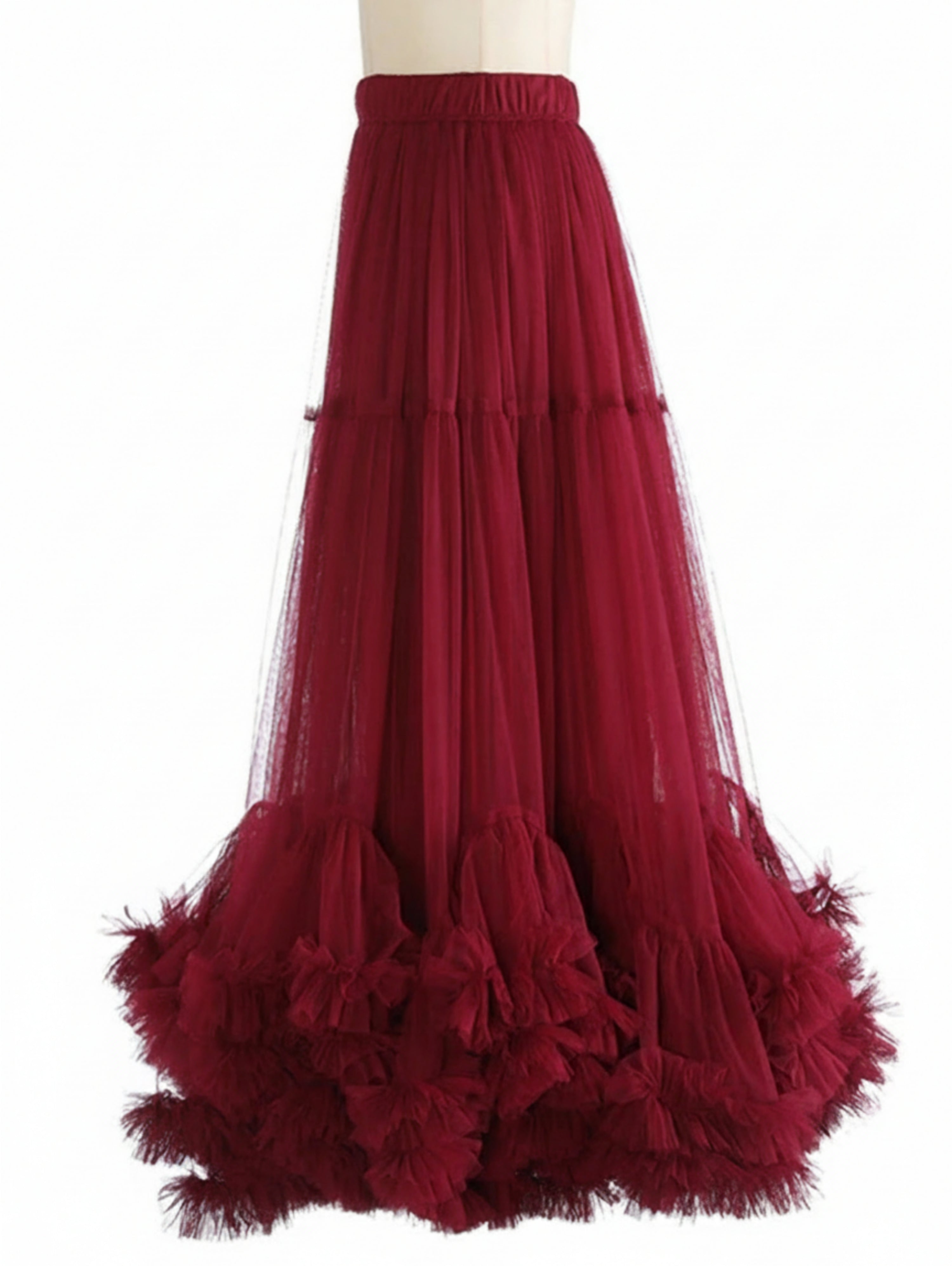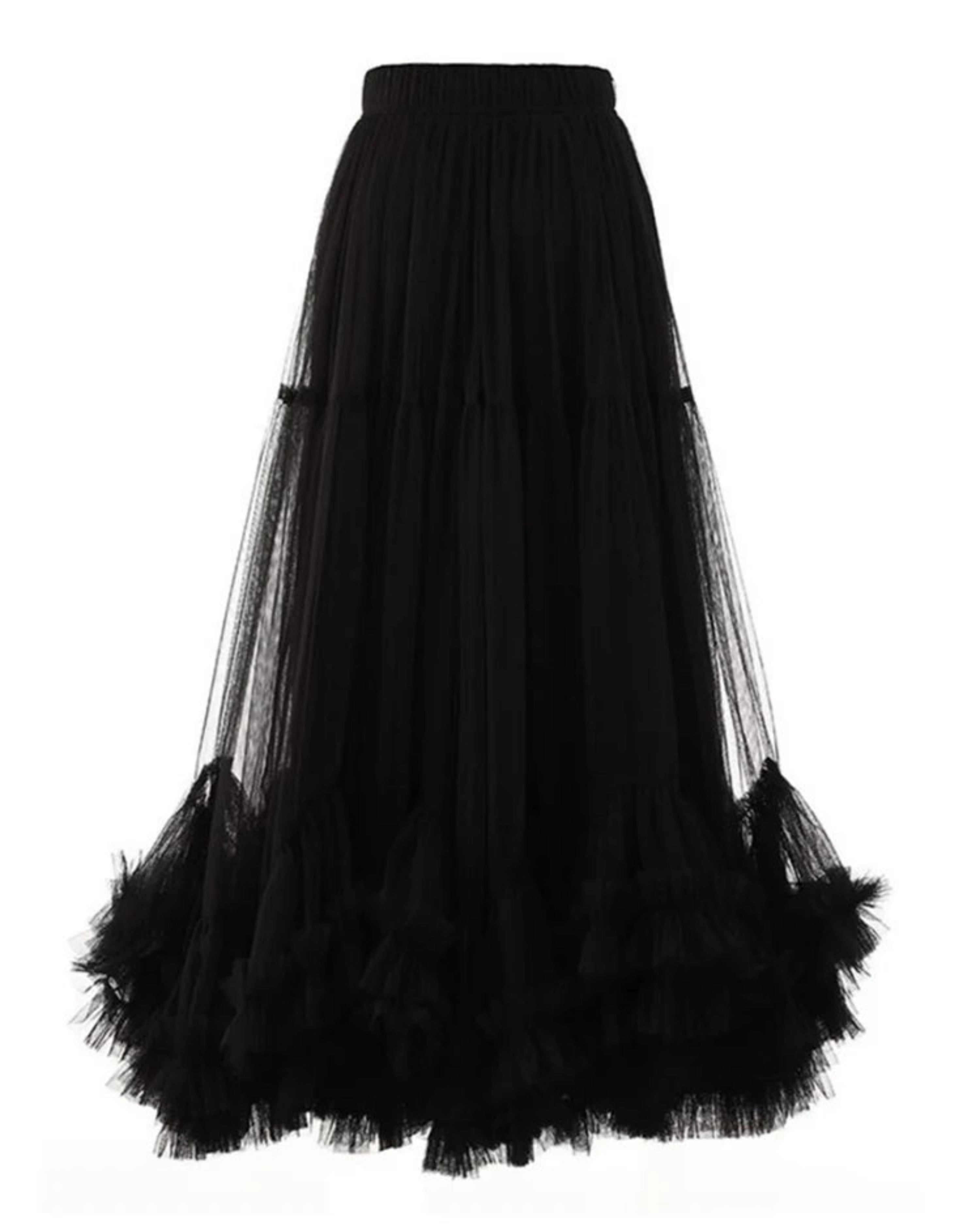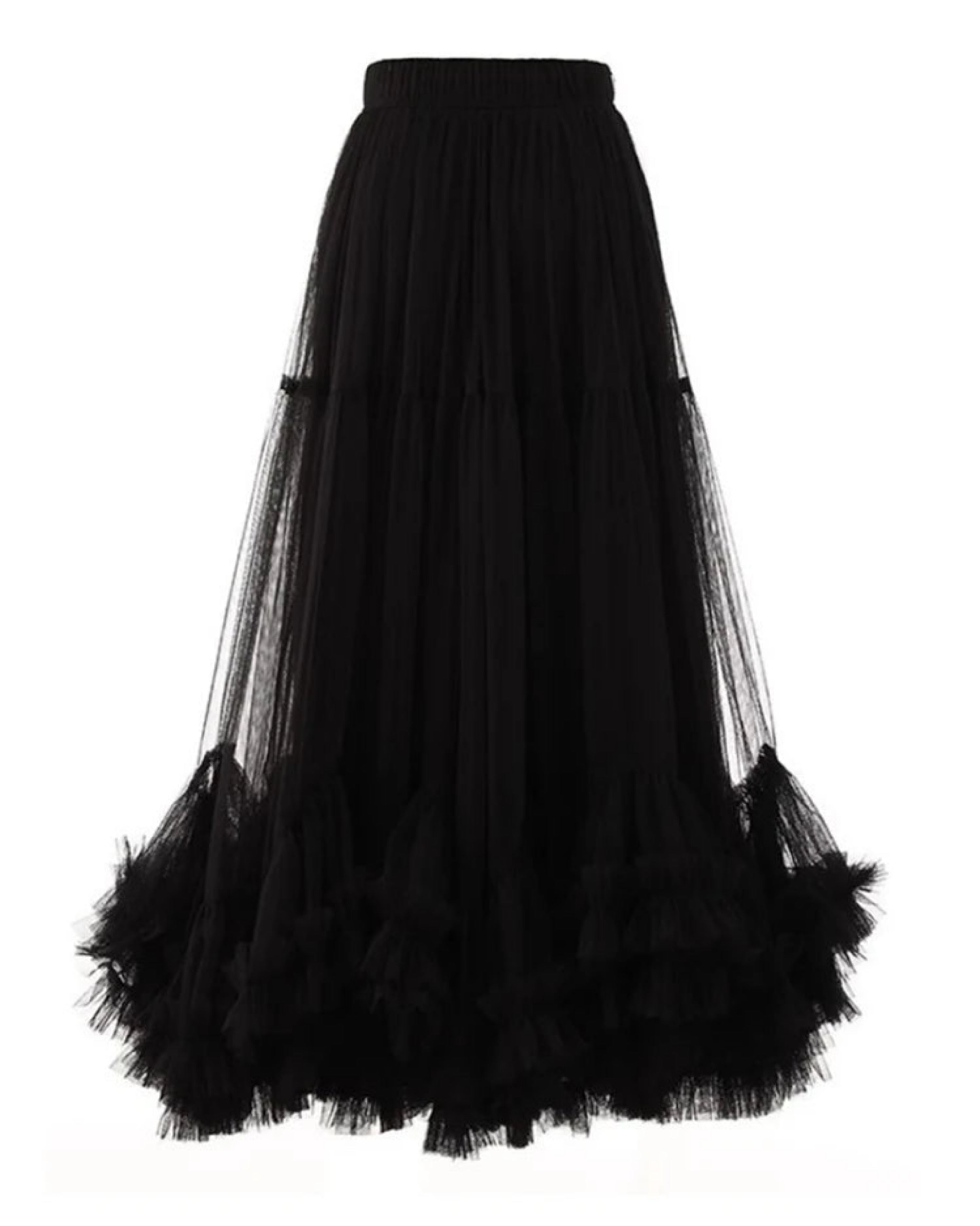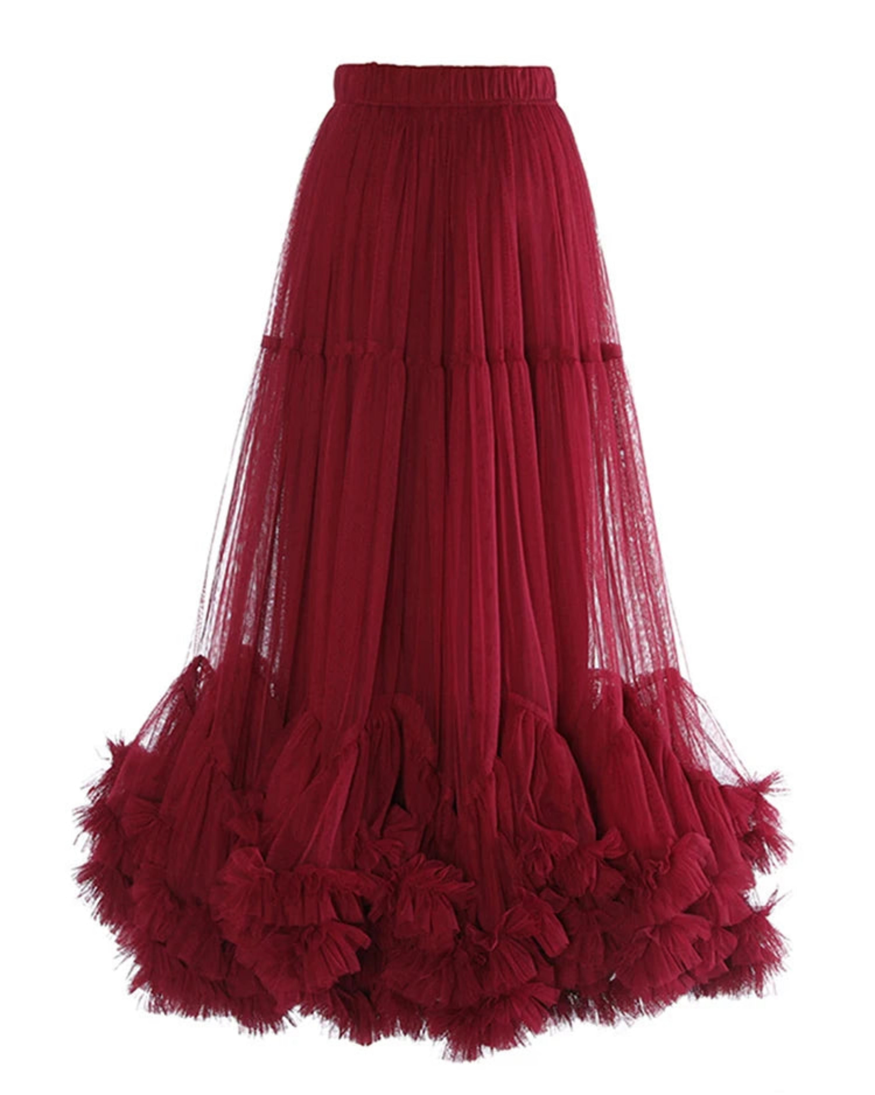 Designer Voluminous Tulle Ruffle Maxi Skirt