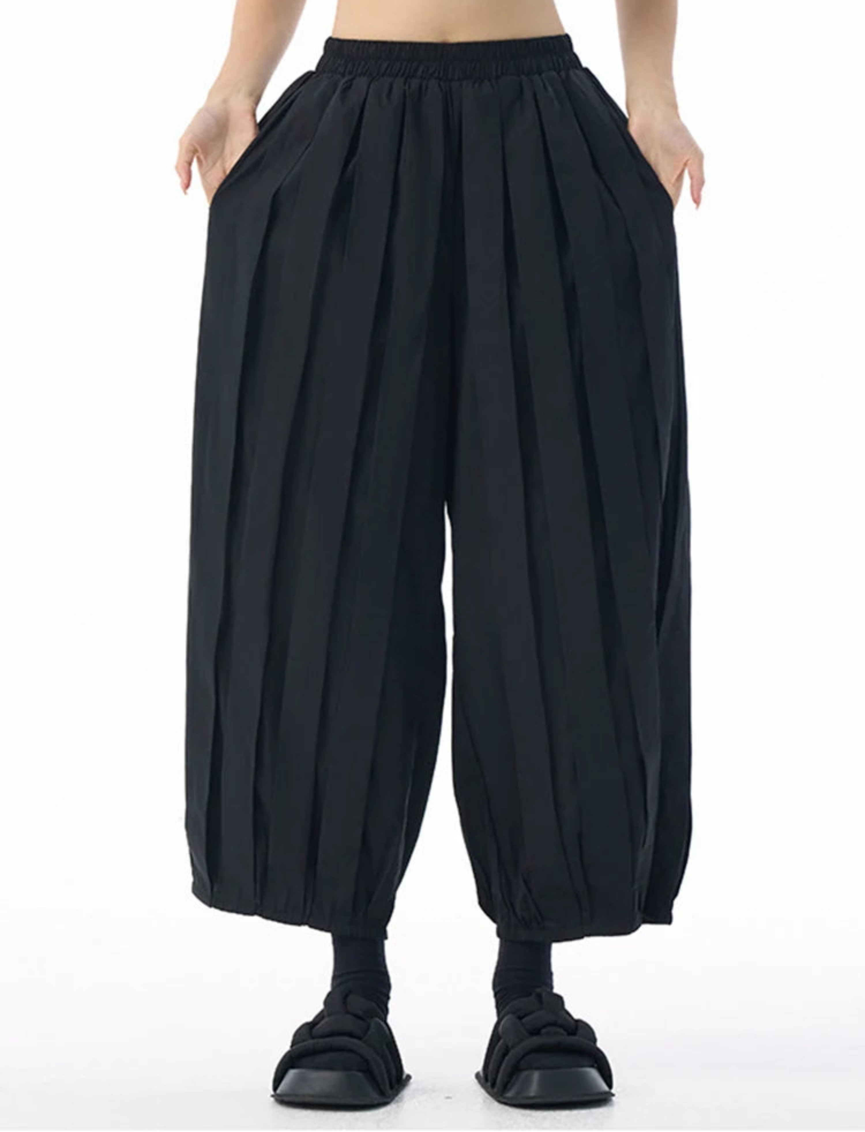 Meet your new go-to pleated pants of the season. This Japanese-inspired design features a wide-leg shape, high waist, and a comfortable pull-on fit that moves easily from daytime outings to travel, dinners, or contemporary city style.