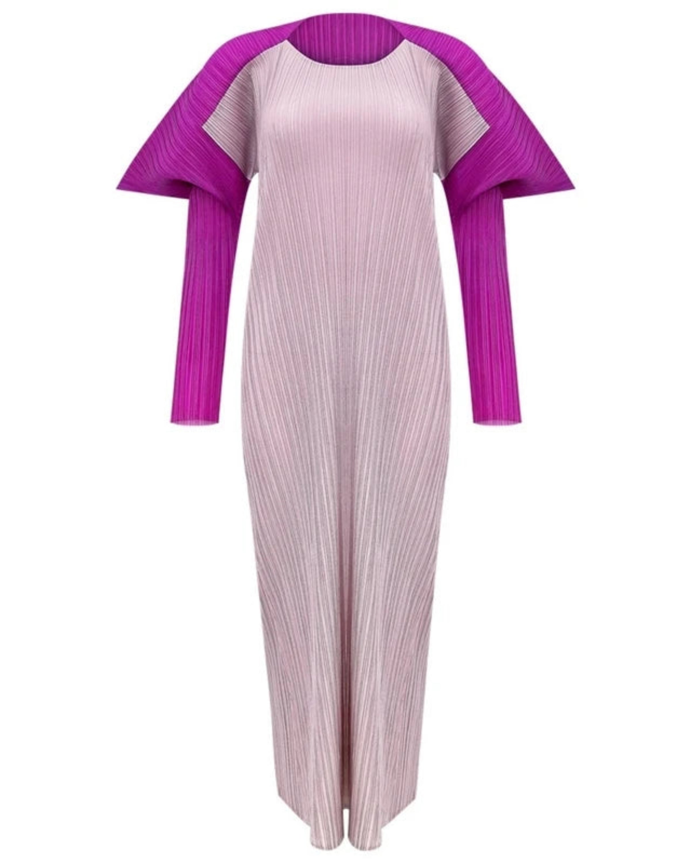 Formal Japanese Plissé Midi Dress – Unique Pleated Long-Sleeve Designer Style