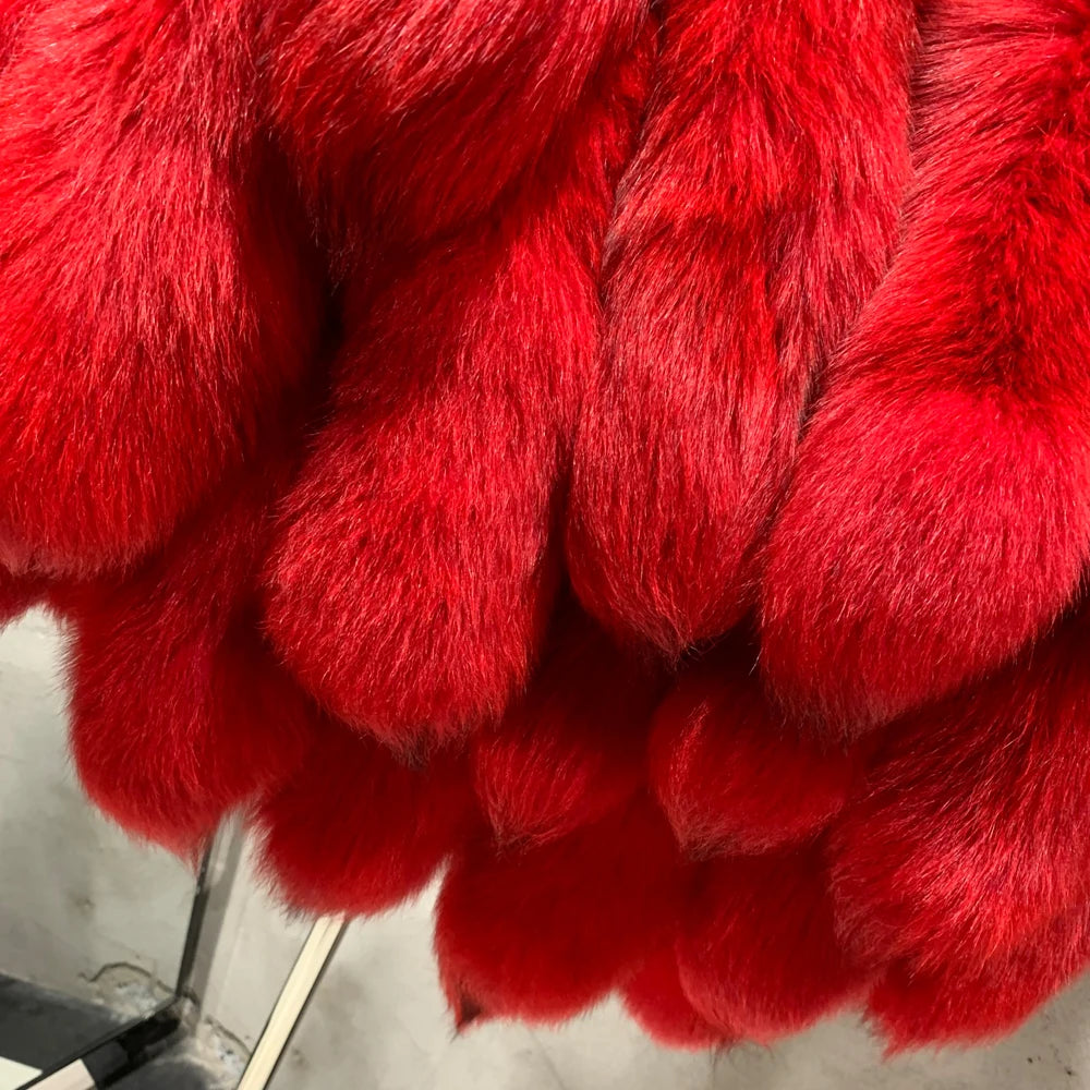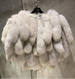 This exquisite cropped bolero jacket is made from genuine fox fur tails, forming a textured, voluminous silhouette.