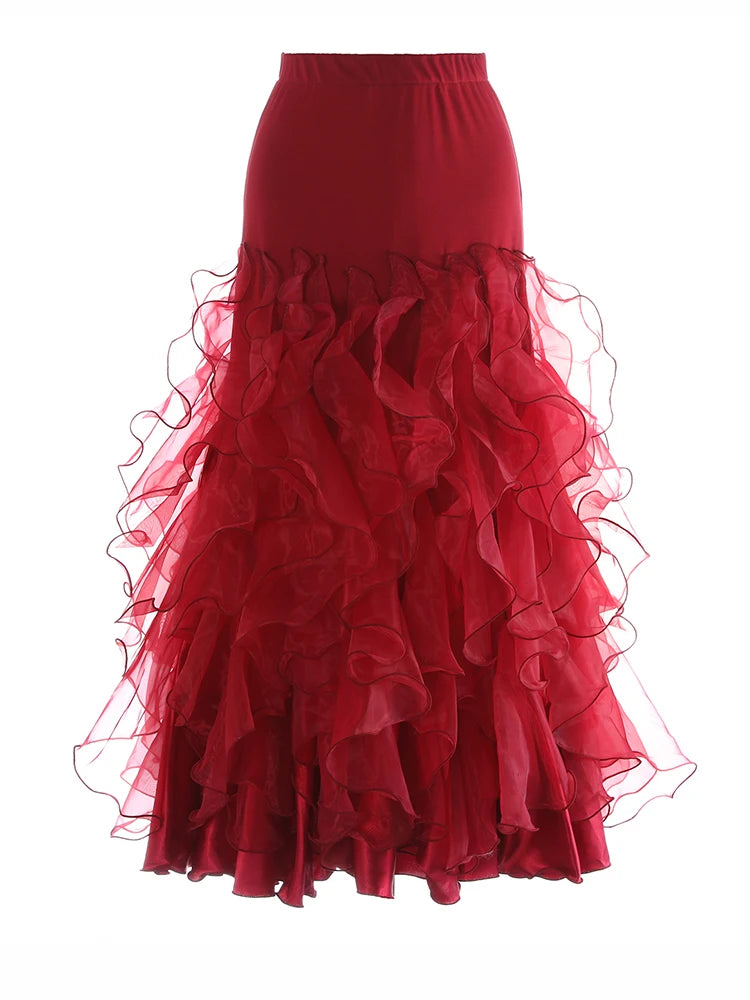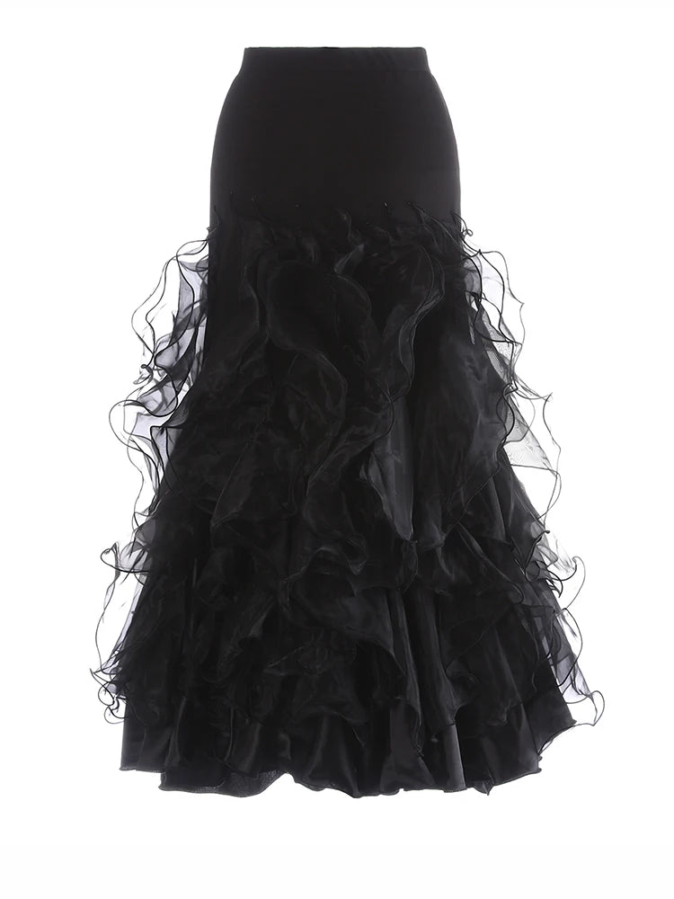 This luxury tiered organza maxi skirt features an elastic waistband for easy pull-on wear.
