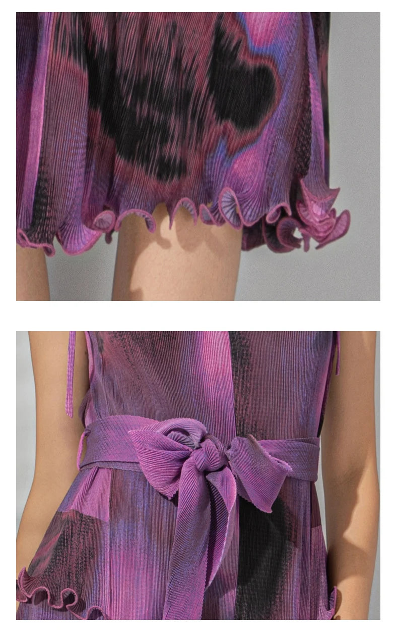 Japanese Micro-Pleated Tiered Plissé Midi Dress