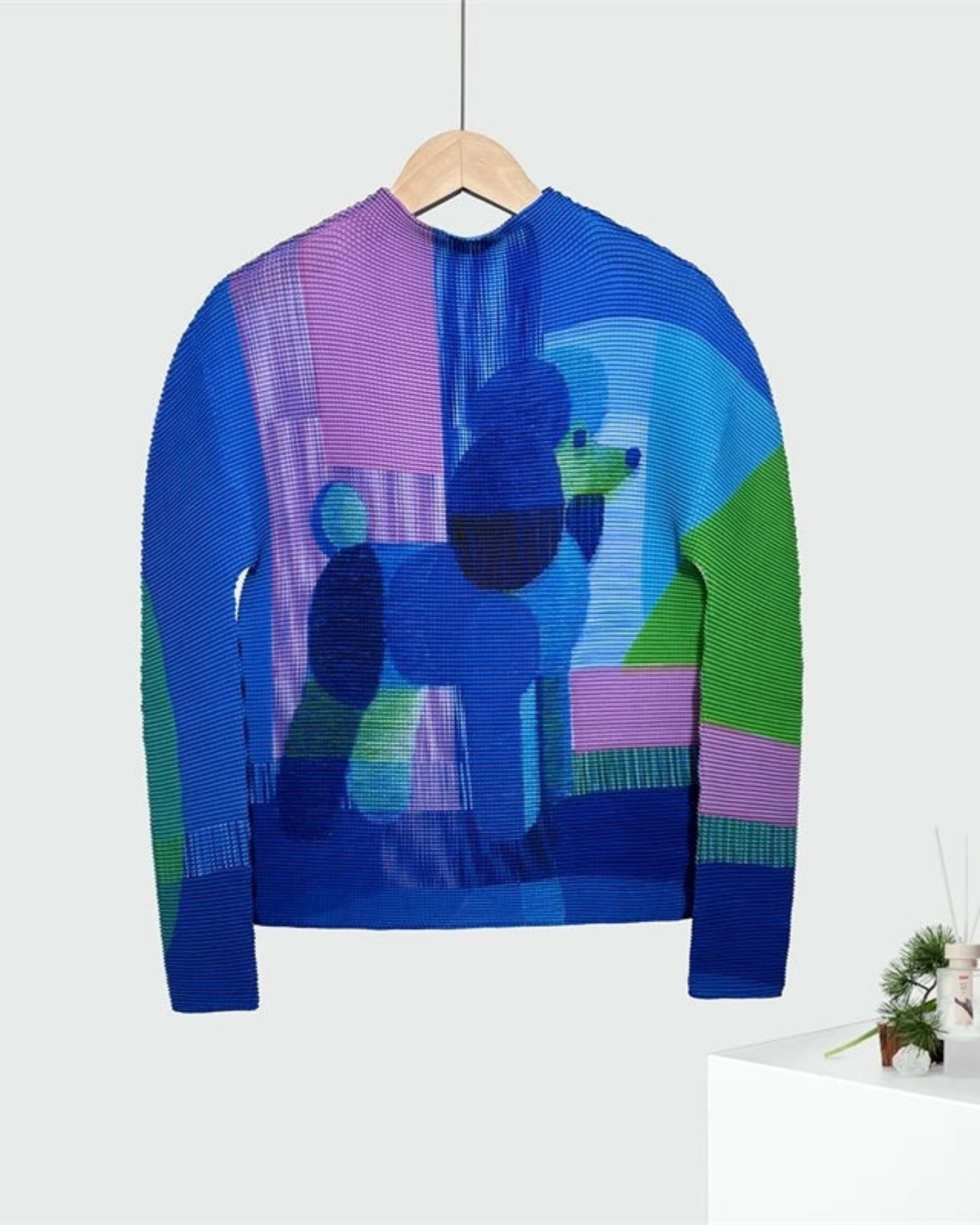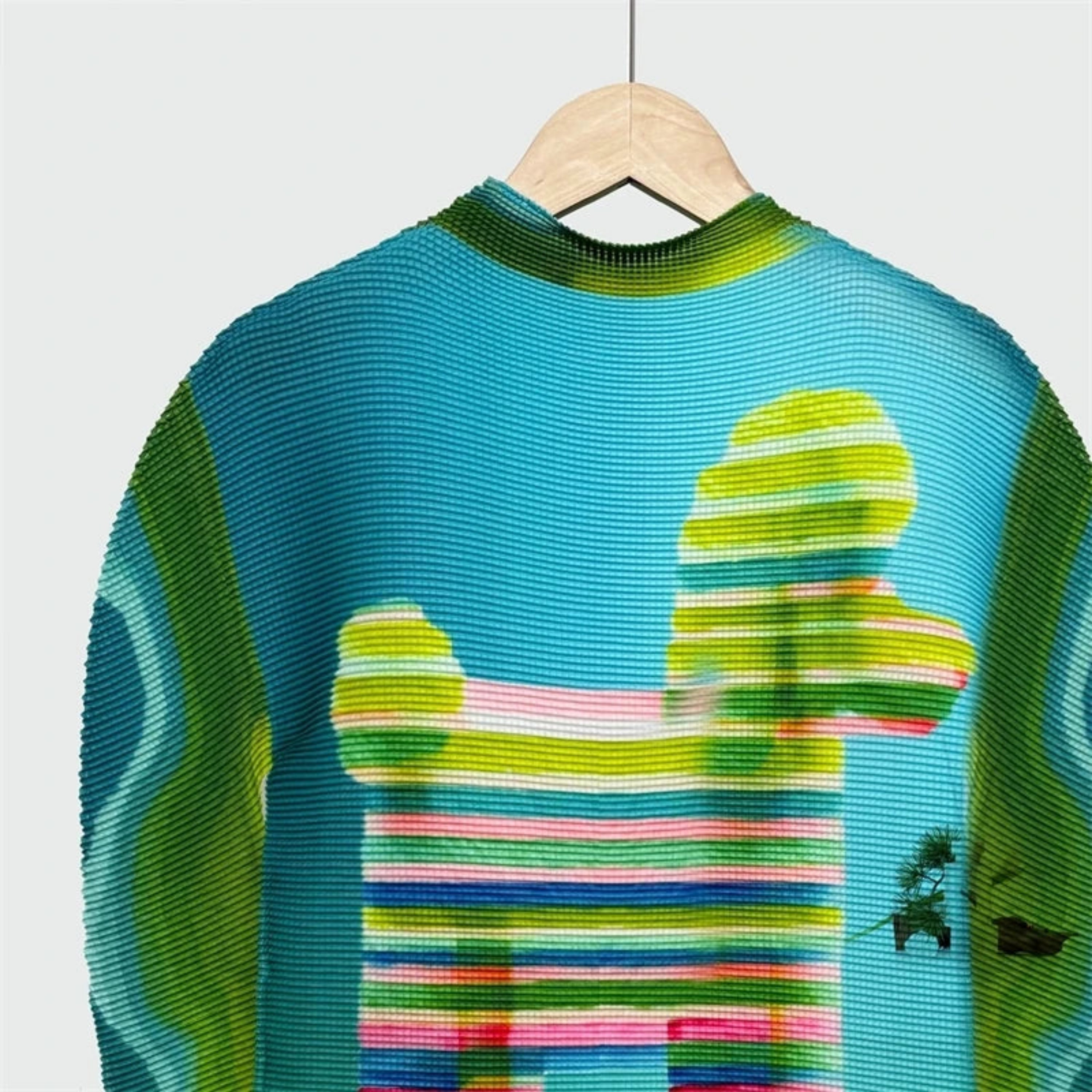 This luxurious rib-knit top features premium Japanese plissé with a unique, elegant texture and modern pleated design.