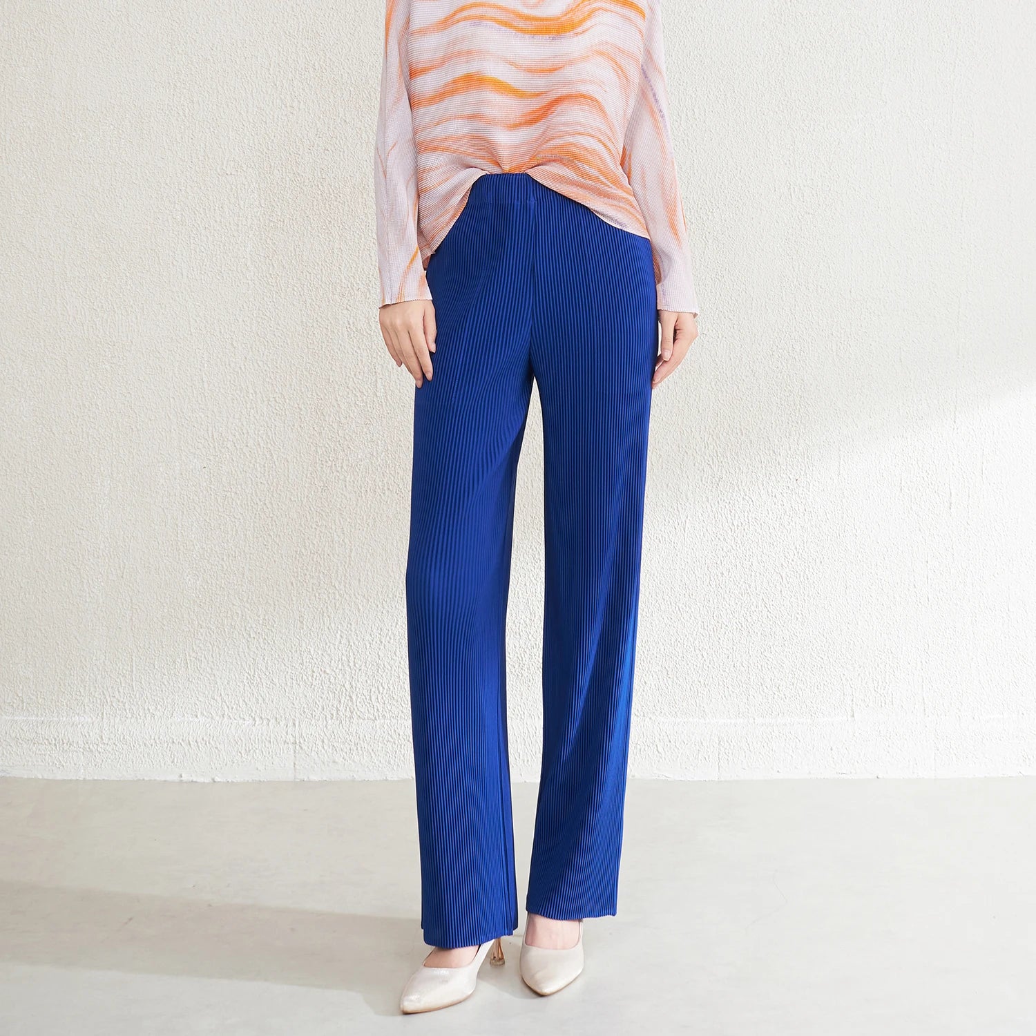 High-waisted, wide-leg trousers in Japanese plissé fabric that flow with every step.