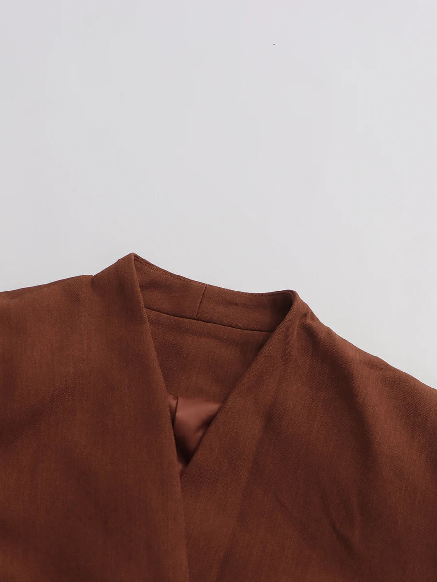 The wrap closure ensures a flattering fit, combining comfort with polished style—perfect for evening events, dinners, or special occasions.