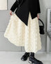 Luxury Floral Appliqué Midi Skirt – High-Waist Designer A-Line
