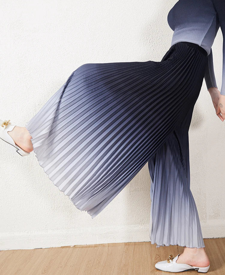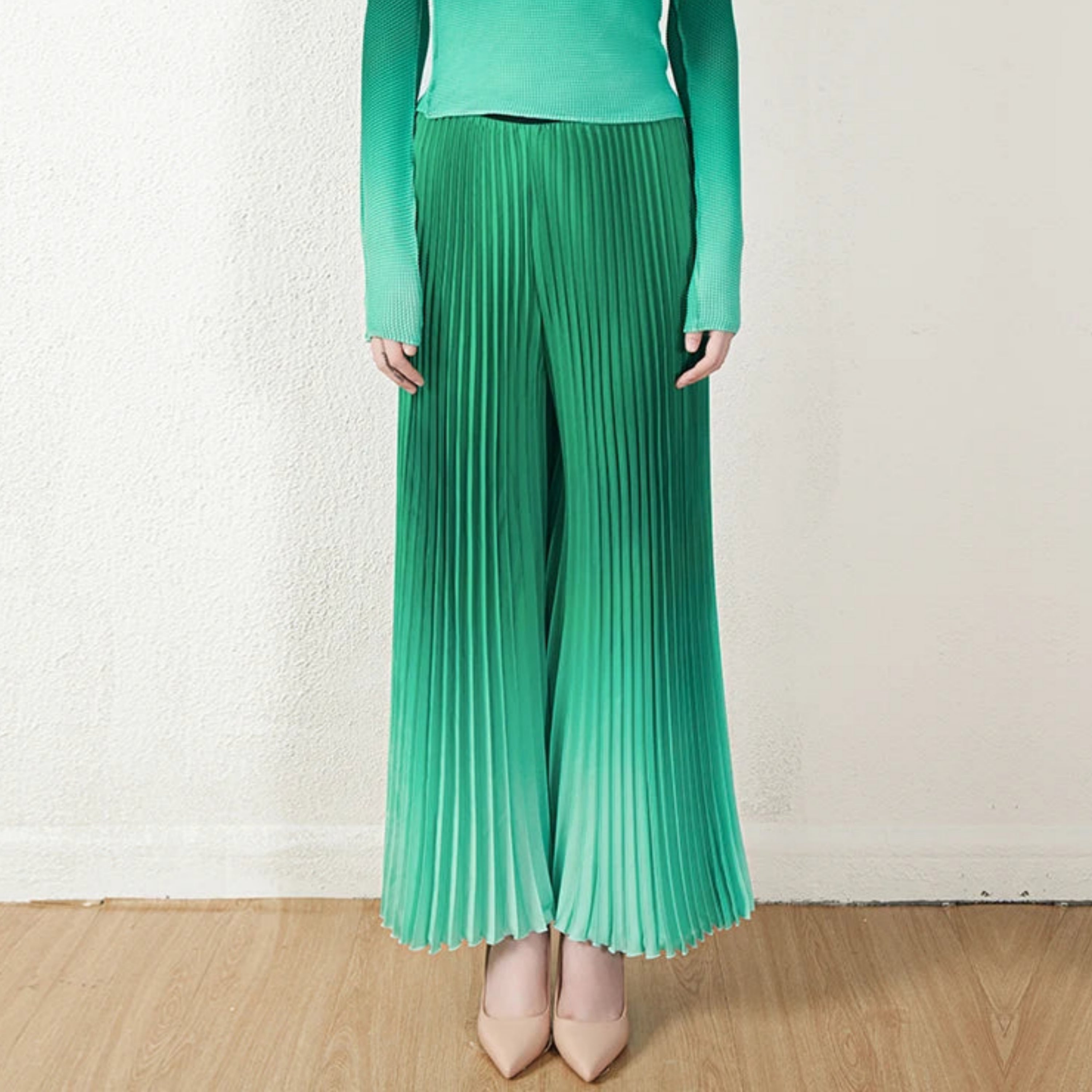 Gorgeous ombre tones and premium plissé pleats make these high-waisted pants a statement piece.