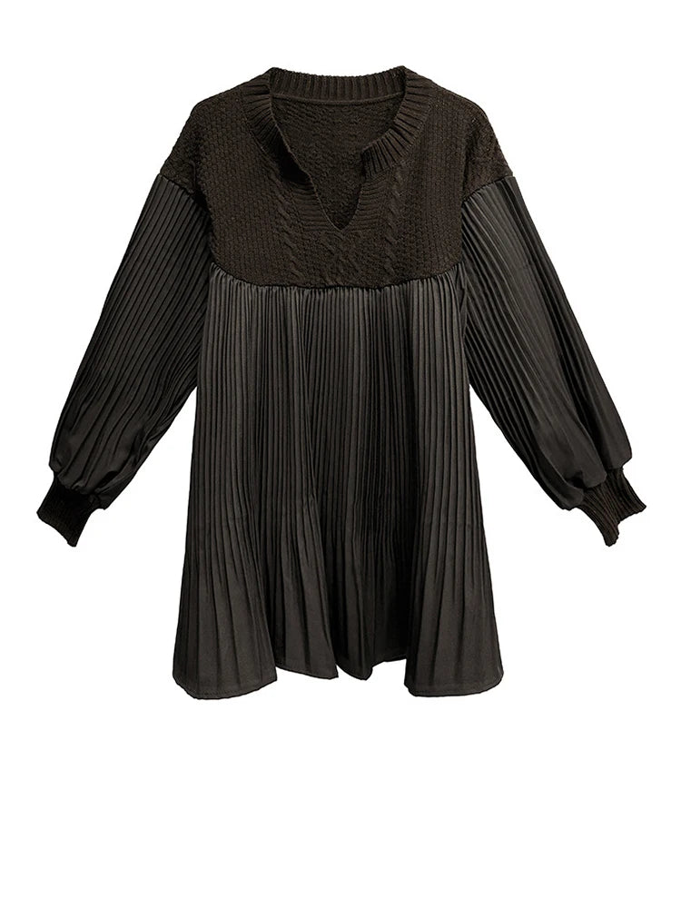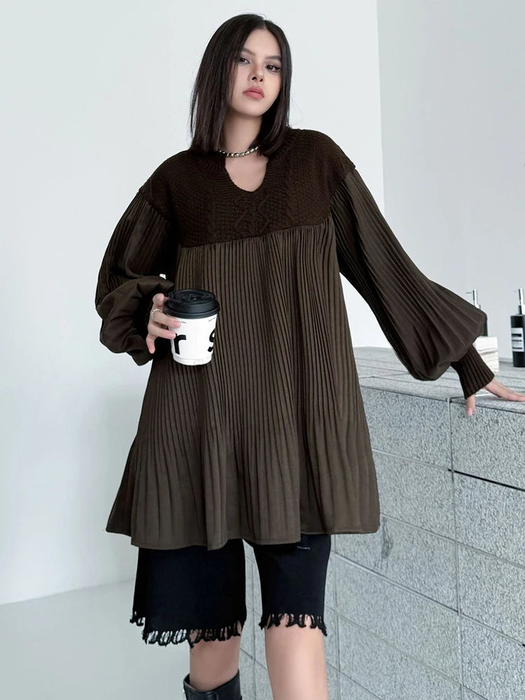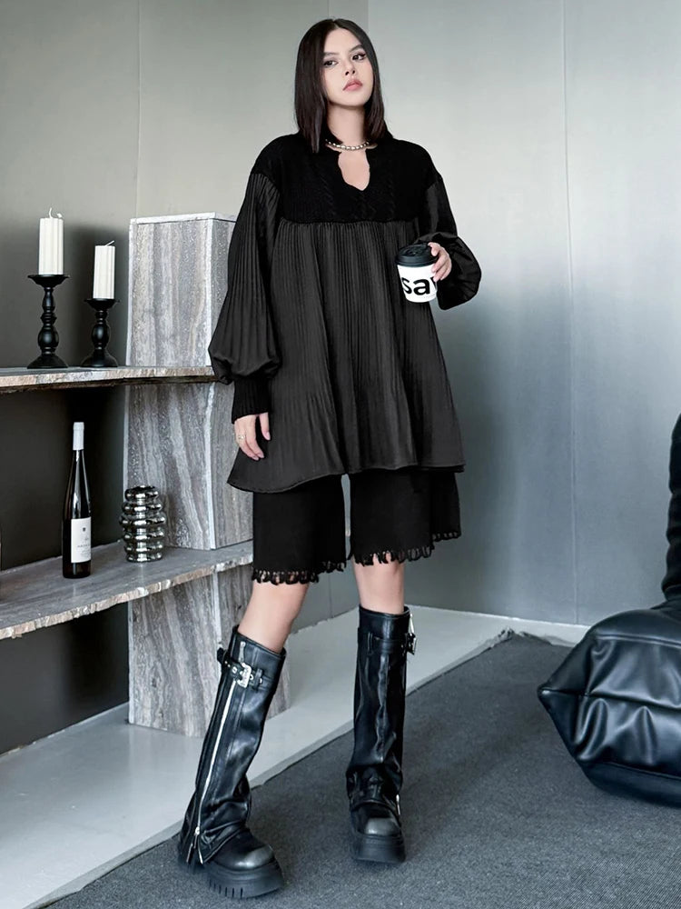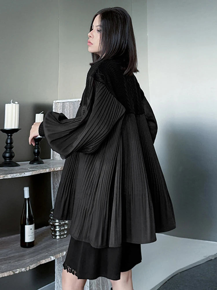This modern oversized sweater top combines premium Japanese pleated fabric with soft knit detailing, creating a look that’s both stylish and avant-garde.